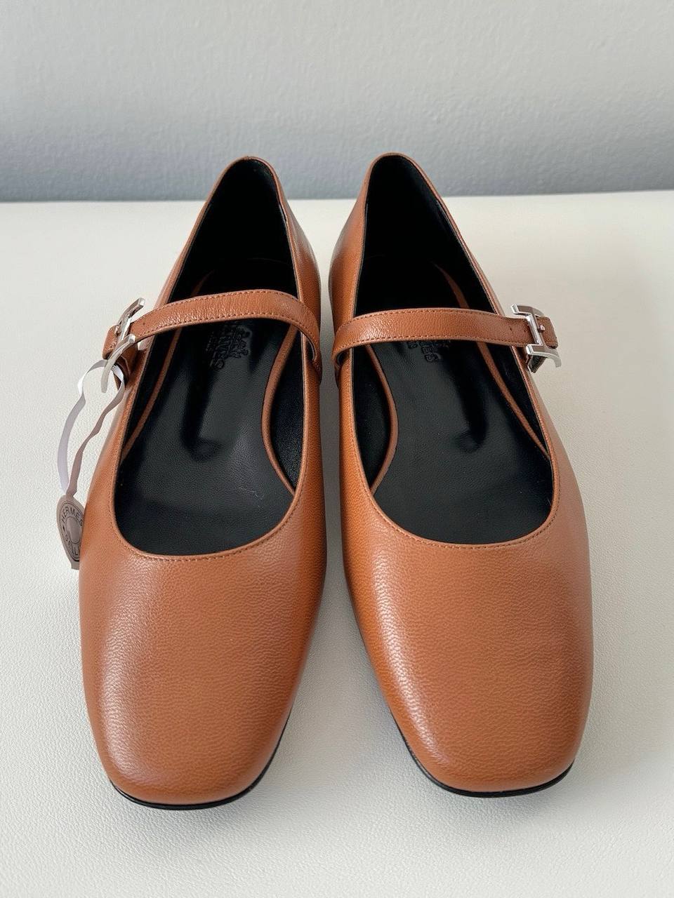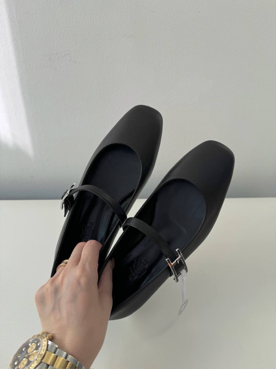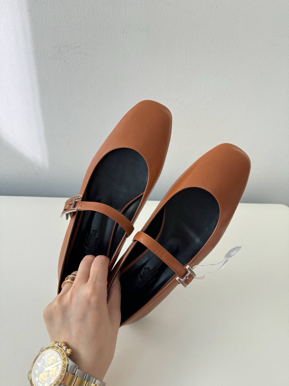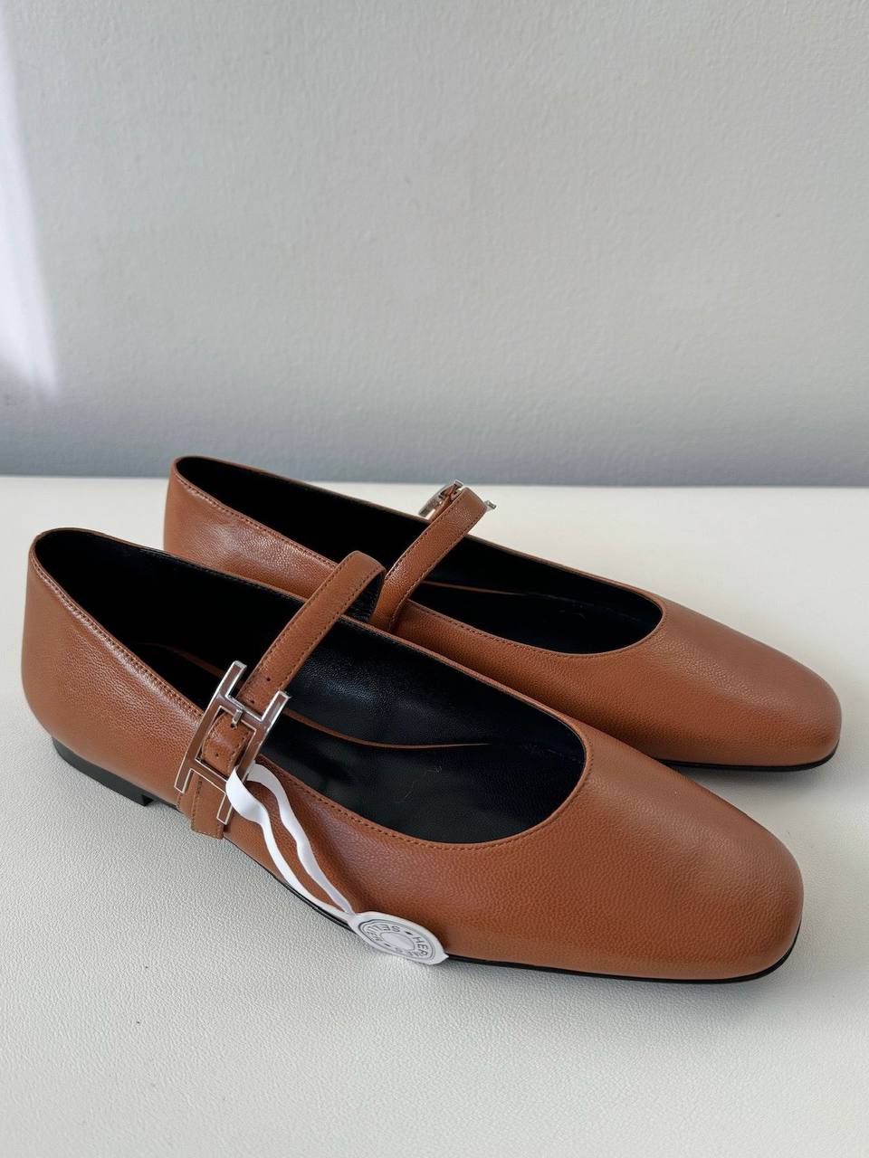 Балетки Hermes сделаны из натуральной кожи с ремешком. Данная модель в двух цветах: рыжий, черный. Купив балетки вы дополните свой образ.