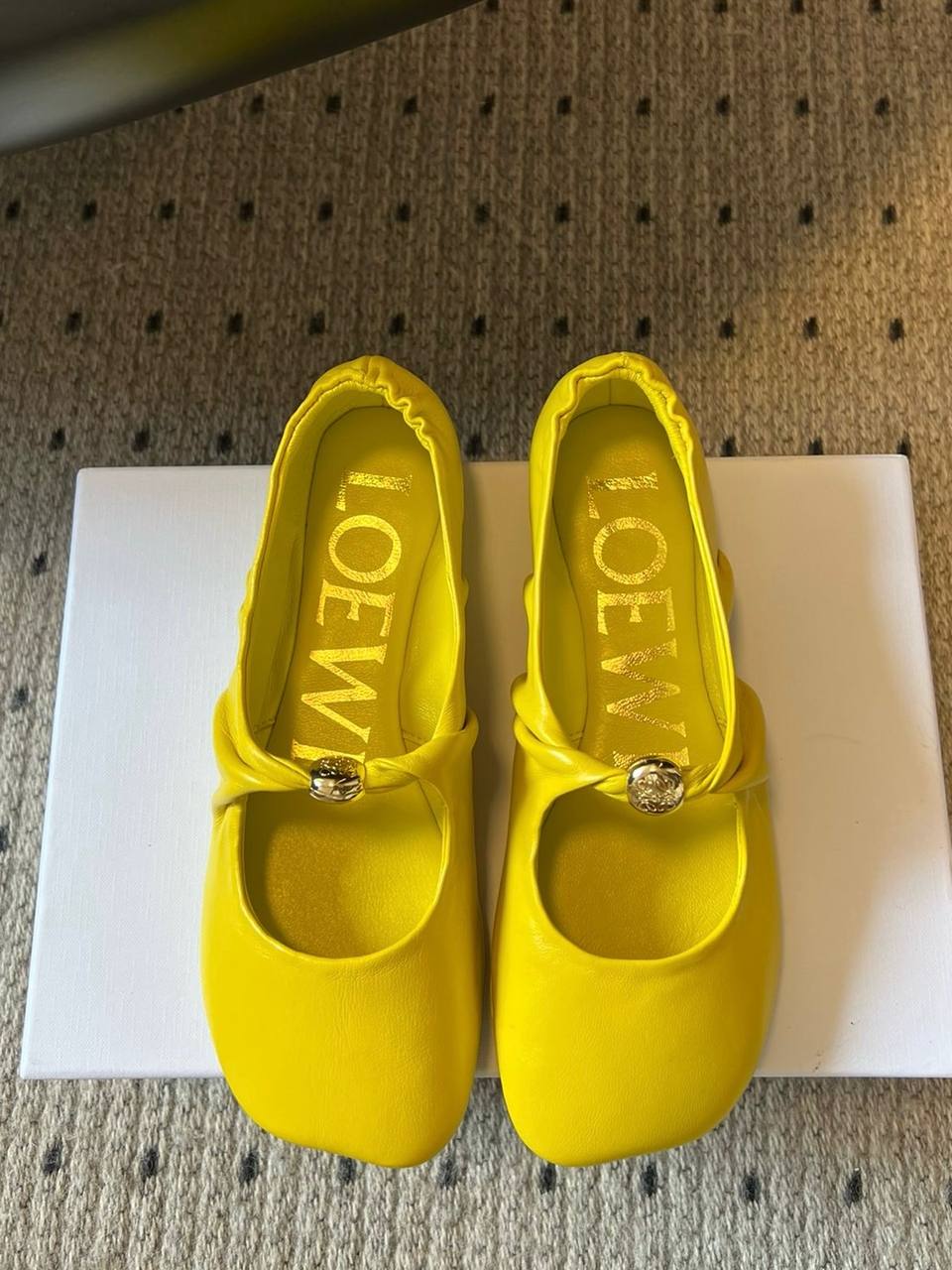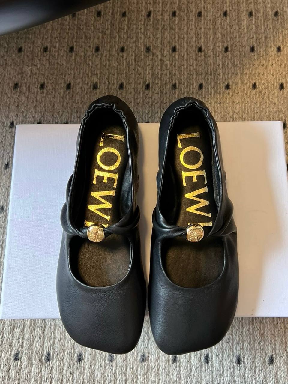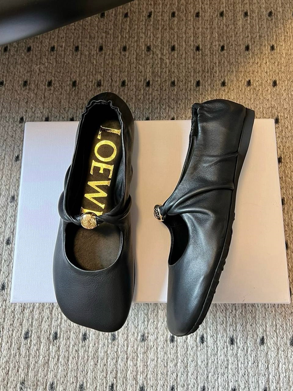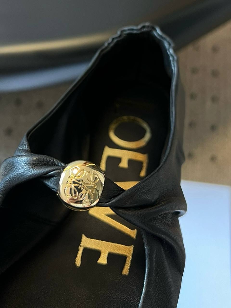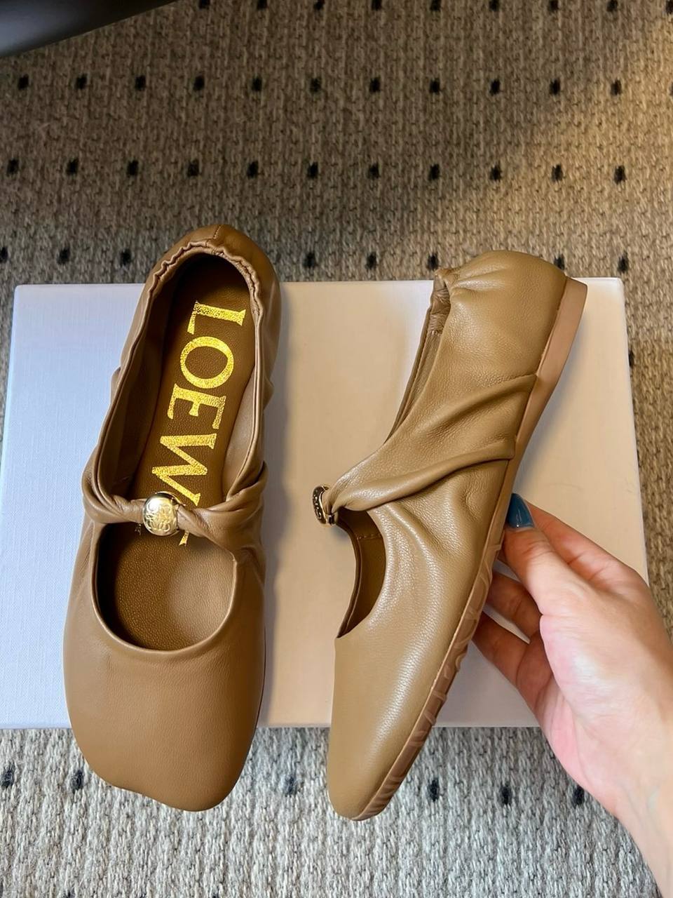 Балетки из мягкой овчины с гибким верхом, разработанным для дополнительного комфорта, с металлическим галантерейным украшением в виде выгравированной анаграммы и фирменным носком в форме лепестка.