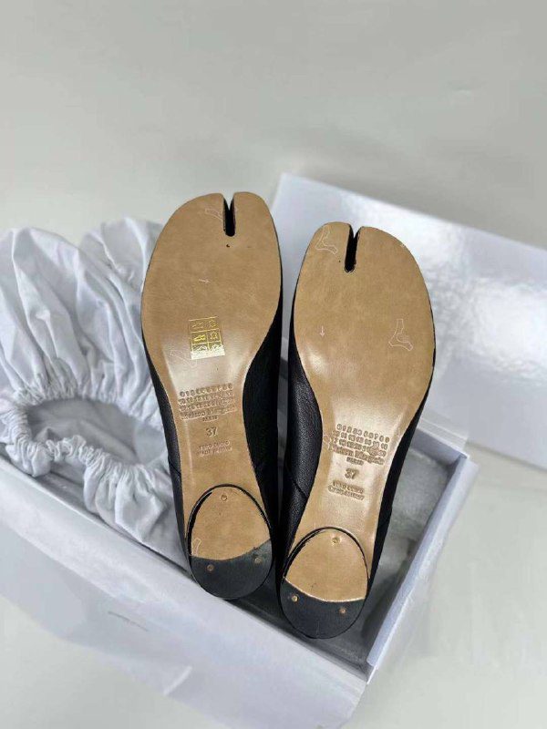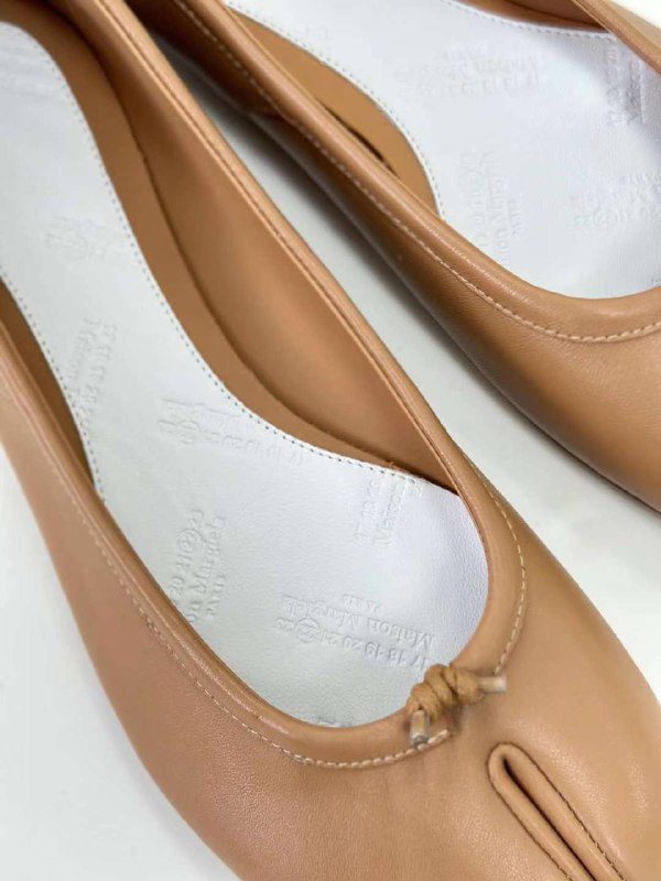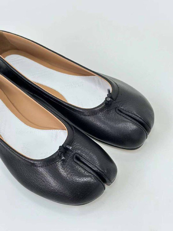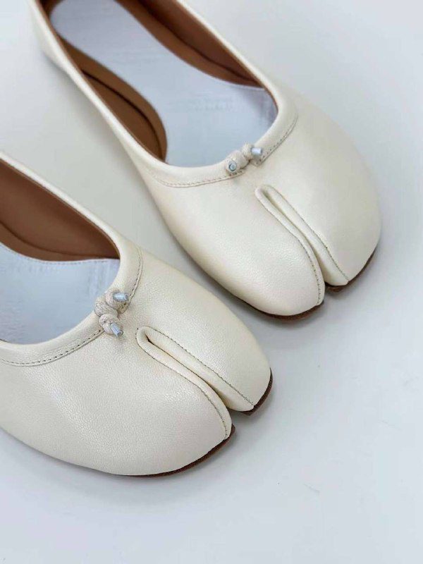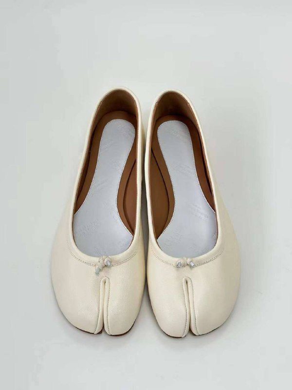 Балетки Maison Margiela Tabi сделаны из 100% кожи теленка. Модель на низком ходу имеет разрез между пальцами. Купить балетки Maison Margiela Tabi можно в трех цветах: чёрный, молочный, бежевый.