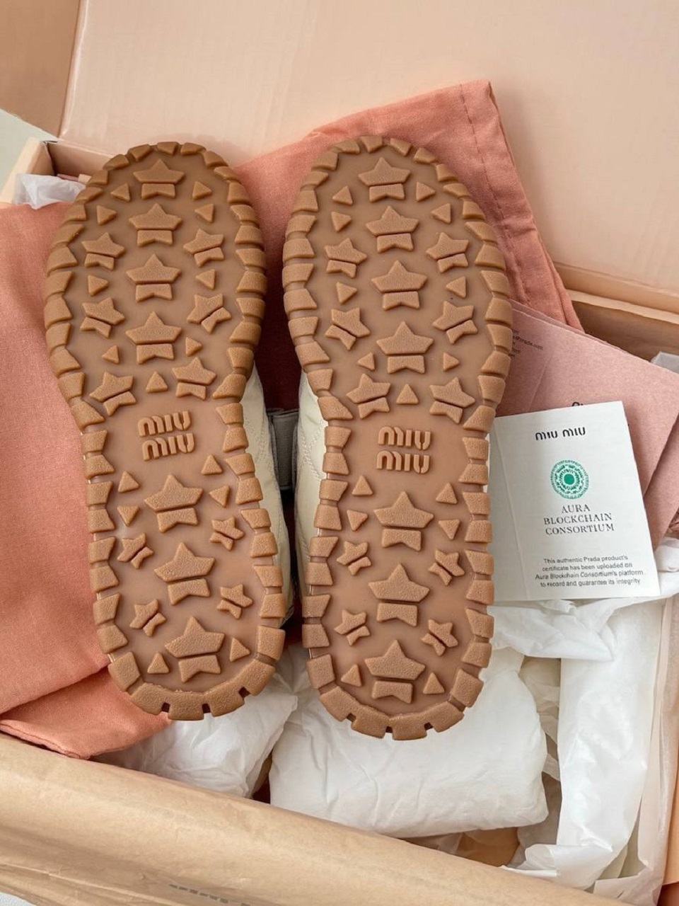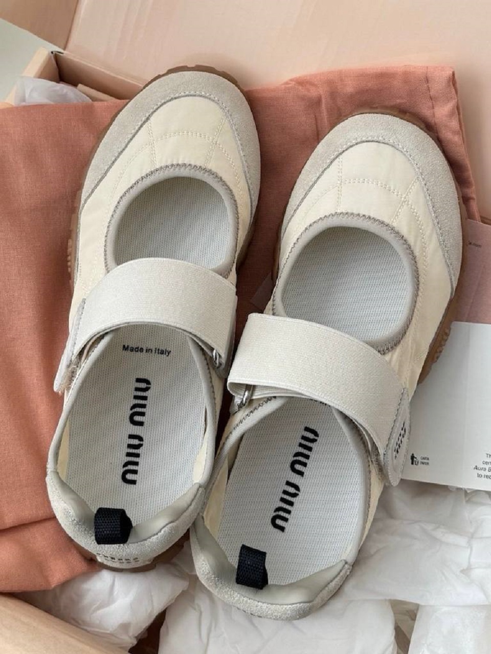 Балетки в тренде в этом сезоне, и пара данной модели от Miu Miu возглавляет наш список желаний. Они сделаны из натурального хлопка и кожаных вставок. Вам понравится, как они смотрятся с платьями миди и джинсами.