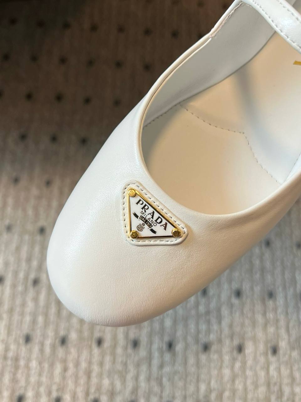 Балетки Prada из мягкой кожи, коллекция SS2024. Данная модель на застежке, украшена логотипом бренда. Купить балетки можно в двух цветах: белый, чёрный.