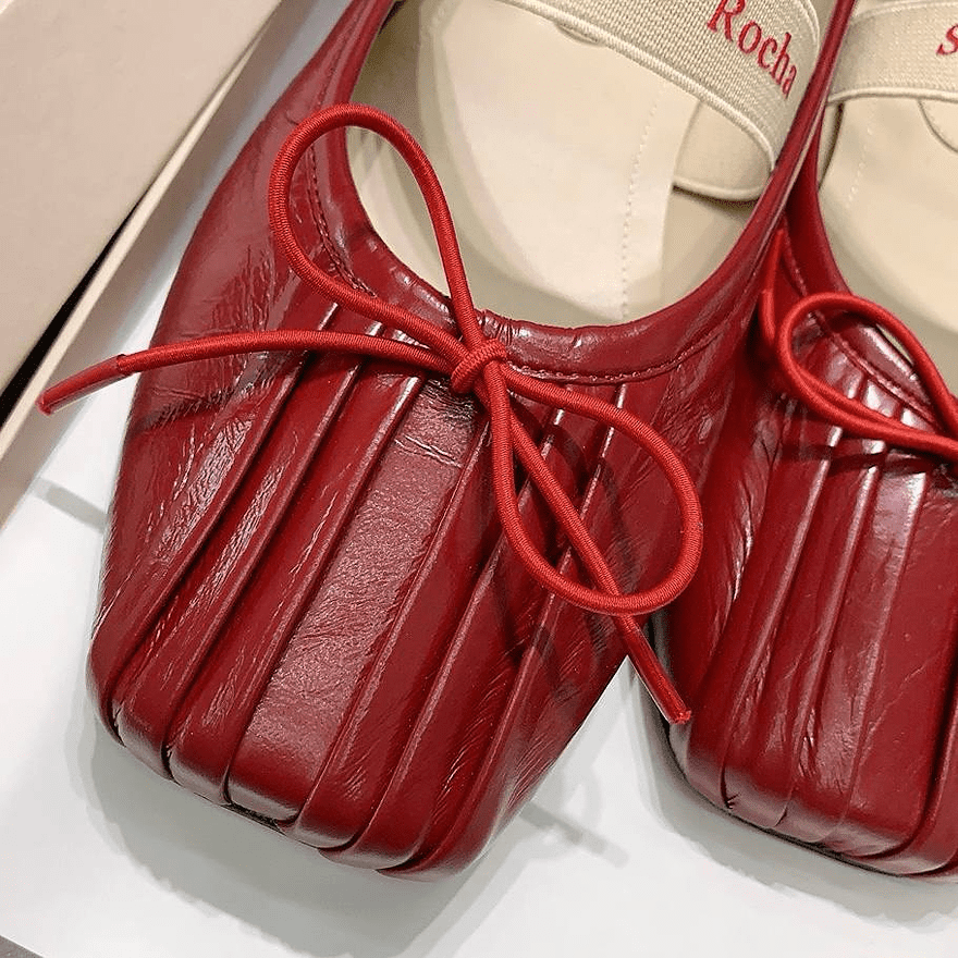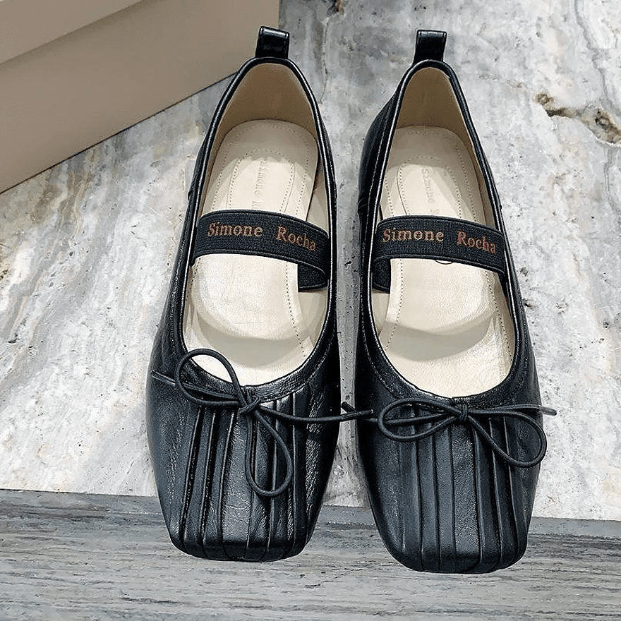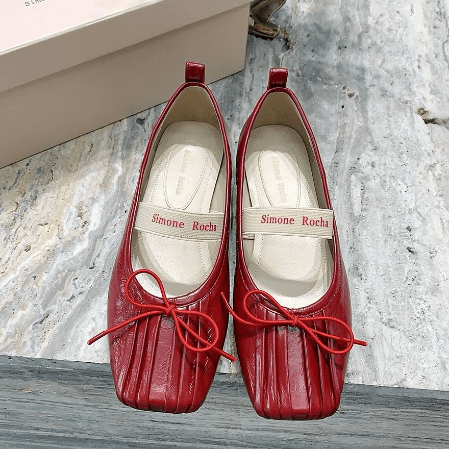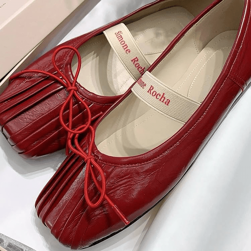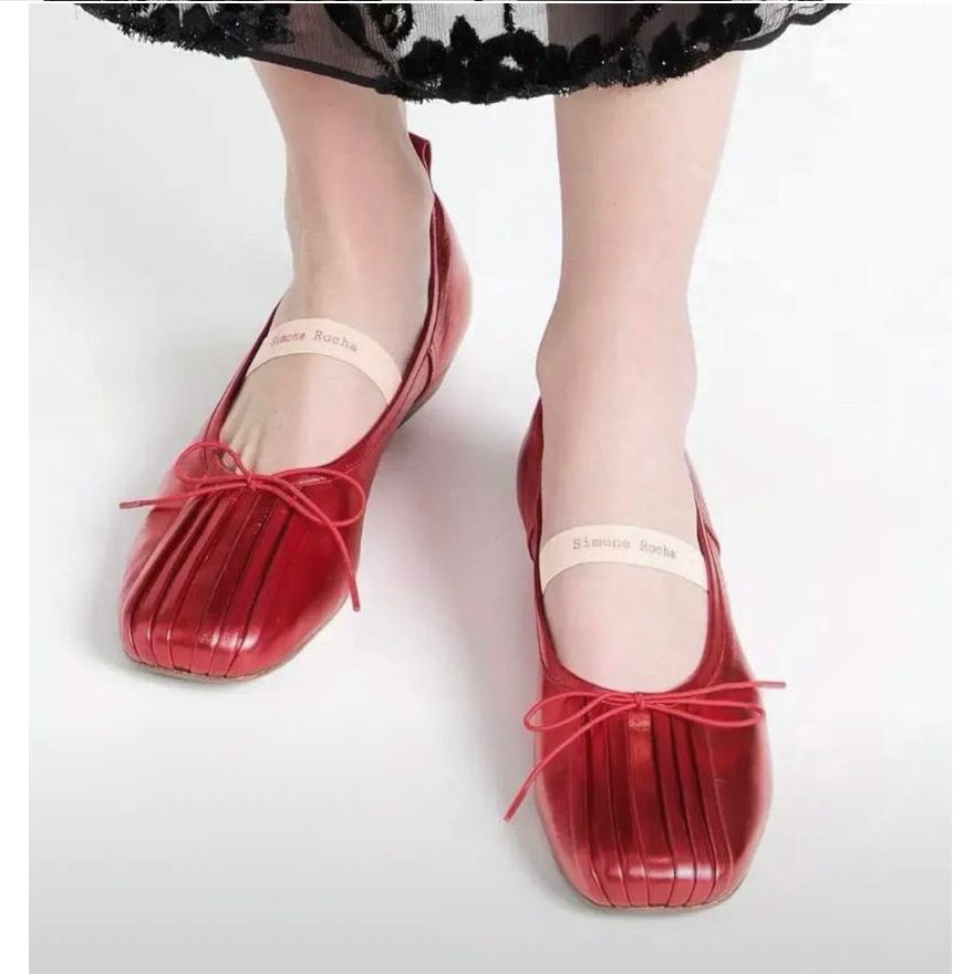 Балетки Simone Rocha сделаны из натуральной кожи. Данная модель с квадратным носком и украшена бантиком. Купить балетки можно в двух цветах: красный, черный. Коллекция 2024