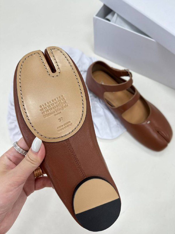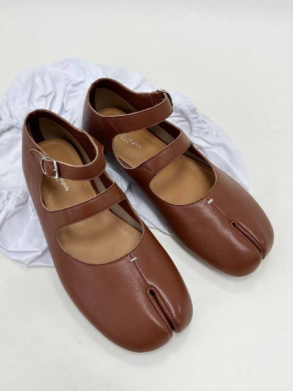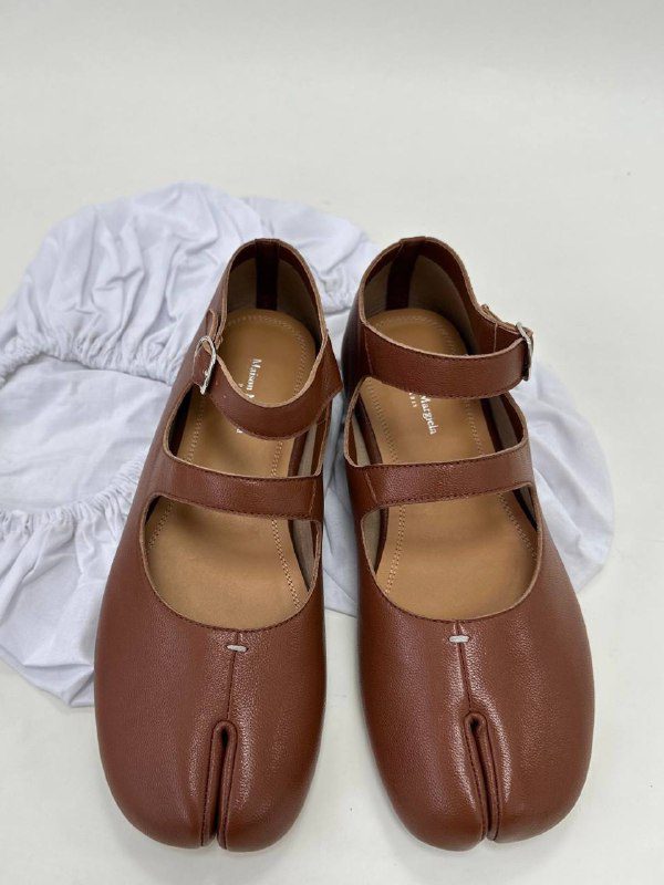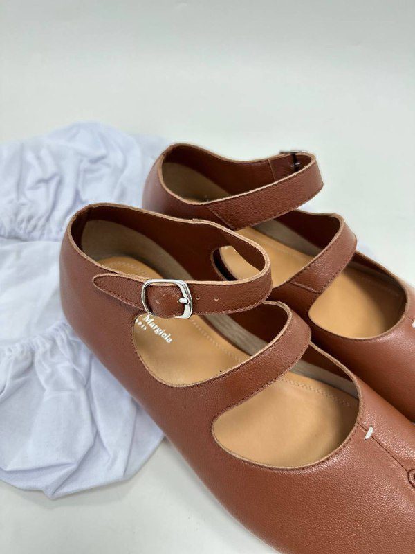 Балетки Tabi с ремешком Maison Margiela сделаны из натуральной кожи. Балетки сделаны с ремешком на ноге и дополнительным для регулировки. Купить данную модель можно в двух цветах: черный, коричневый.
