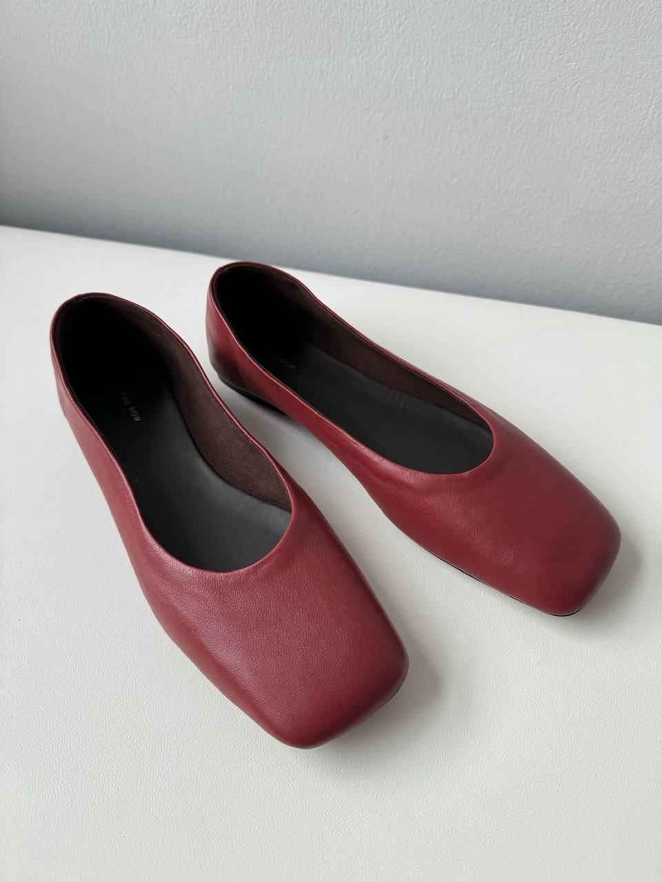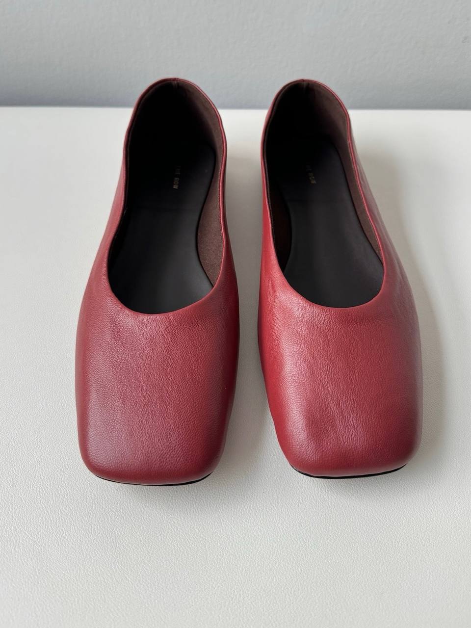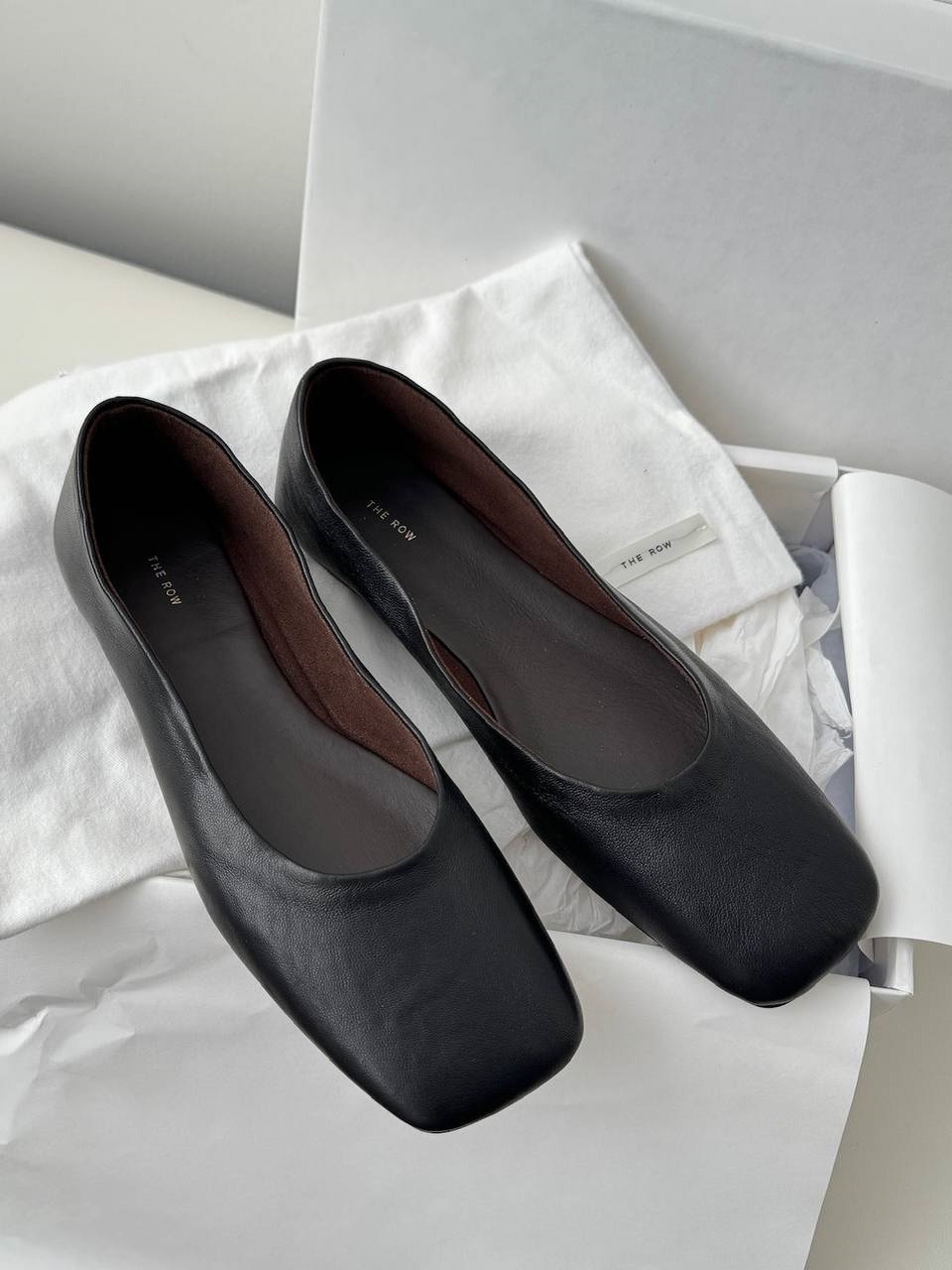 Способность Row делать сдержанные модели невероятно шикарными и неповторимыми не имеет себе равных. Эти балетки сделаны из гладкой кожи, имеют квадратные носки и небольшие каблуки. Носите их с чем угодно, от платьев до пошива одежды.