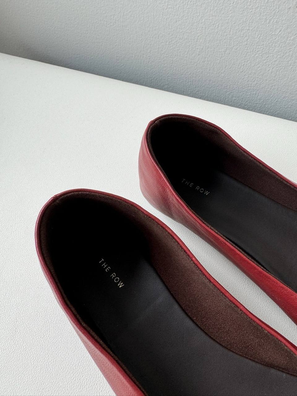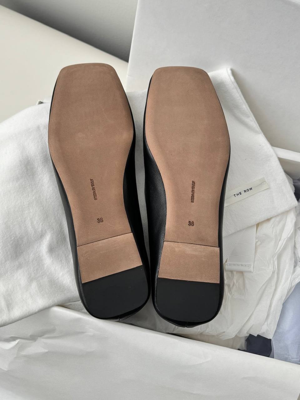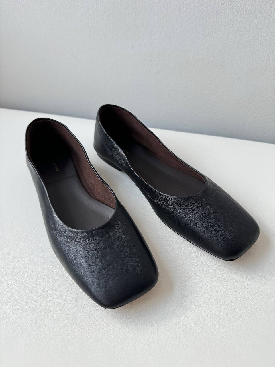 Способность Row делать сдержанные модели невероятно шикарными и неповторимыми не имеет себе равных. Эти балетки сделаны из гладкой кожи, имеют квадратные носки и небольшие каблуки. Носите их с чем угодно, от платьев до пошива одежды.
