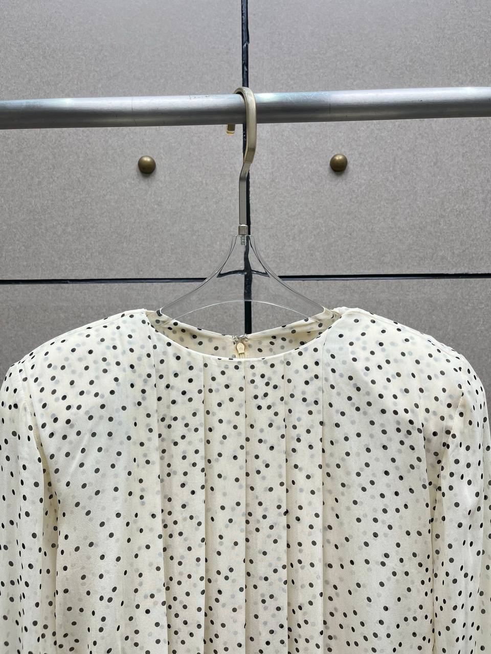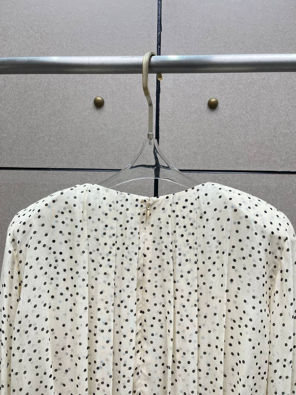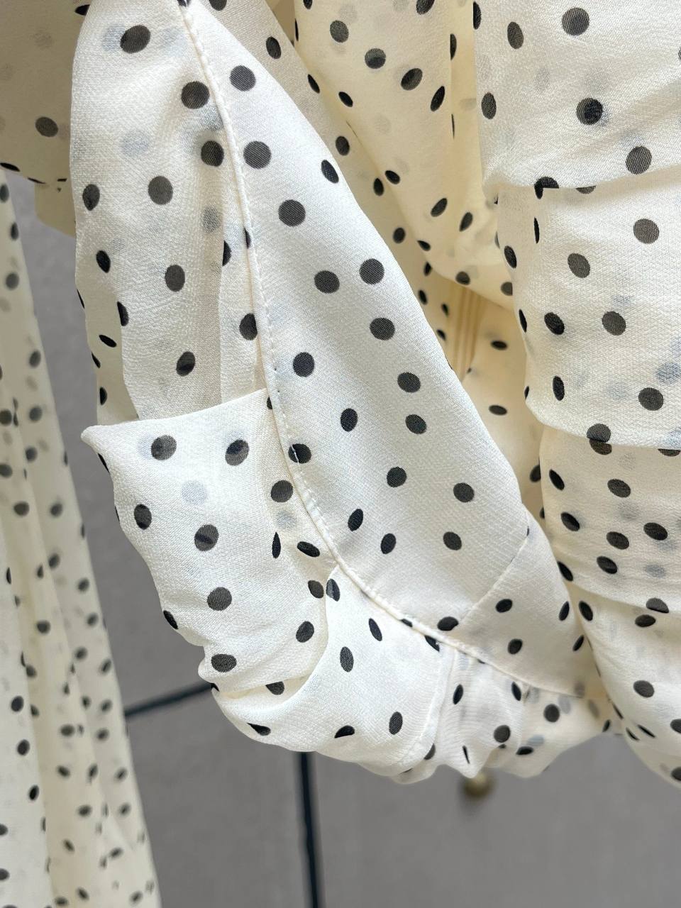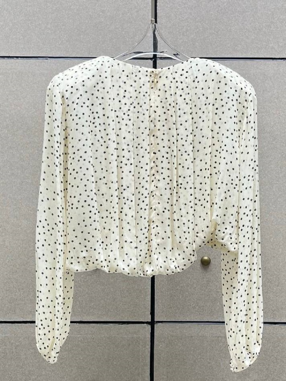 Блузка в крестьянском стиле от Magda Butrum имеет причудливое, воздушное ощущение. Она белого цвета в горошек выполнена из вискозы в волнистой форме и дополнена резинками на рукавах и талии.