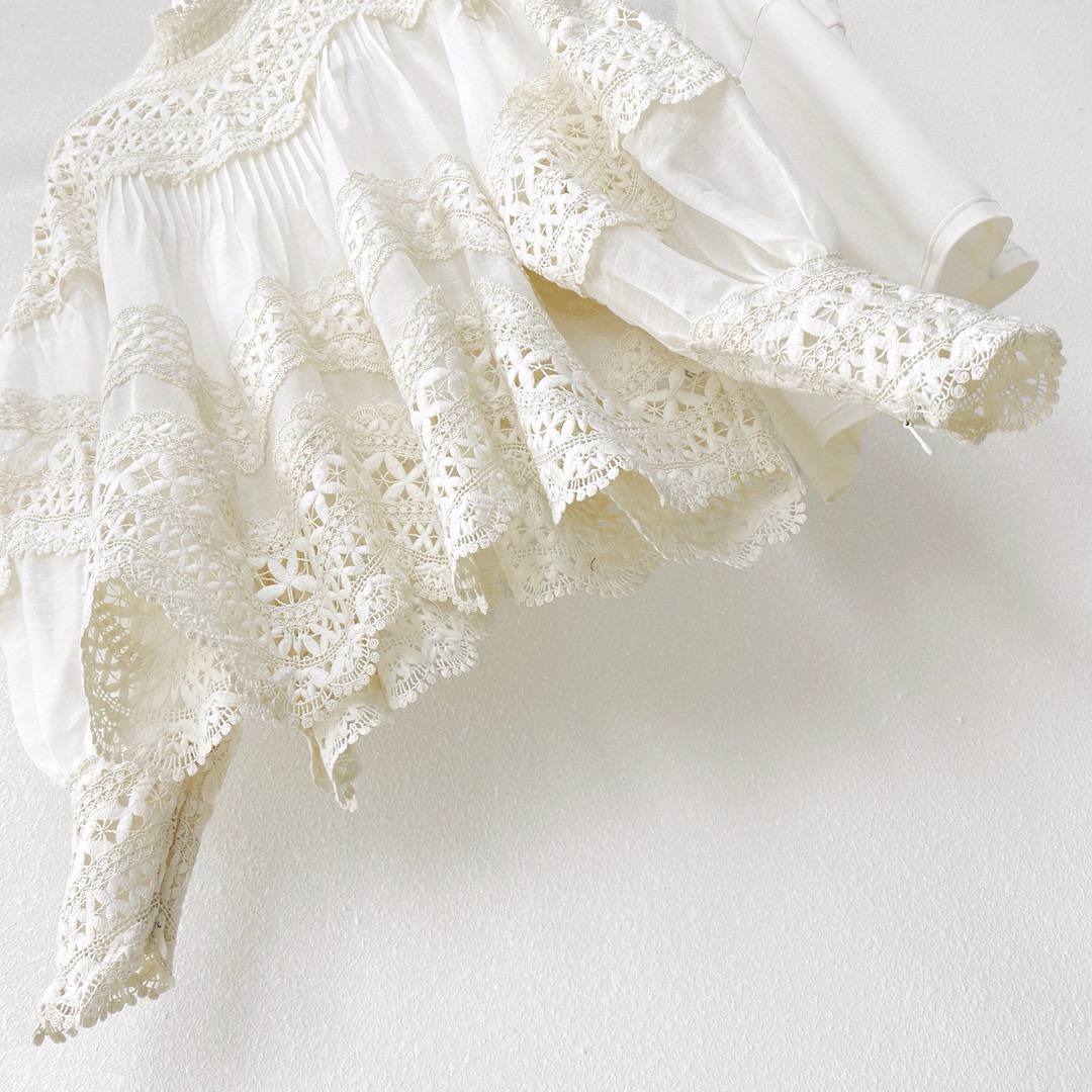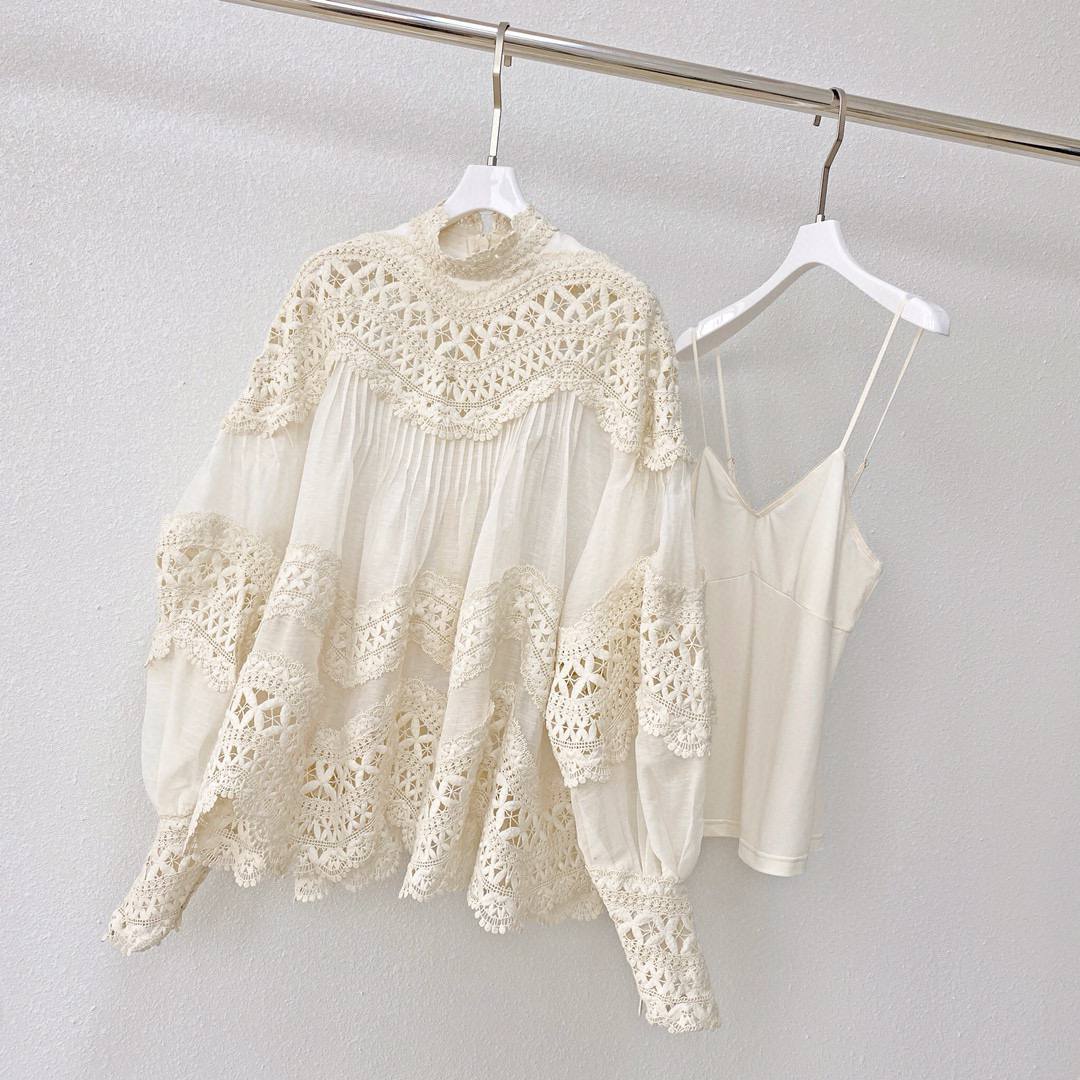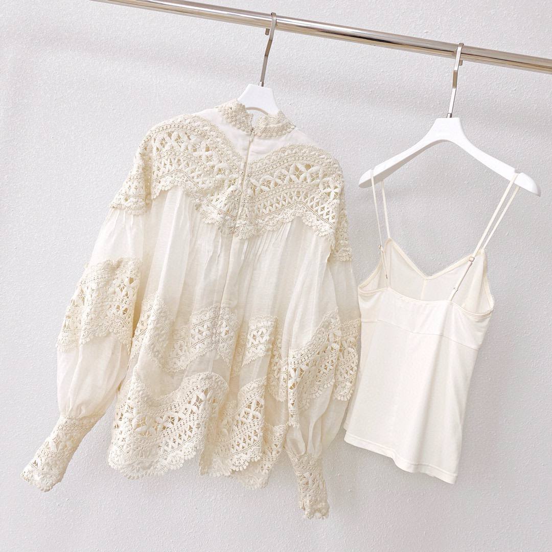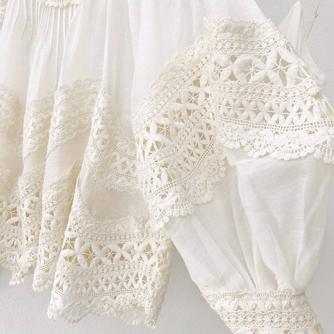 Не может быть романтичнее рубашки от Zimmermann. Сшитая из льна и шелковой органзы, она украшена гипюровыми кружевными оборками по всему изделию. Под блузкой тонкая майка на тонких бретелях. Носите ее на выпуск в пошив одежды с высокой посадкой.