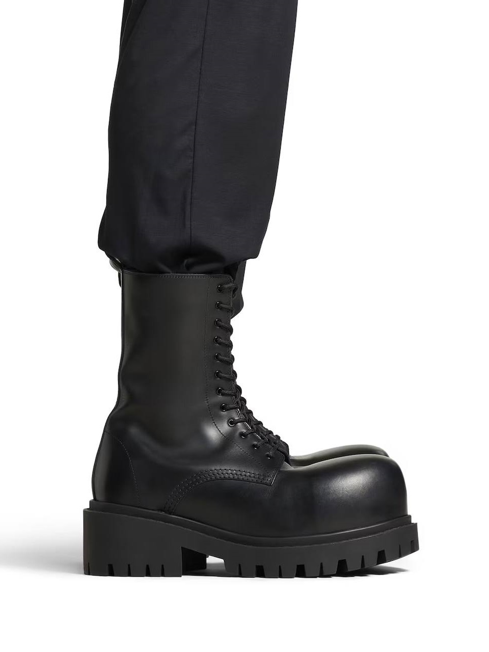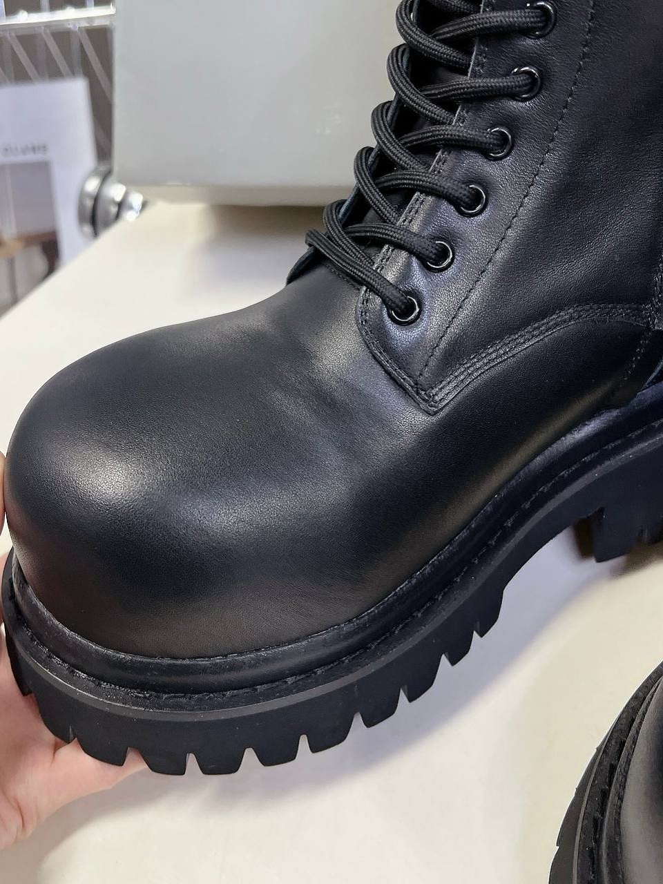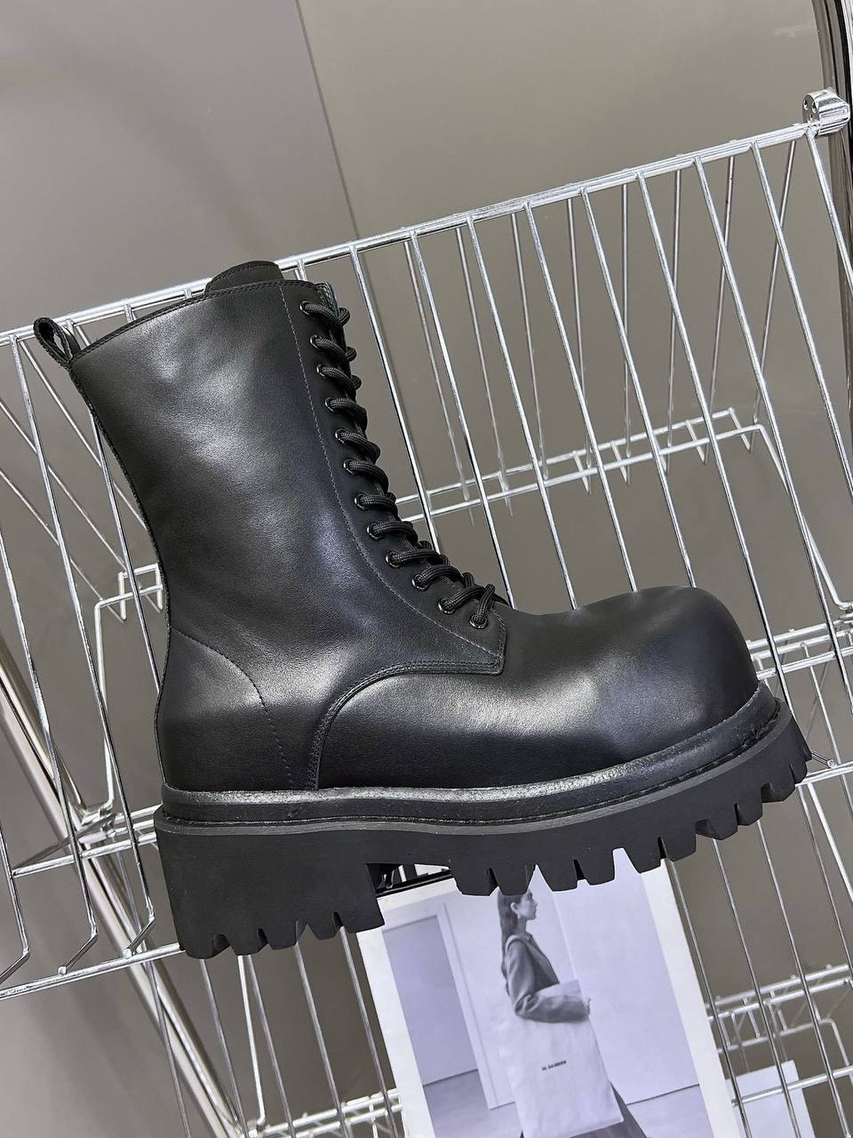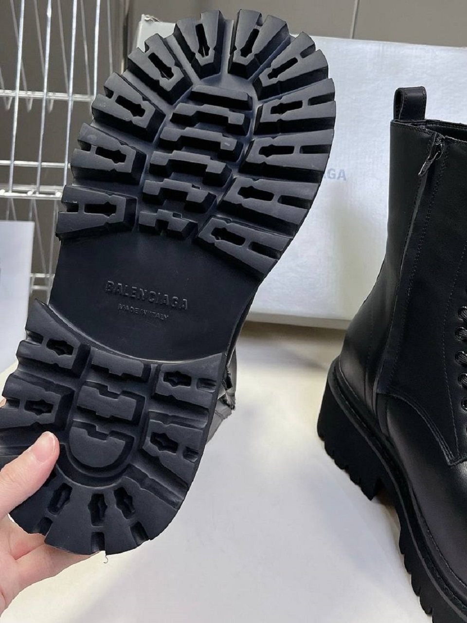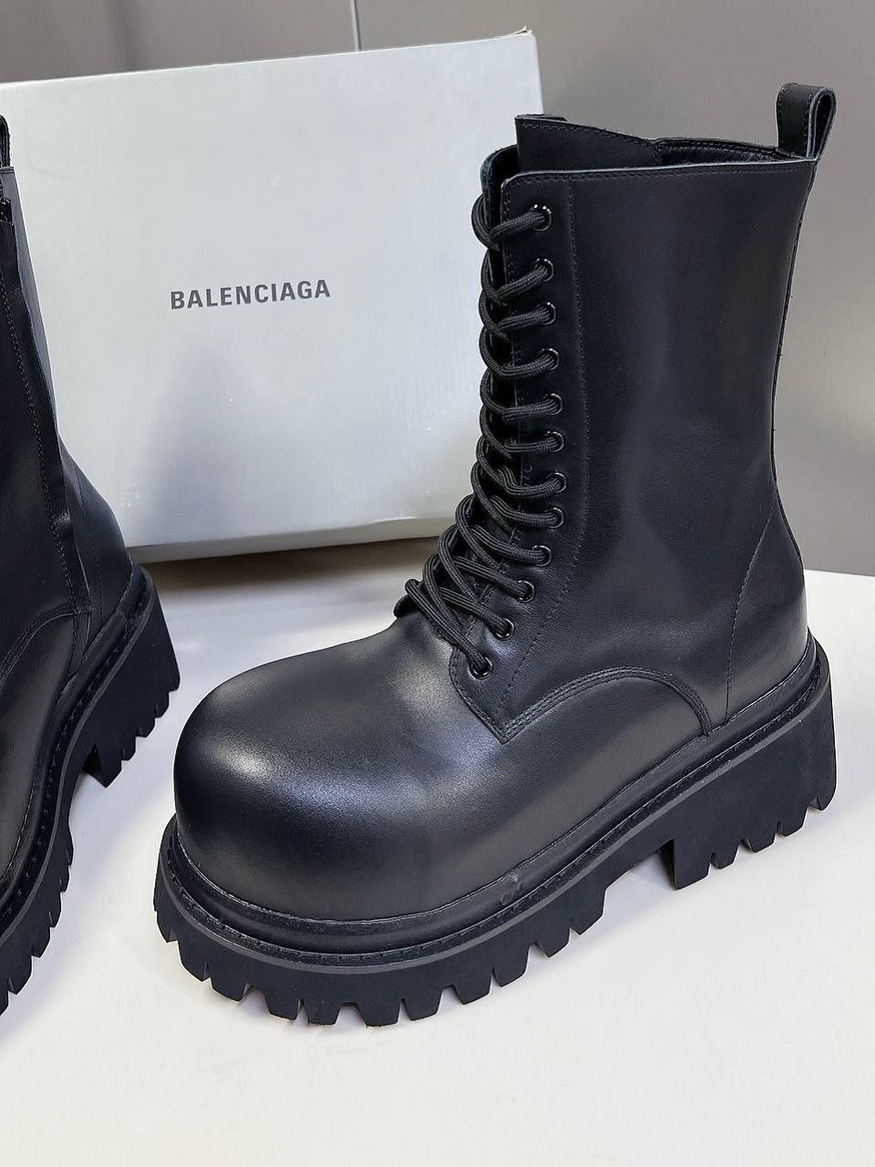 Ботинки Balenciaga сделаны из натуральной кожи в черном цвете. Данная модель на массивной подошве и большим закругленным носком. Купив ботинки вы дополните свой образ.