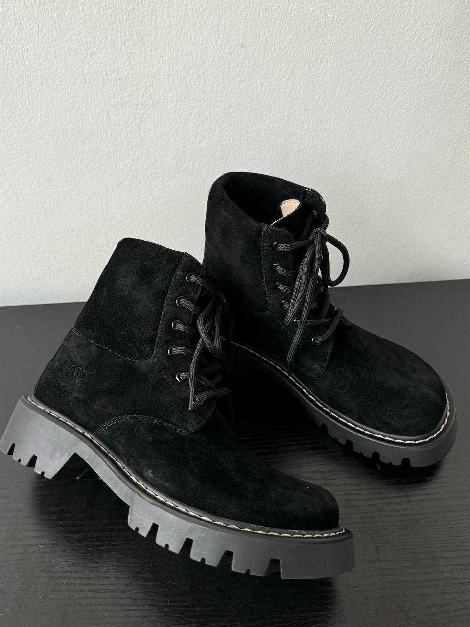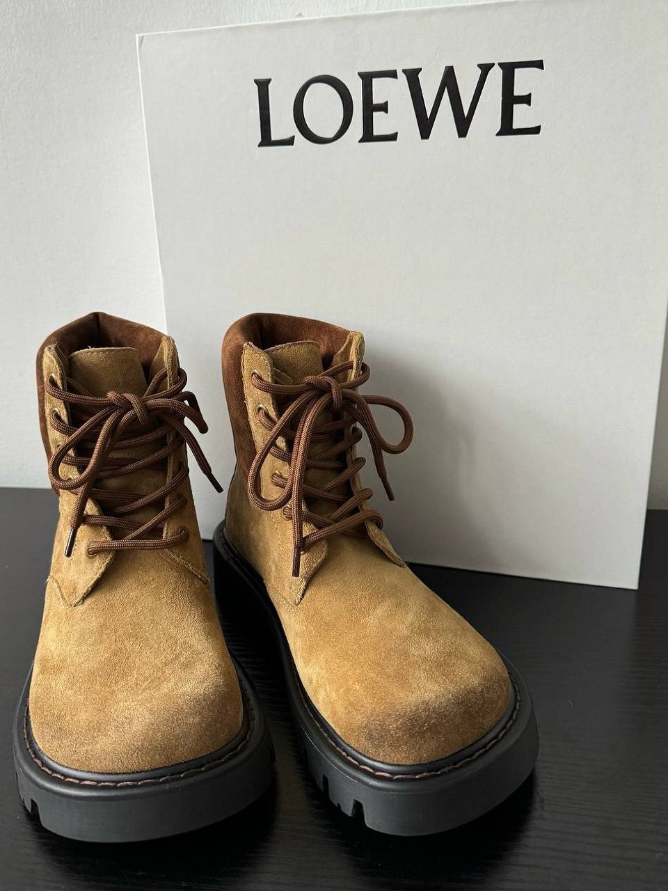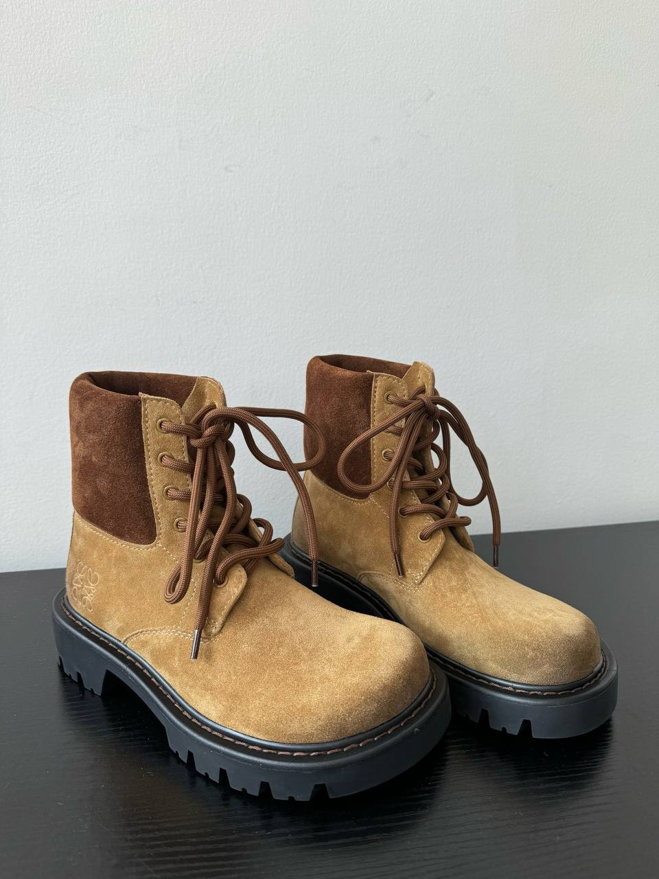 Ботинки Loewe Sierra на шнурках сделаны из натуральной кожи н массивной подошве. Замшевые ботинки можно купить в двух цветах: черный, коричневый.