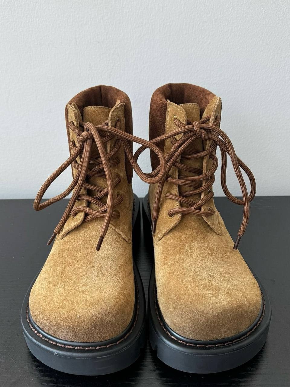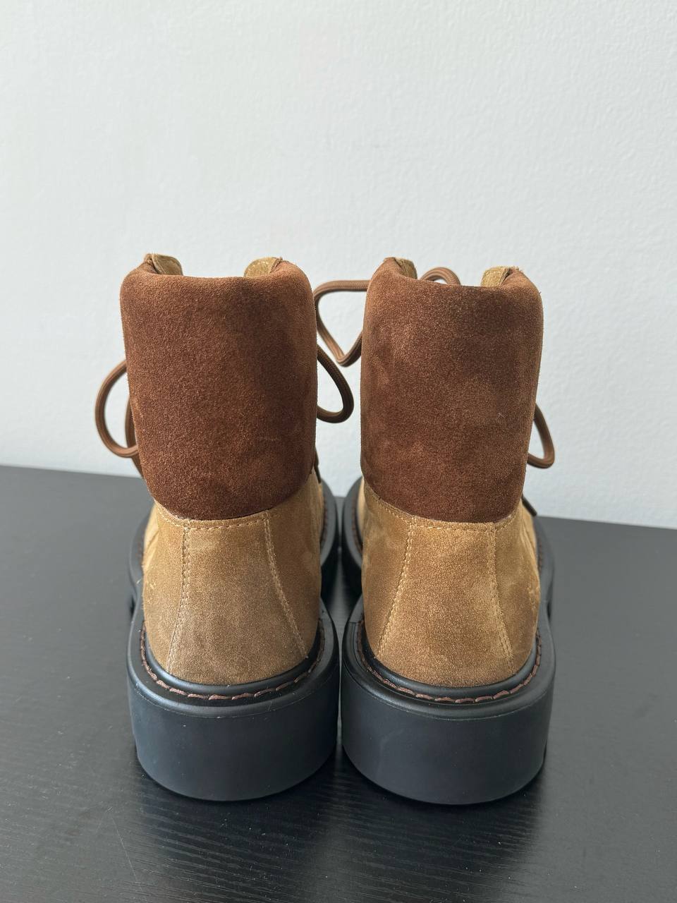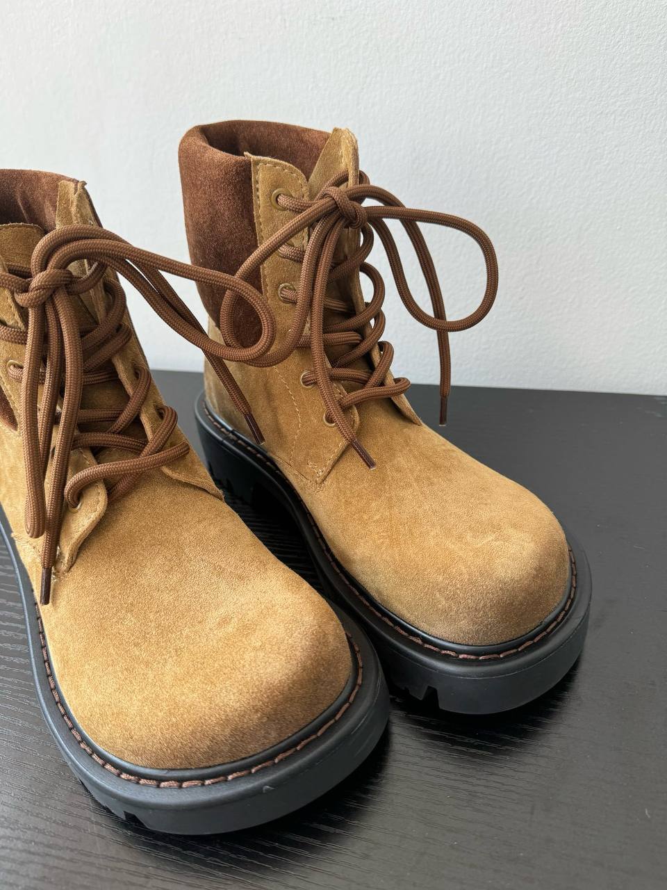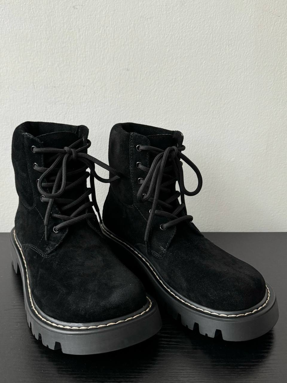 Ботинки Loewe Sierra на шнурках сделаны из натуральной кожи н массивной подошве. Замшевые ботинки можно купить в двух цветах: черный, коричневый.