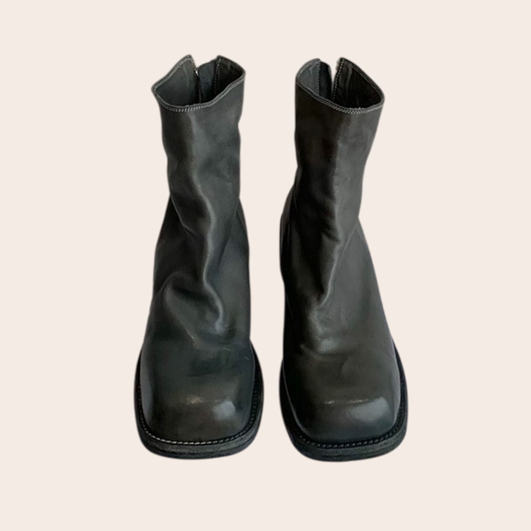 Ботильоны из плотной кожи с контрастной прострочкой, застежкой-молнией сзади, квадратным носком и средним блочным каблуком, полностью на подкладке. Носите их с джинсами и кожаной курткой.