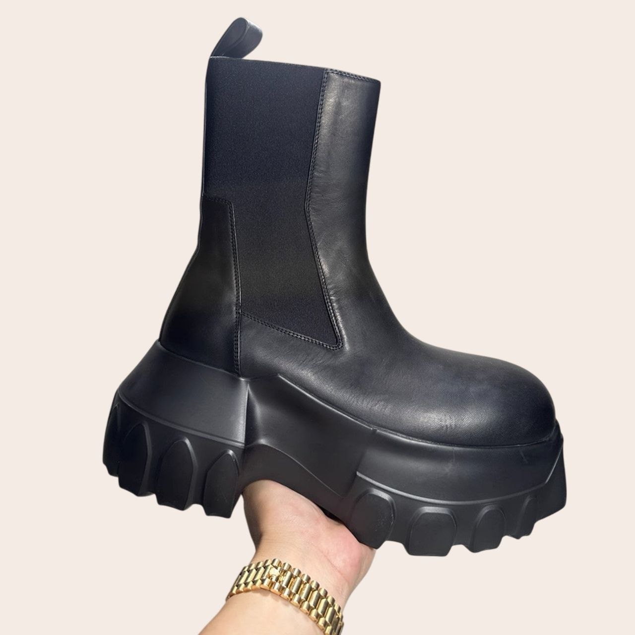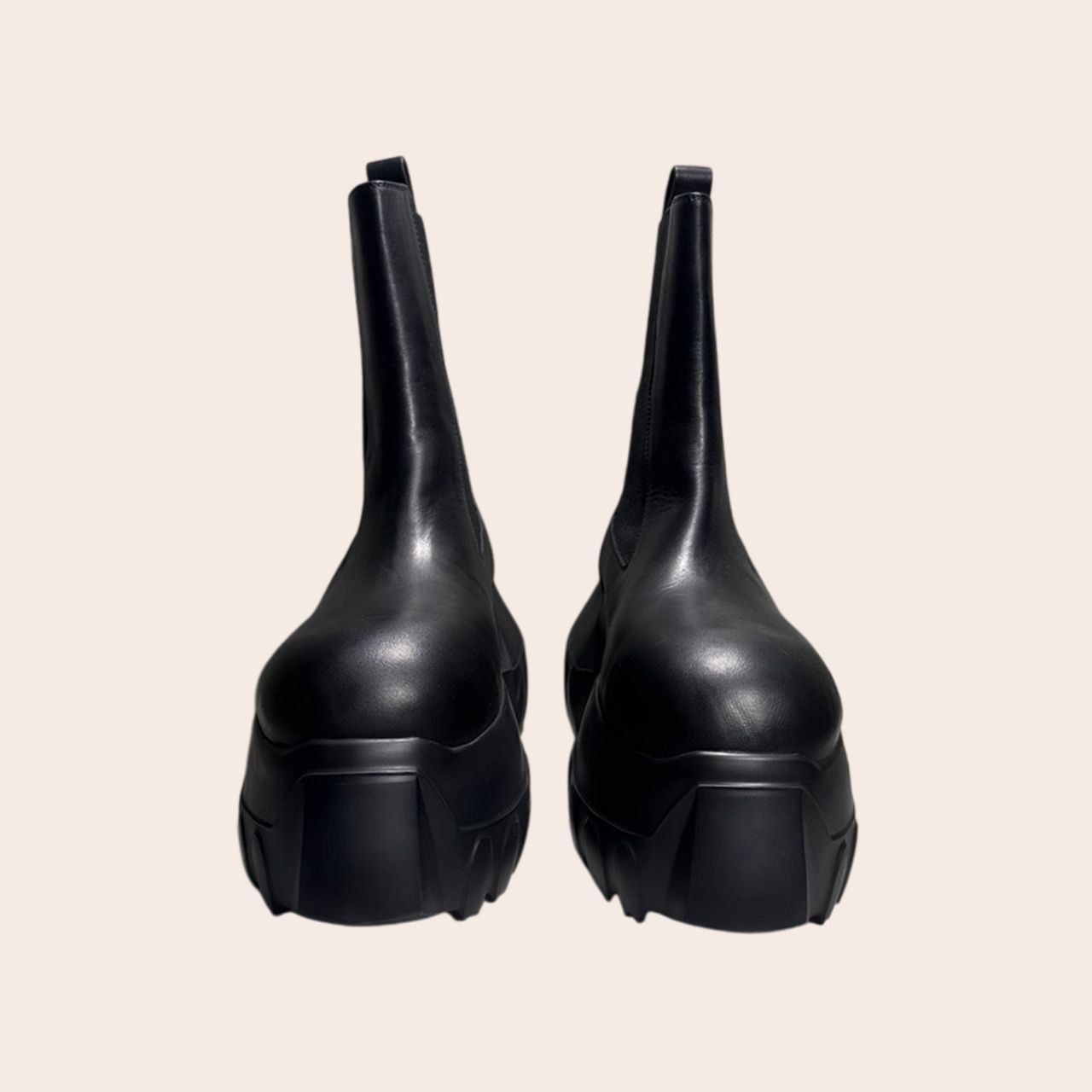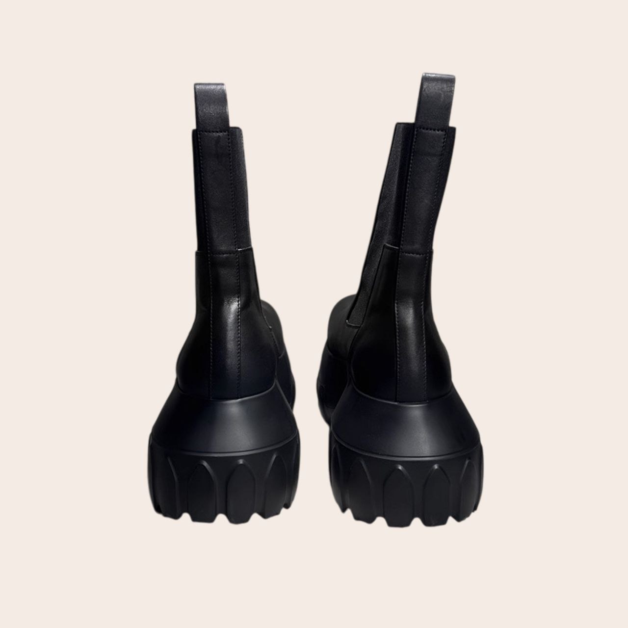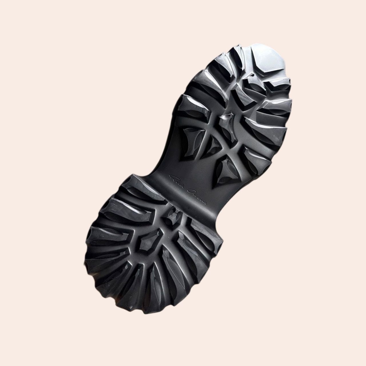 Ботинки Mega Tractor от Rick Owens выполнены из черной натуральной кожи. Они имеют закругленный носок и габаритную резиновую подошву. Носите их с другими товарами от Rick Owens.
