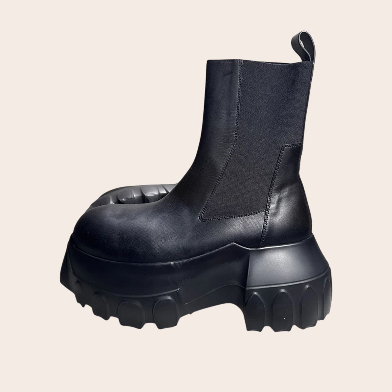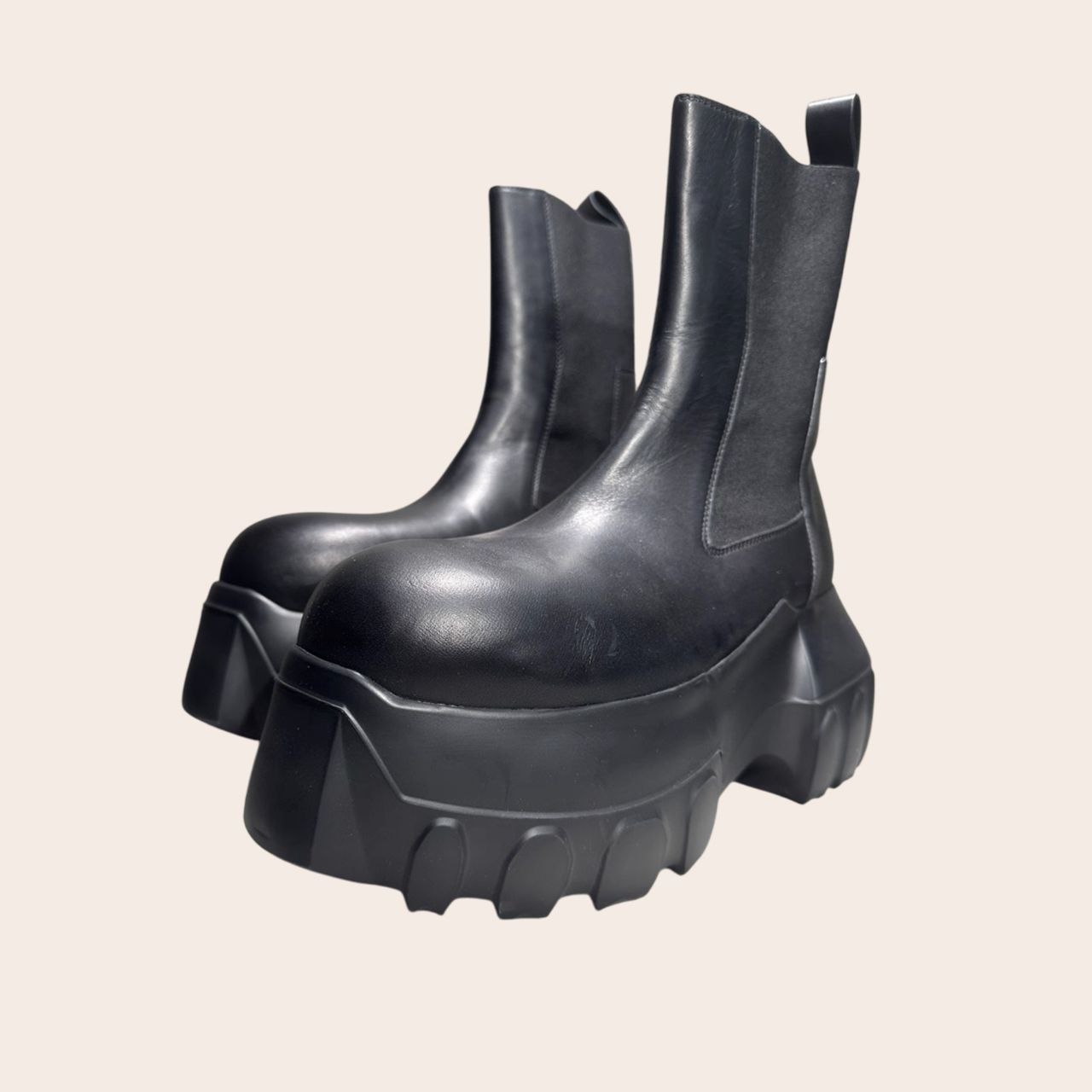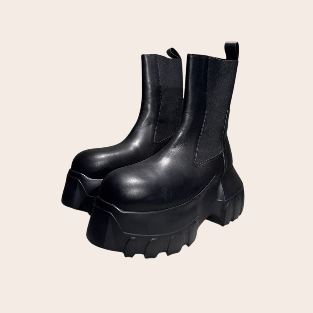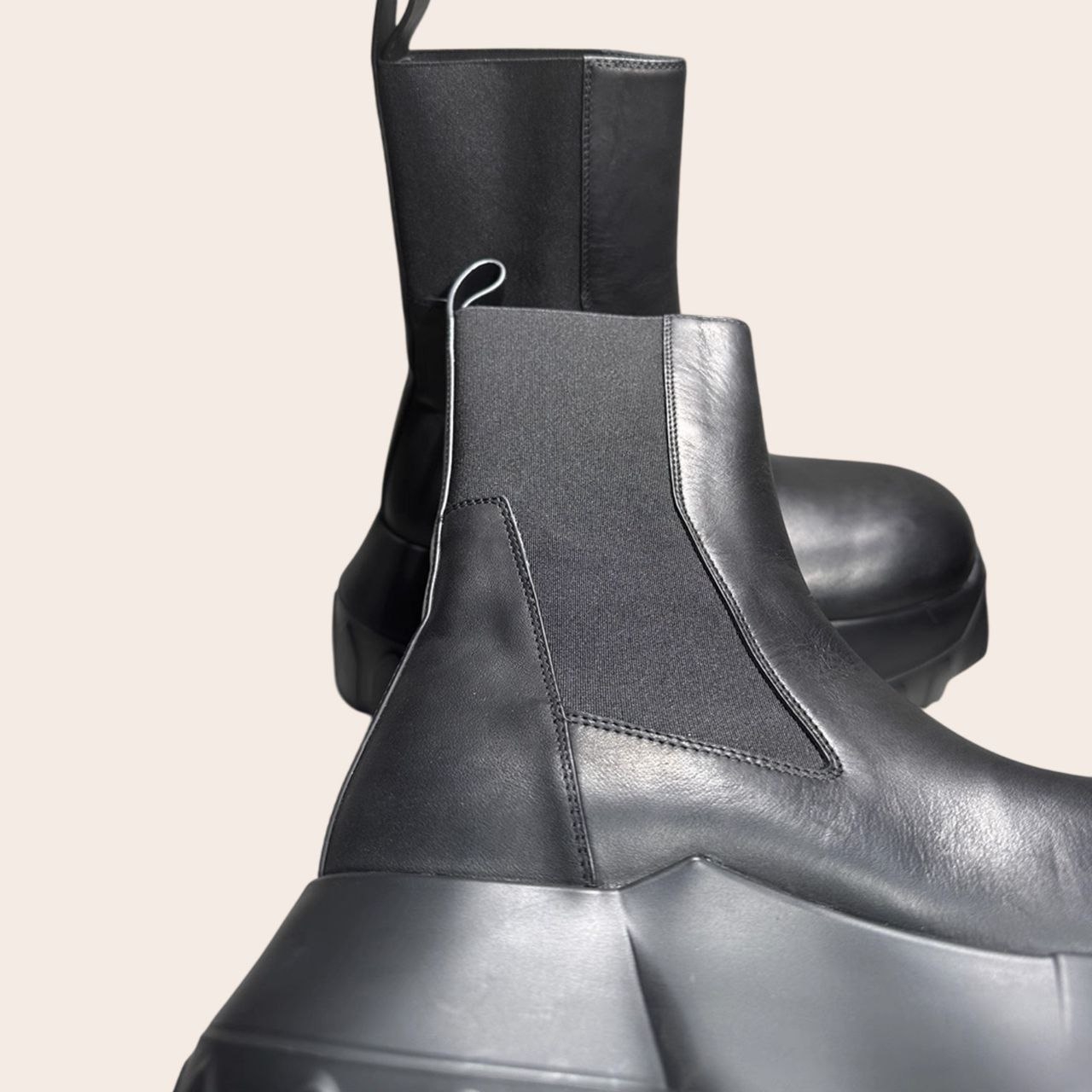 Ботинки Mega Tractor от Rick Owens выполнены из черной натуральной кожи. Они имеют закругленный носок и габаритную резиновую подошву. Носите их с другими товарами от Rick Owens.