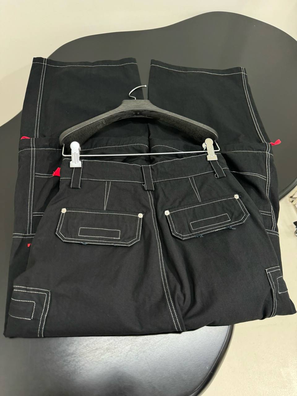 Эти брюки из смесового хлопкового твила отличаются увеличенным объемом и трансформируемыми молниями ниже колена для модульной посадки. Украшены логотипом бренда на кармане.