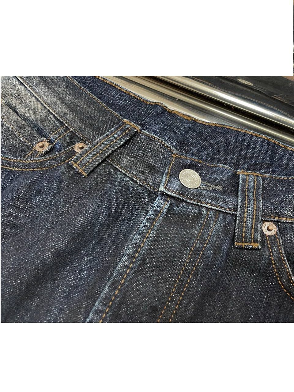 Джинсы Acne Studios сделаны из натурального хлопка в темном цвете. Данная модель багги средней посадки с карманами из натуральной кожи.