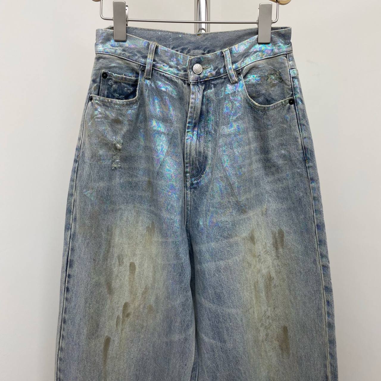 Джинсы Acne Studios Super Baggy Fit имеют модную бочкообразную форму, которая изгибается на колене и сужается к манжетам. Они сделаны из выцветшего денима с пятнами и имеют удобную среднюю талию.