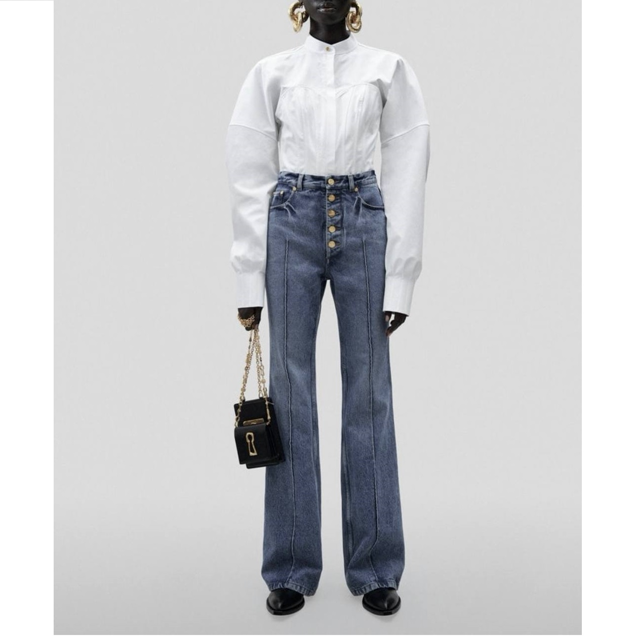 Джинсы от Schiaparelli имеют высокую талию и широкие штанины, что обеспечивает универсальный дизайн и удлиненный эффект. Они сделаны из денима голубого оттенка и выглядят шикарно с чем угодно, от свитера до женственной блузки.