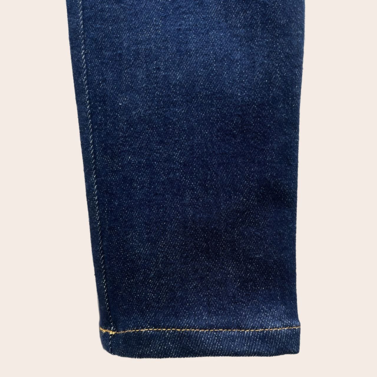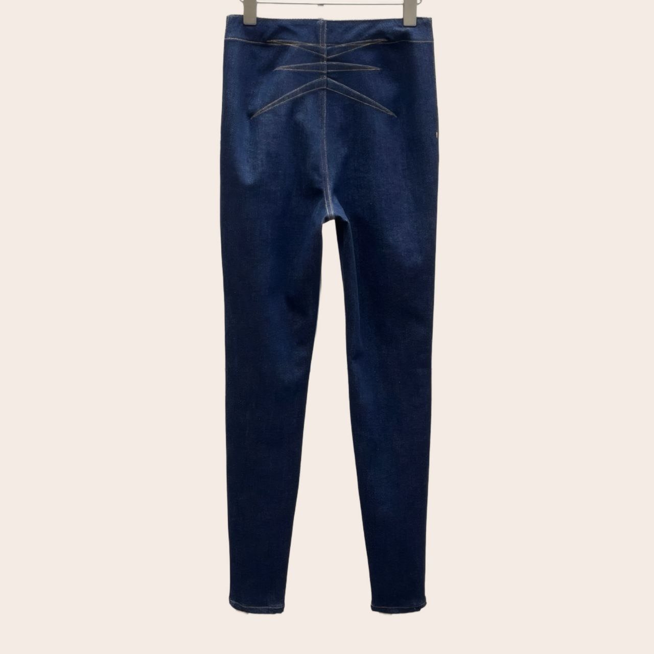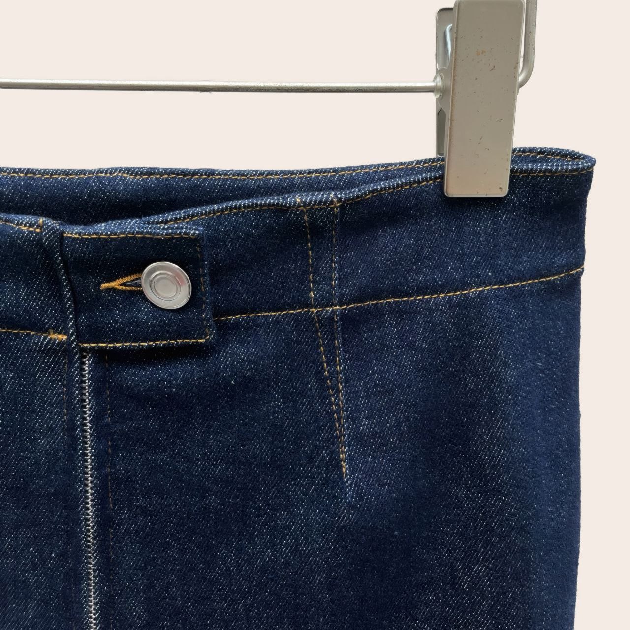Джинсы Alaia имеют модный зауженный силуэт. Они сшиты из денима синего цвета и имеют уникальные угловатые швы сзади. Носите их с укороченной блузкой или свитером.