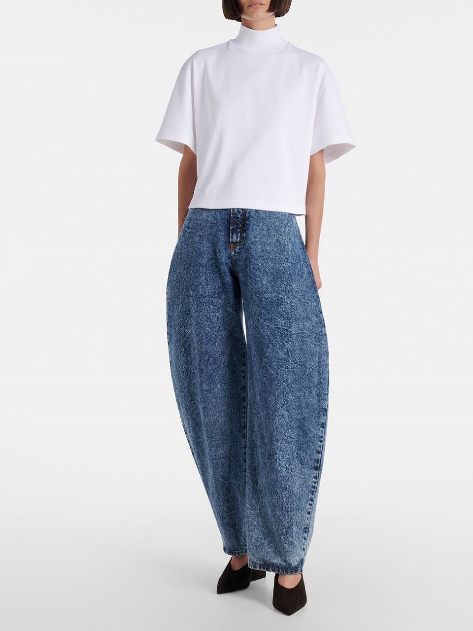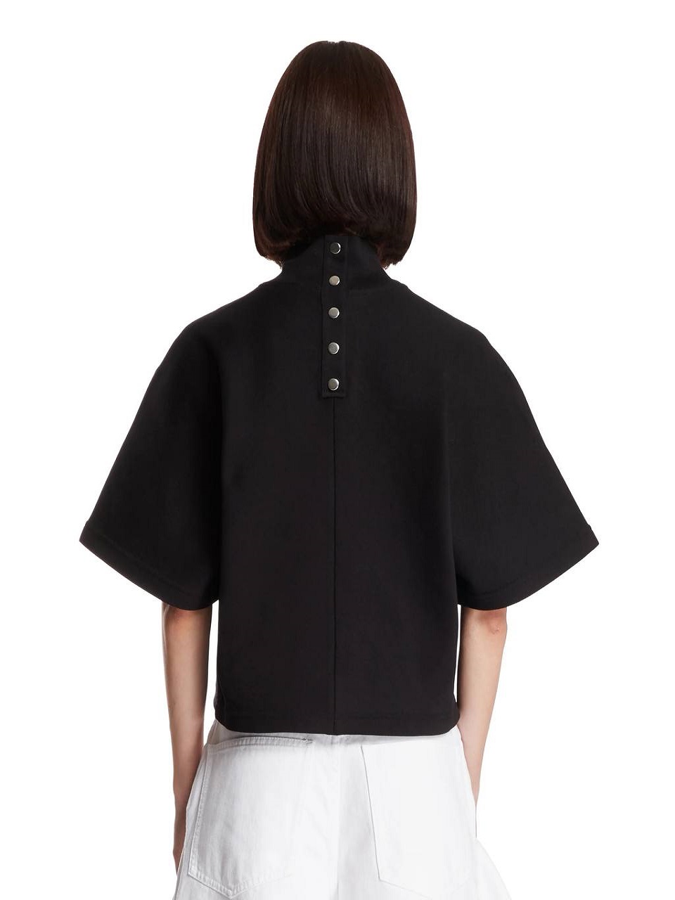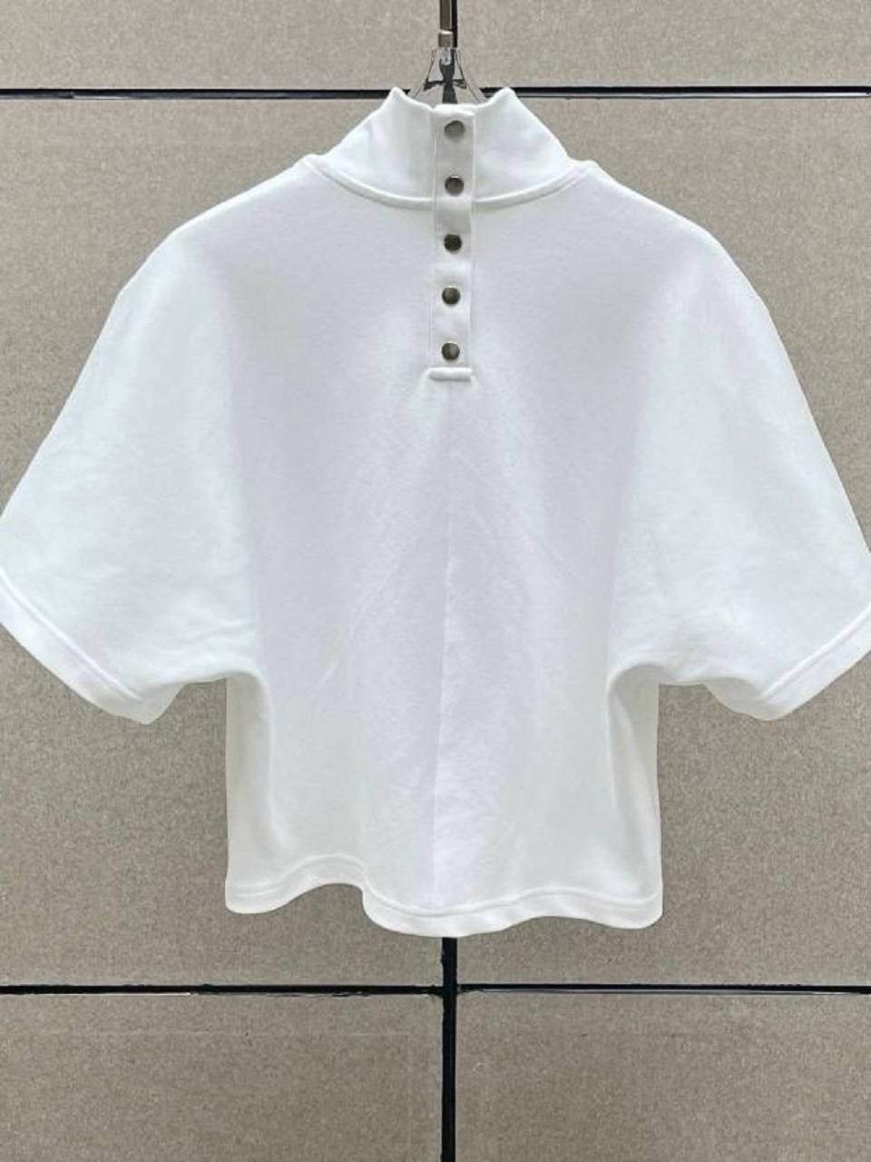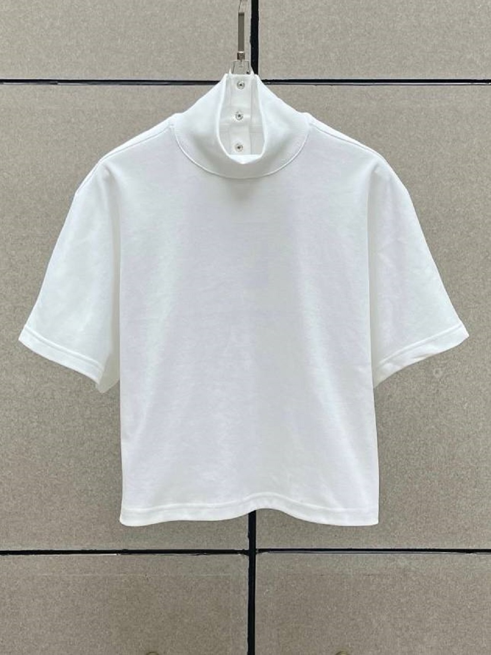 Когда речь заходит о люксовых футболках ALAÏA, стиль и изящество всегда идут рука об руку. Каждый шов, каждая линия этих произведений искусства подчеркивает не только безупречный вкус, но и высочайшие стандарты качества. Футболка выполнена из натурального хлопка, укороченная с высоким воротником и имеет пуговицы.
