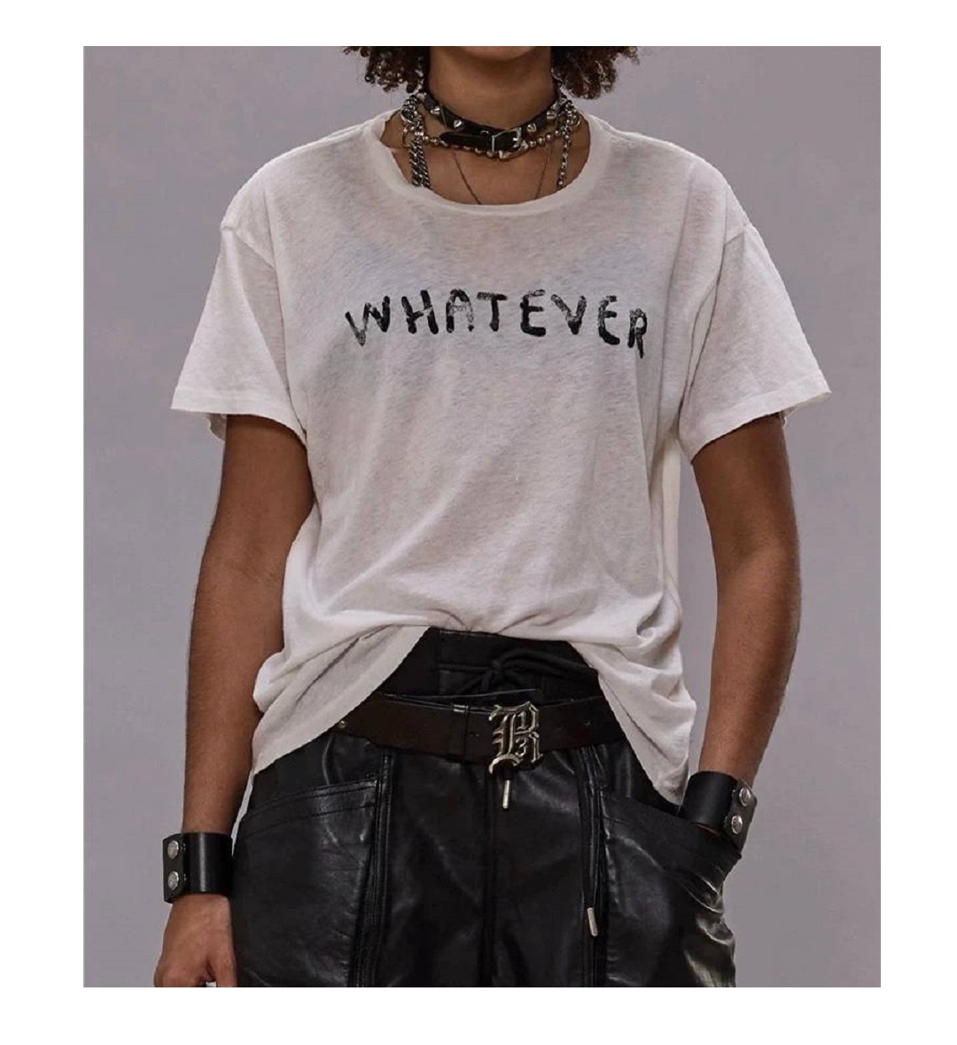 Для коллекции весна-лето 25 года R13 делает акцент на парижской небрежности – каждая из вещей кажется «текучей и спонтанной». Эта футболка выполнена из натурального хлопка и украшена надписью впереди на груди.