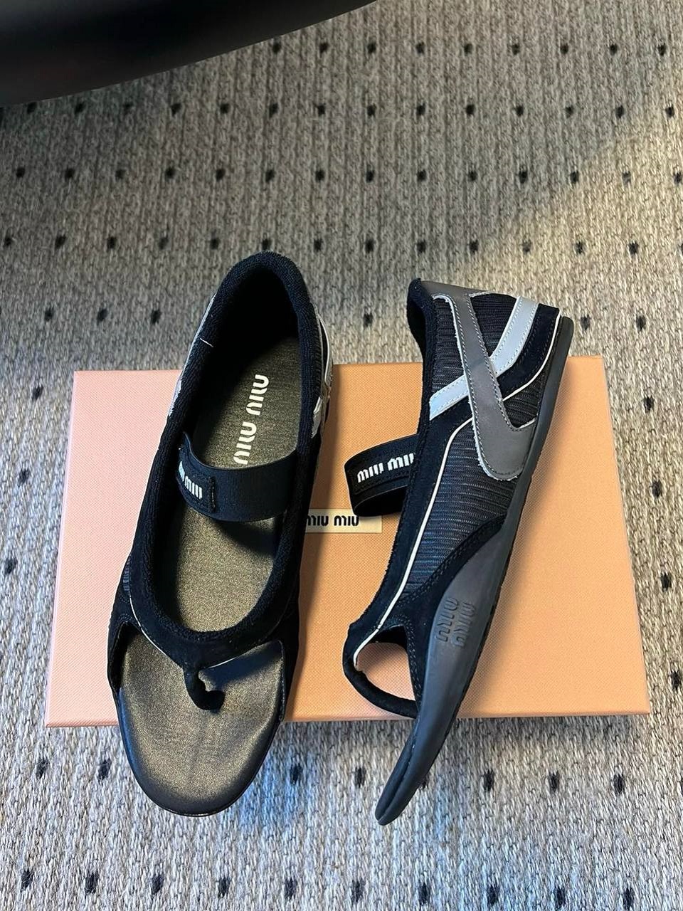 Балетки Miu Miu из технической ткани и замши- Бренд Miu Miu