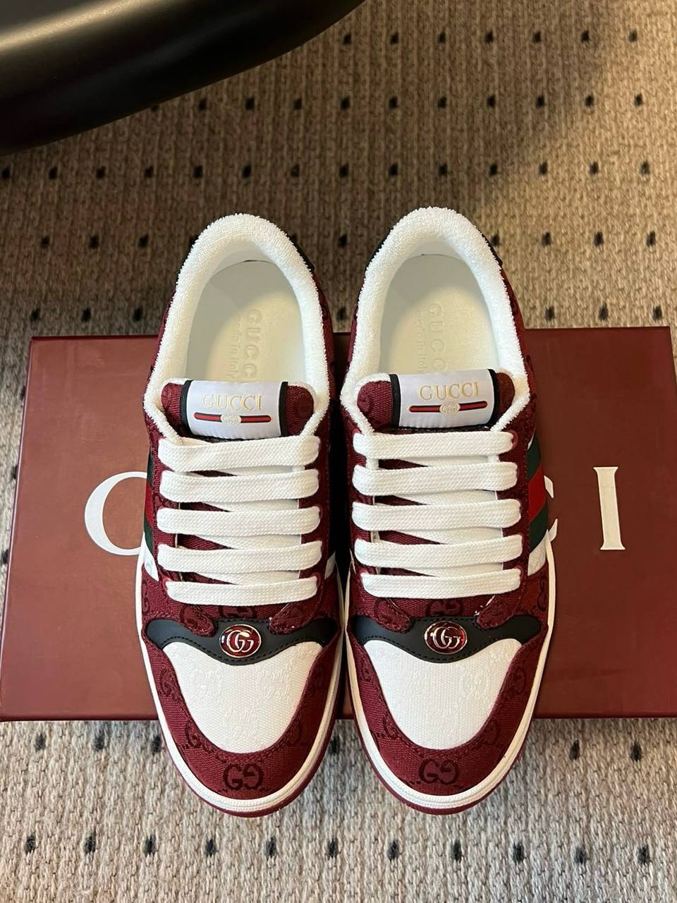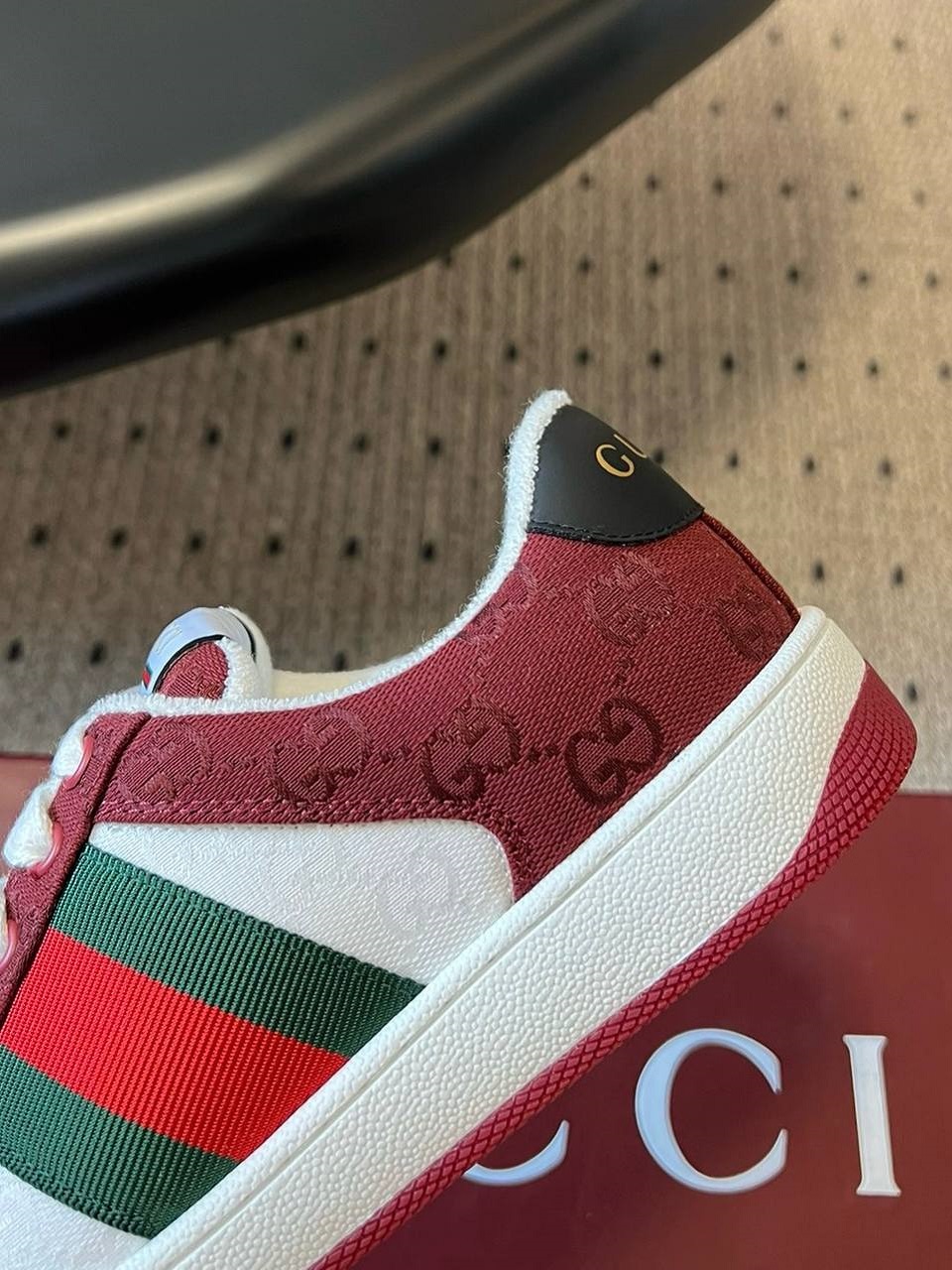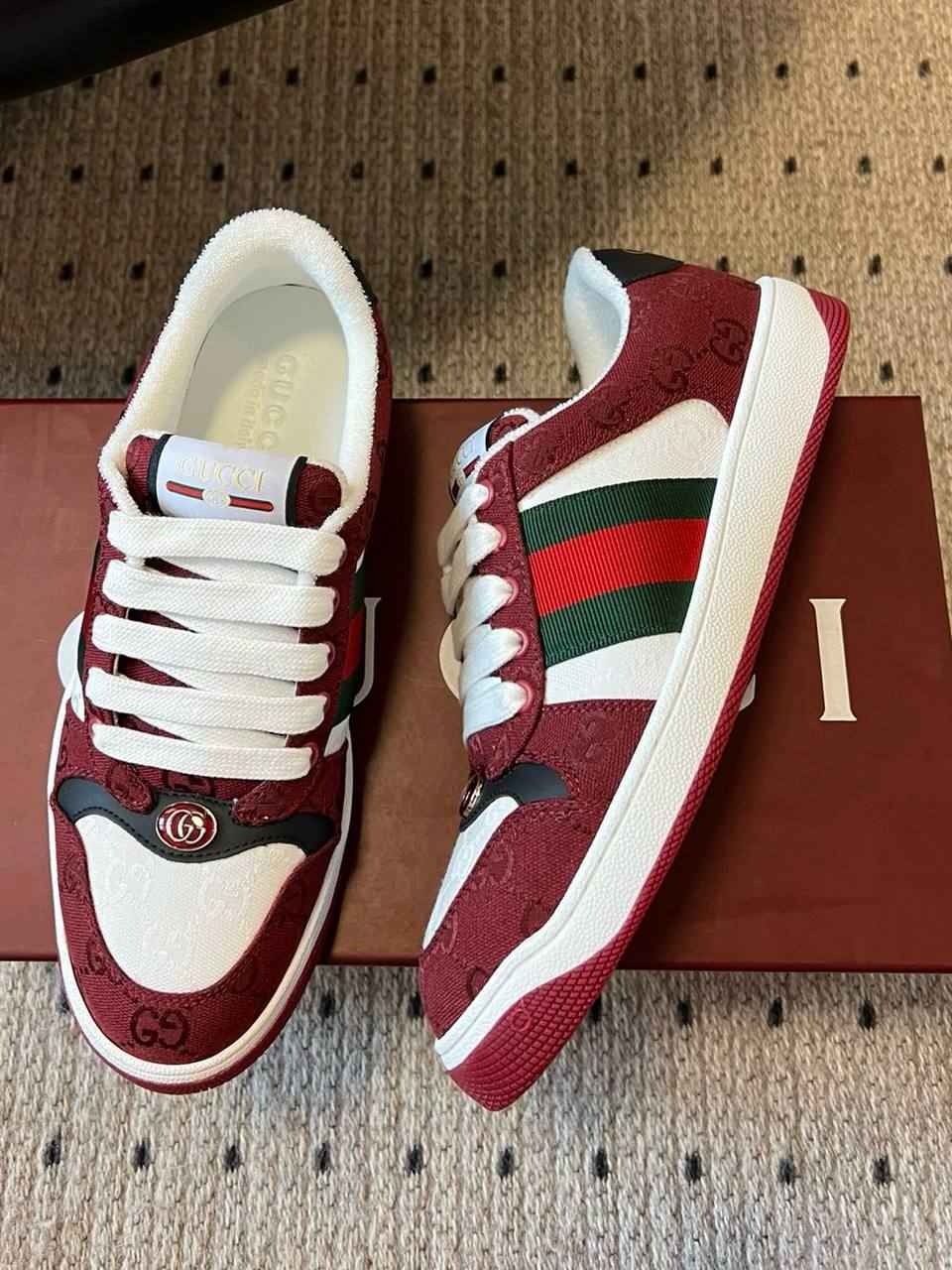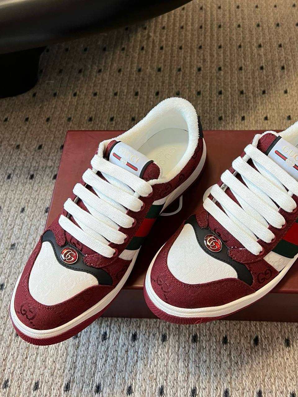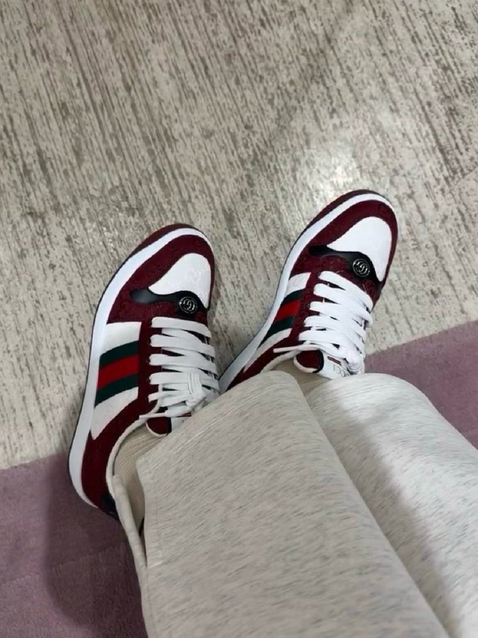 Кеды Gucci Screener отделаны полосатой тесьмой — фирменный стиль дома, впервые появившийся в 50-х годах. Сделанные в Италии из кожи, они отделаны вставками из хлопка с надписями бренда.