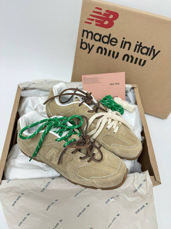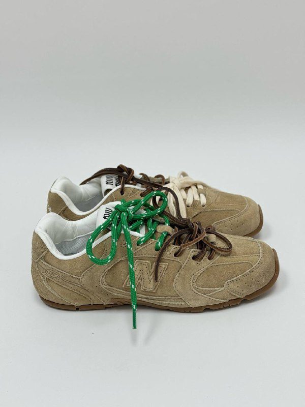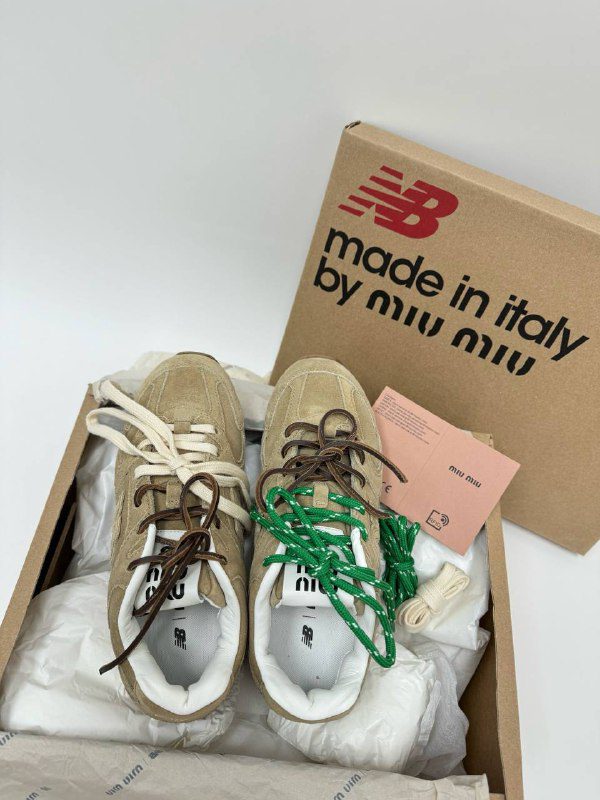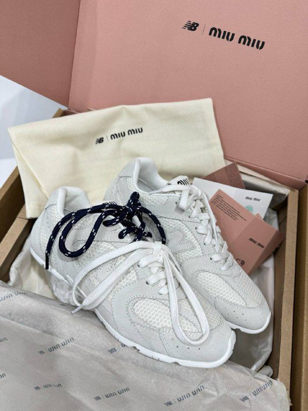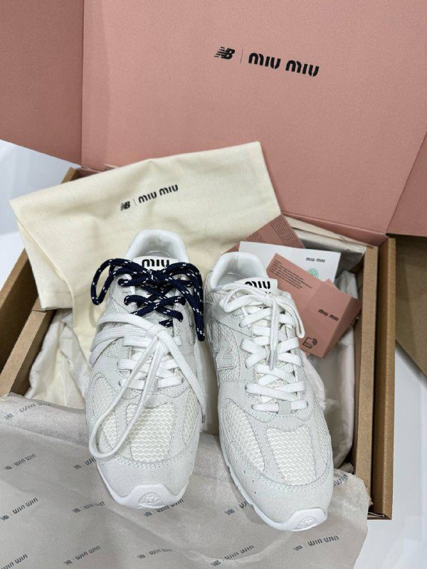 Кеды Miu Miu х New Balance сделаны из натуральной кожи. Данная модель на низком ходу с закругленным носком, украшена обувь вставками в цвет и логотипом. Купить кеды Miu Miu х New Balance можно в двух цветах: бежевый, белый.