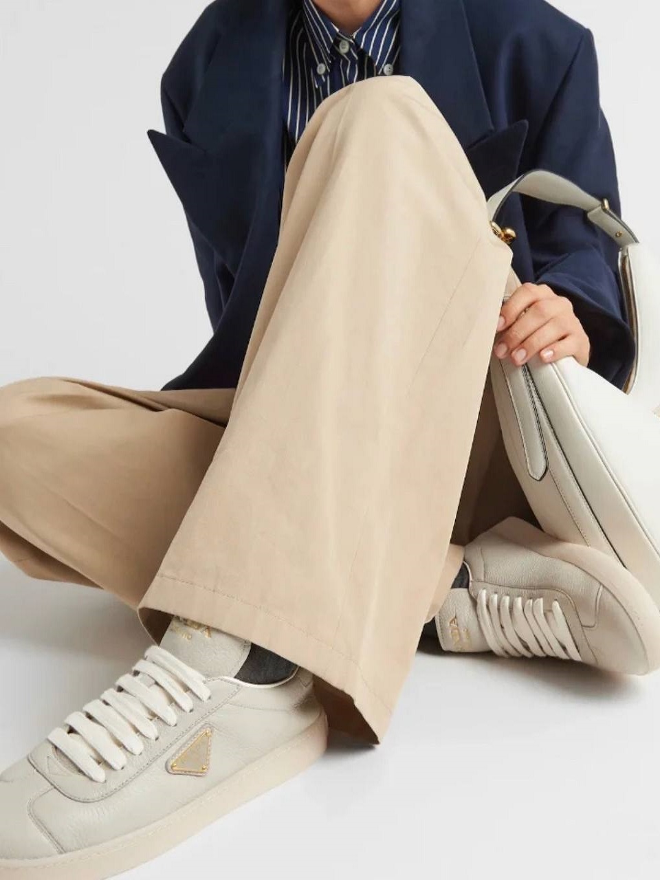 Кроссовки от Prada сделают любой наряд немного более крутым. Они сделаны в Италии из натуральной кожи и отделки. Резиновые подошвы уже состарены для ощущения поношенности, так что вам не придется беспокоиться, когда вы наденете их в первый раз.