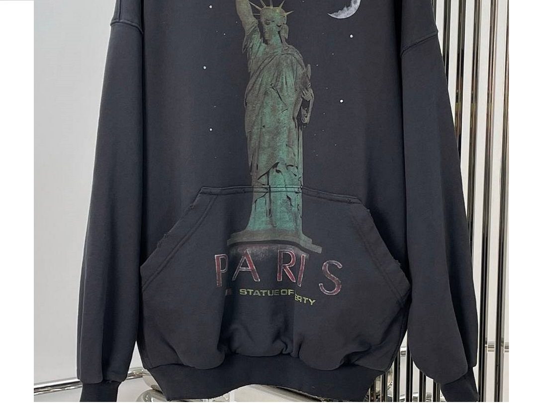 Худи Balenciaga сделана из натурального хлопка. Данная модель с капюшоном в свободном стиле и украшена рисунком и надписью впереди. Купив худи Balenciaga вы дополните свой образ.