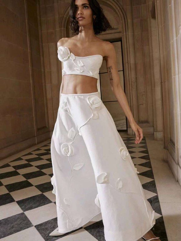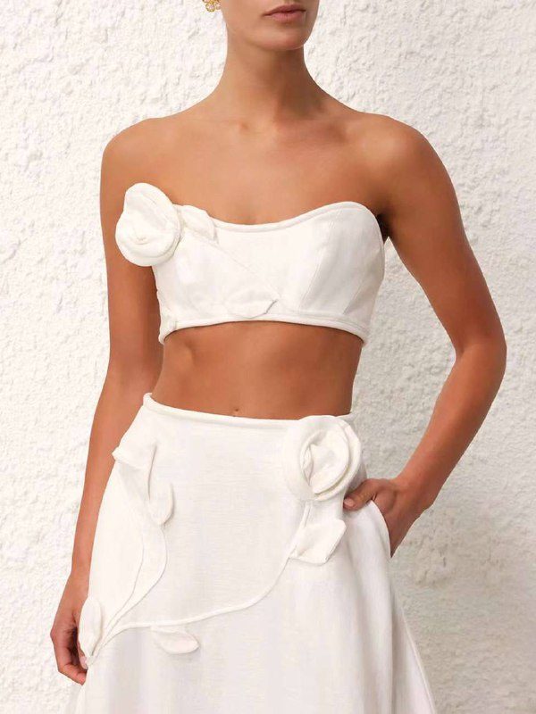 Костюм Zimmermann сделан из льна. Данная модель состоит из юбки и топа. Костюм в двух цветах: белый, лимонный. Украшен цветами из ткани. Купив костюм вы дополните свой повседневный образ.