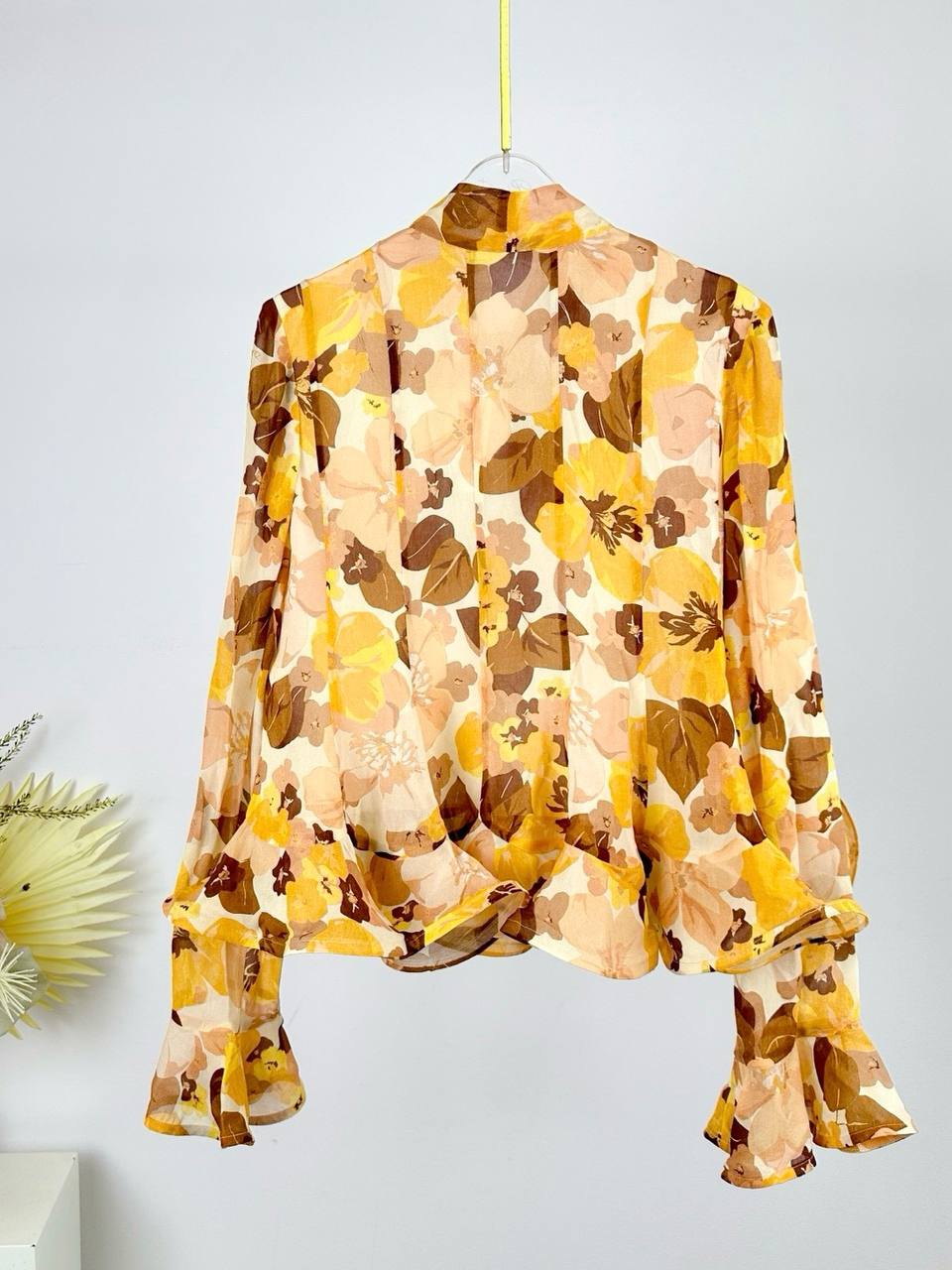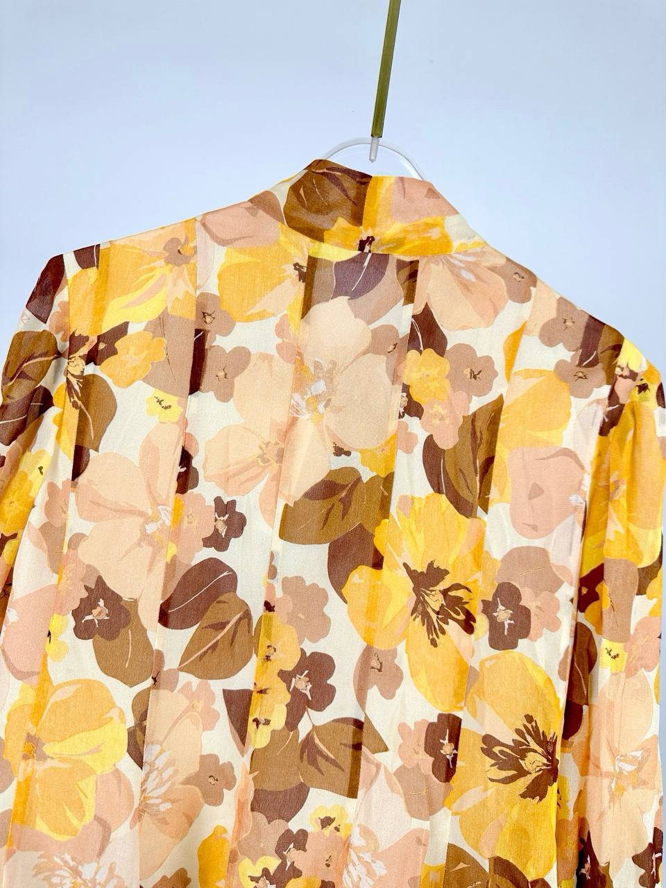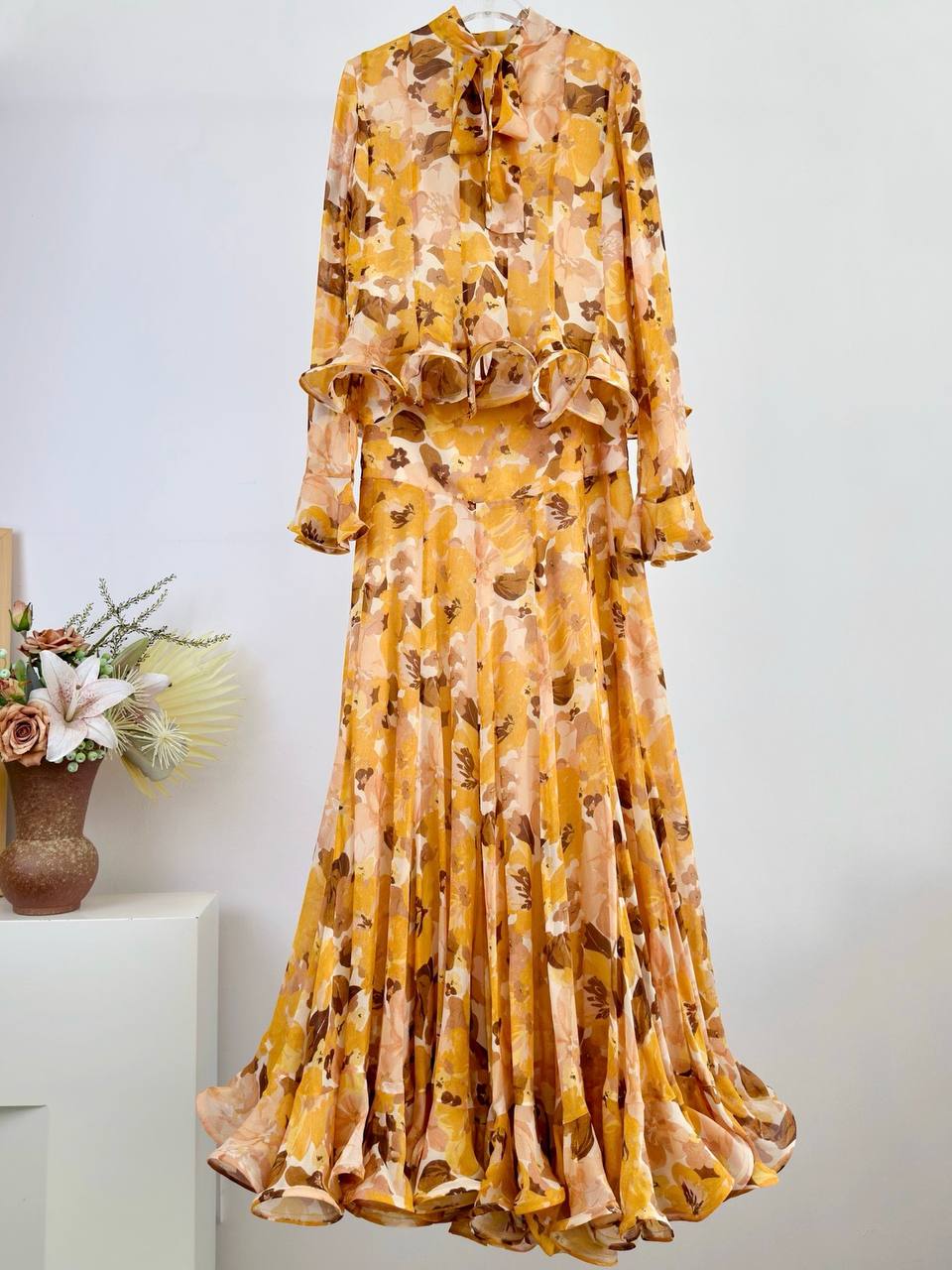 Костюм Zimmermann с оборками имеет сплошной цветочный принт. Юбка с длинным подолом и расклешенная. Носите с костюмом босоножки или балетки.