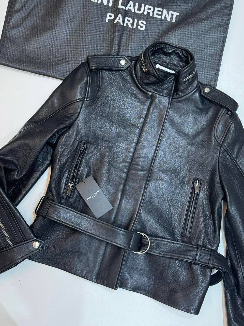 Кожаная куртка Saint Laurent на ремне