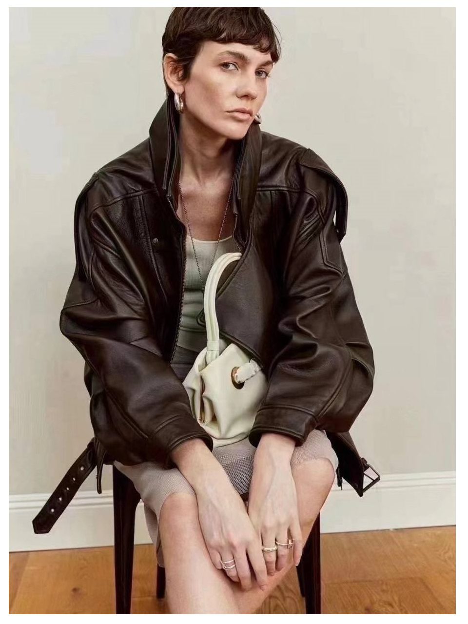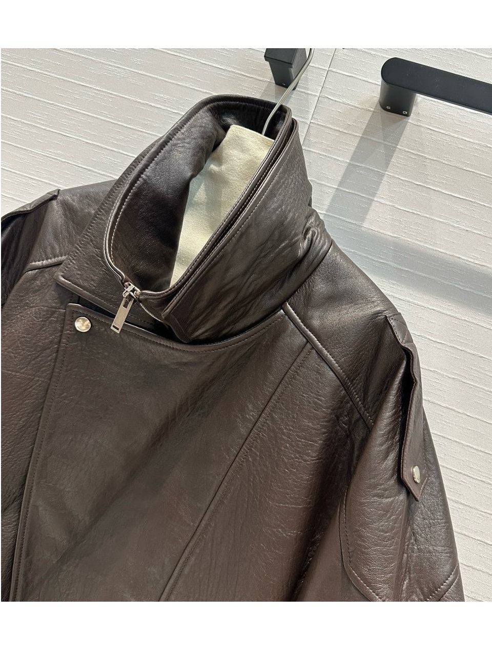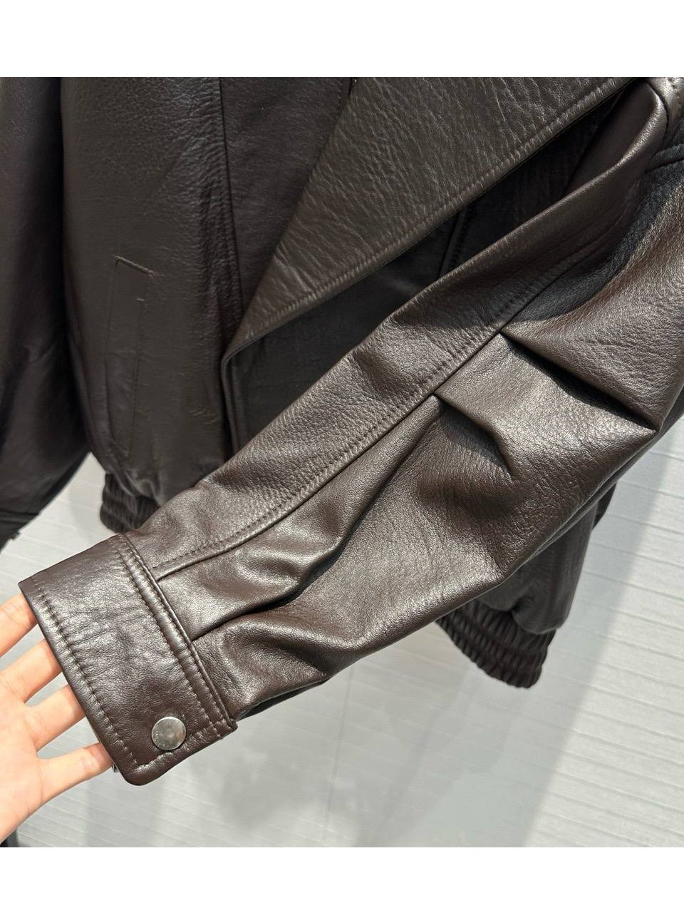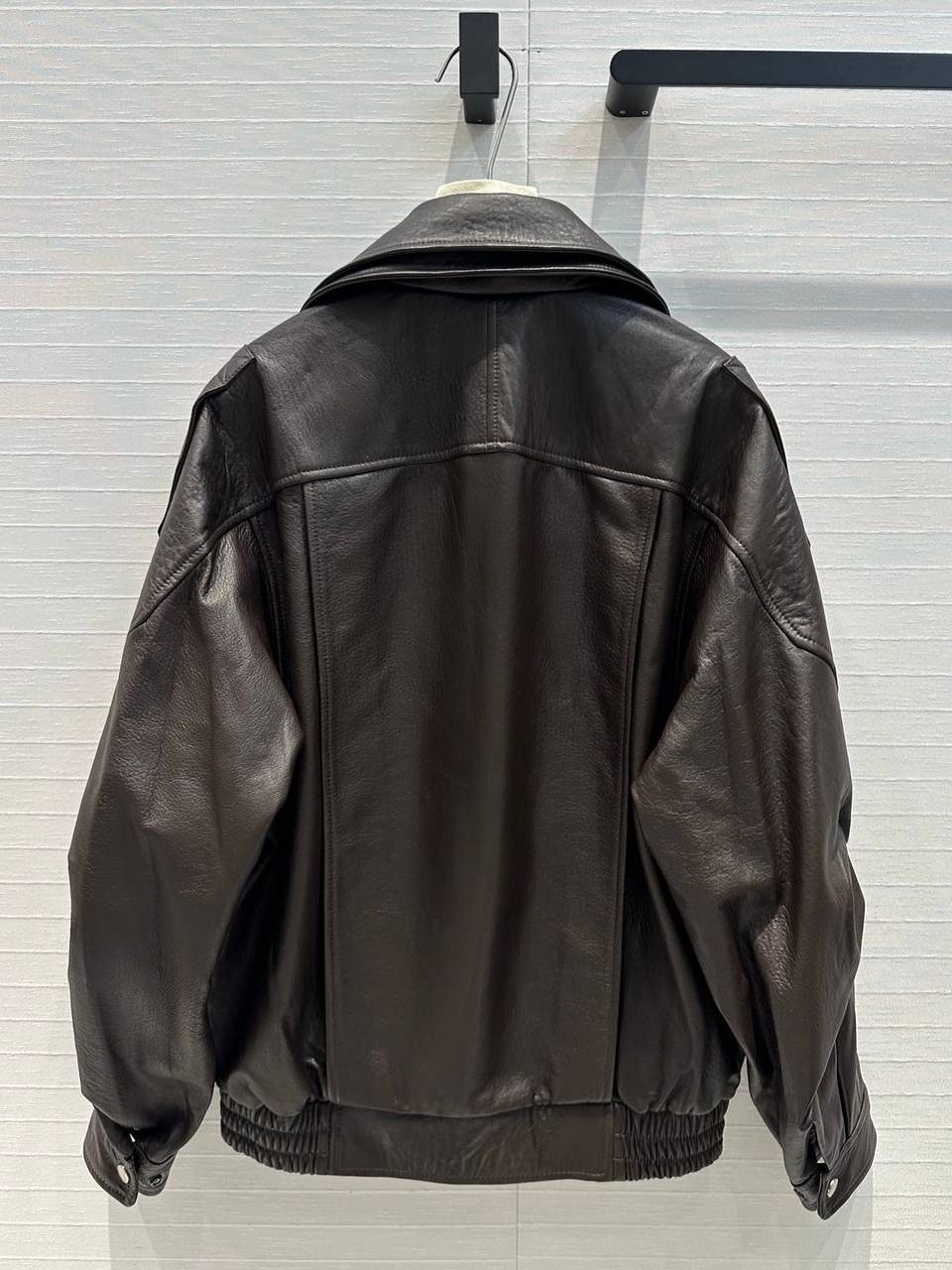 Куртка Saint Laurent сделана из натуральной кожи в черном и коричневом цвете. Данная модель с большим воротником и резинкой внизу, украшена куртка ремнем внизу.