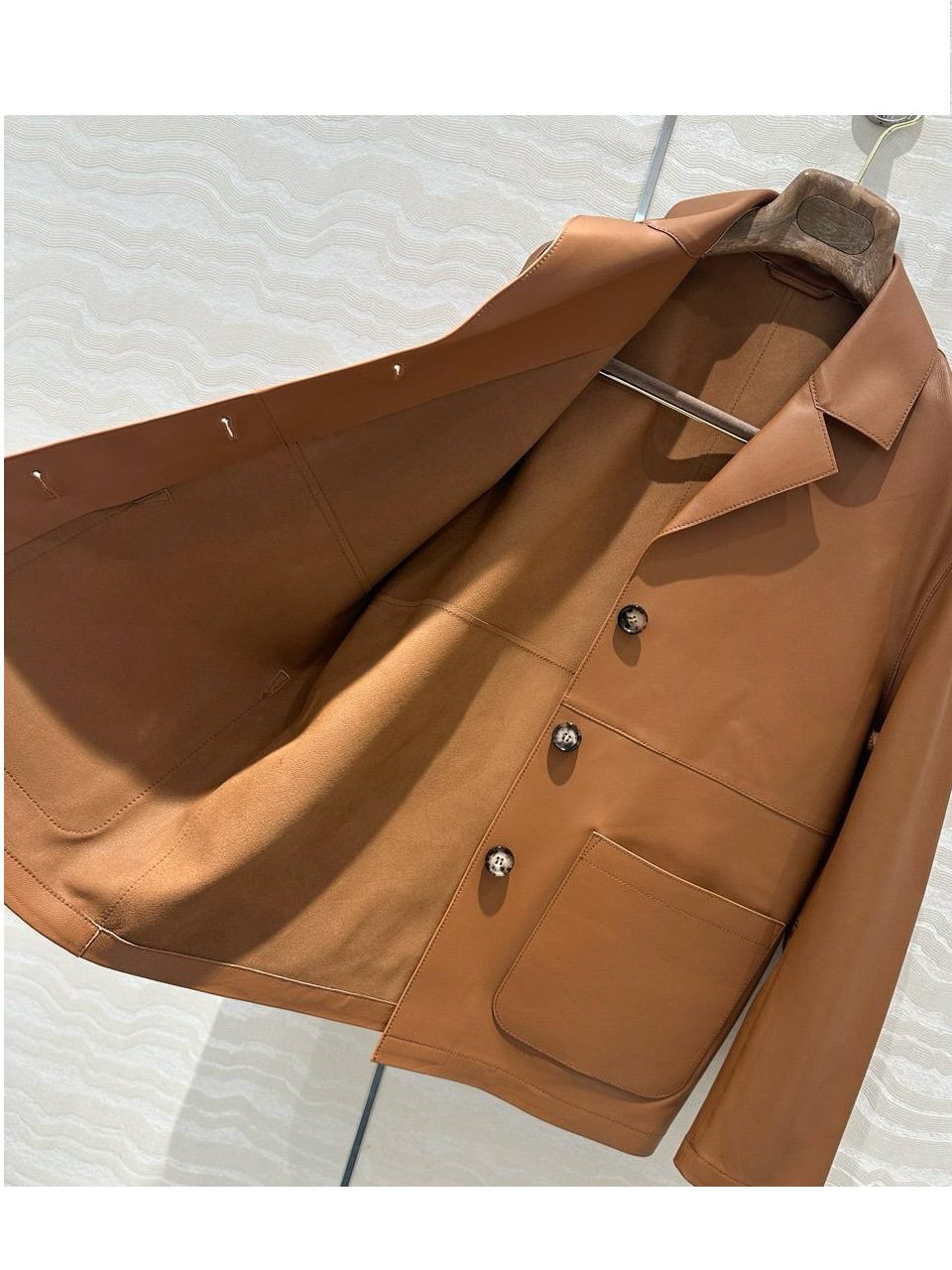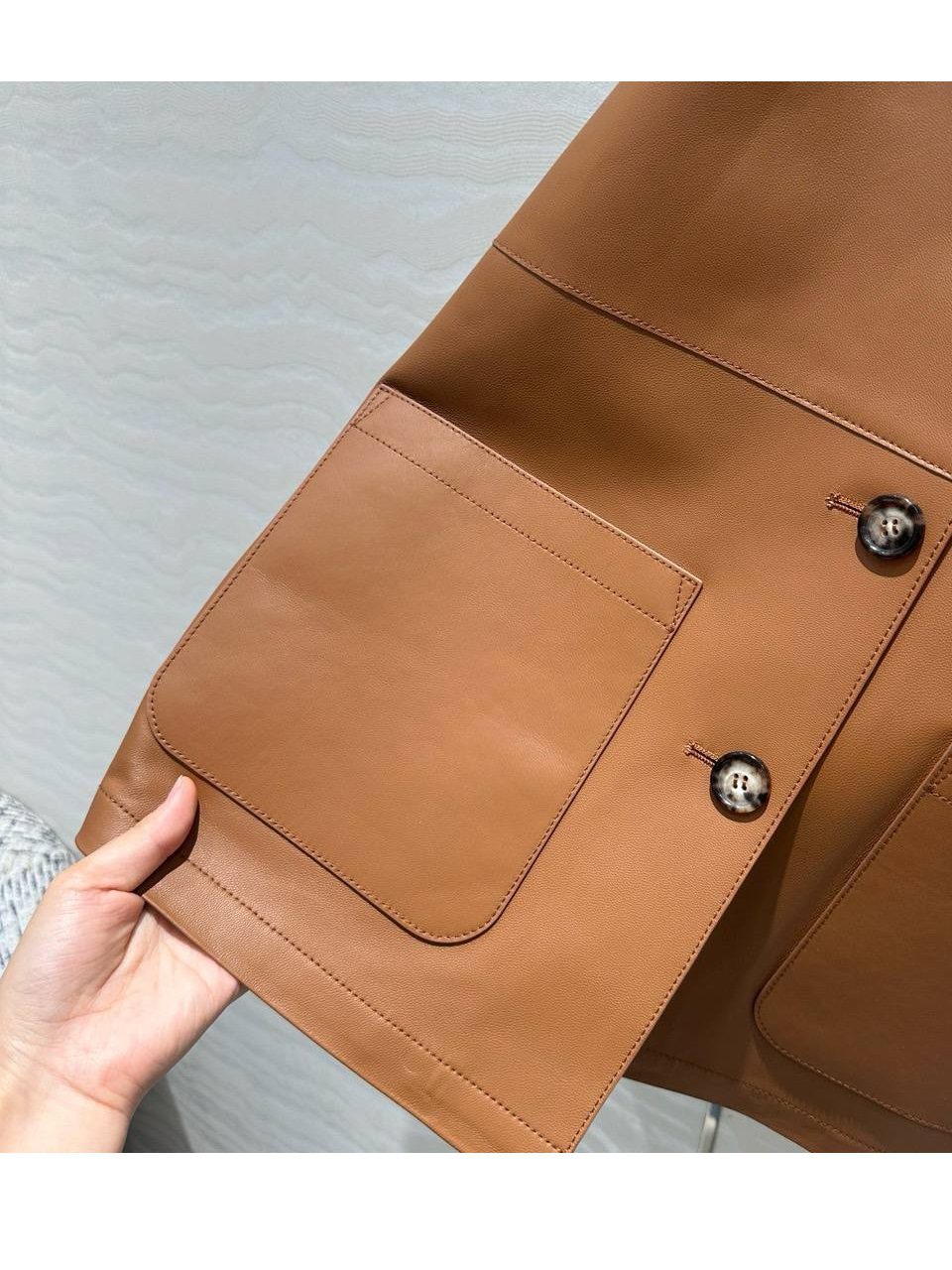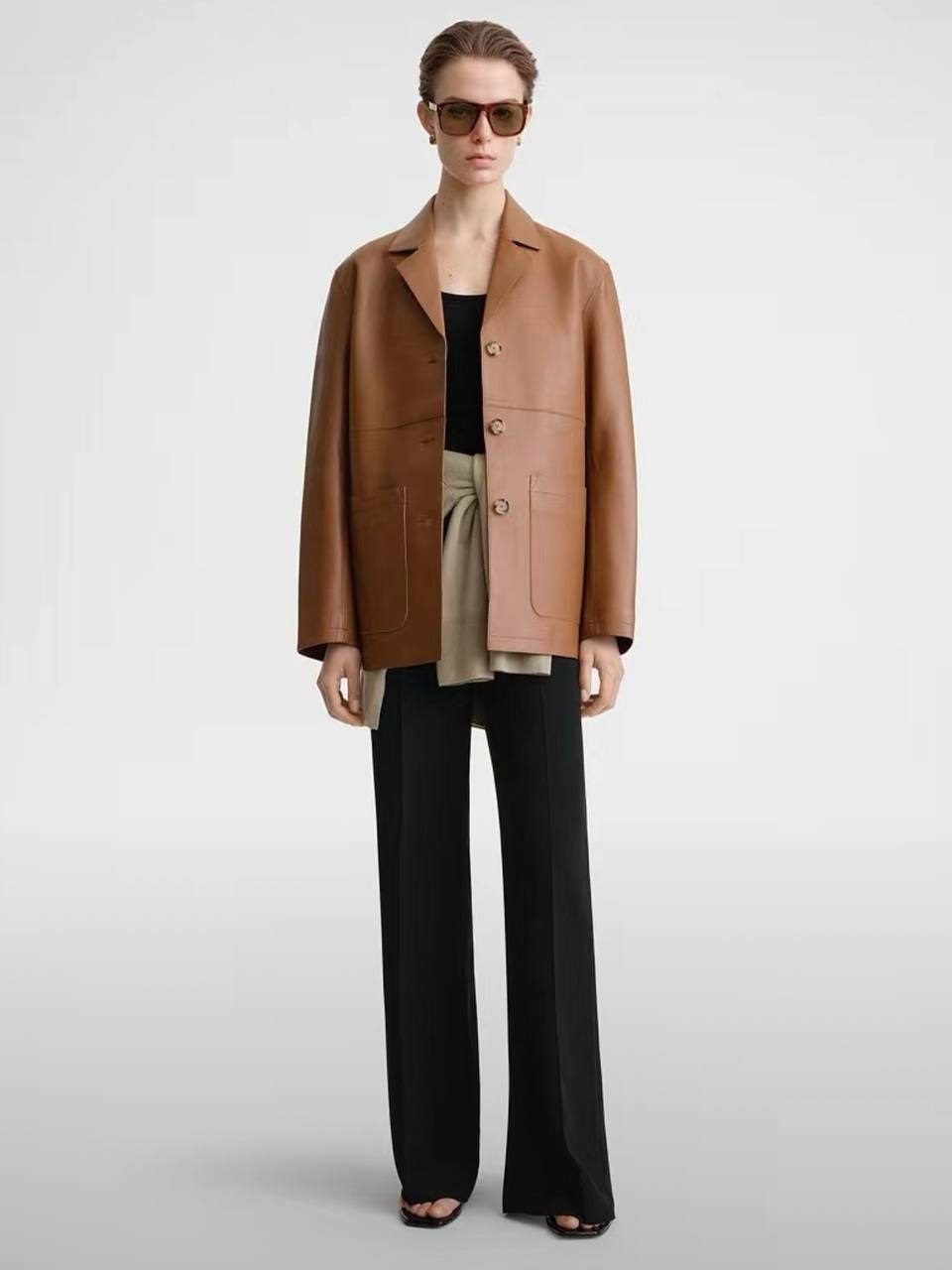 Куртка Toteme сделана из натуральной кожи. Данная модель в рыжем и черном цвете. Куртка застегивается на пуговицы и имеет большие карманы.Купив кожаную куртку Toteme вы дополните свой образ.