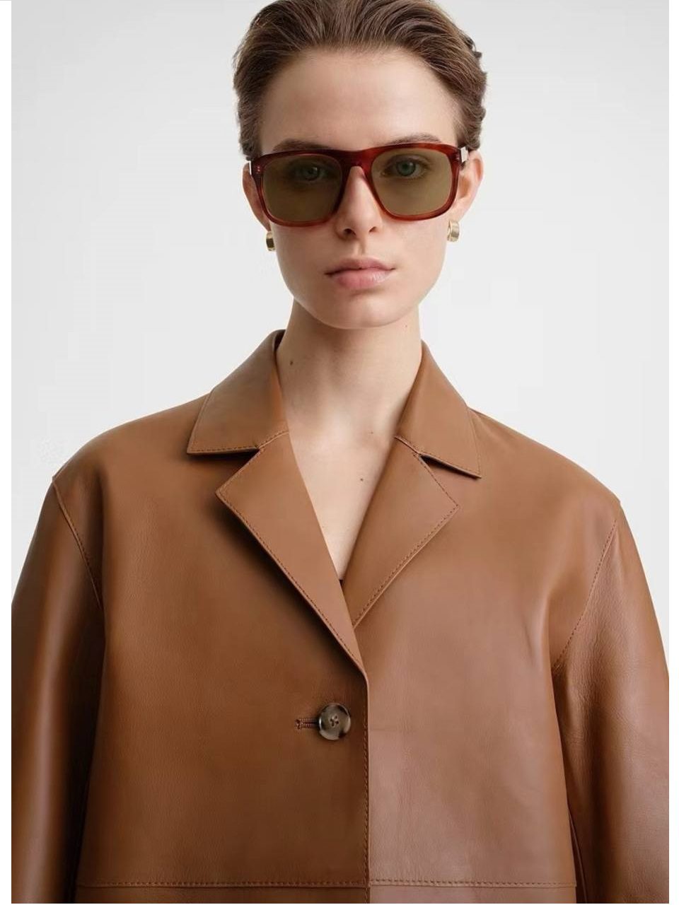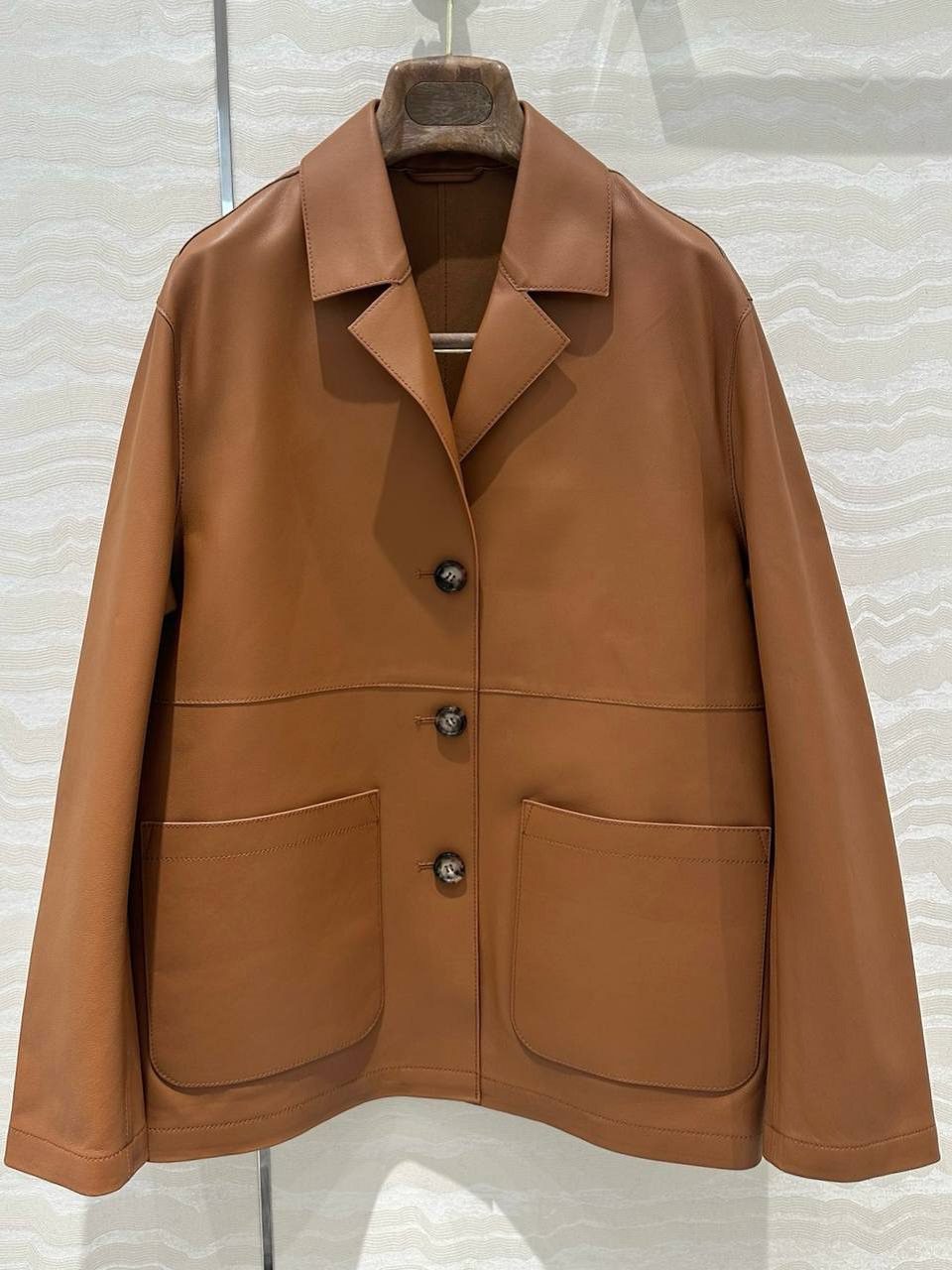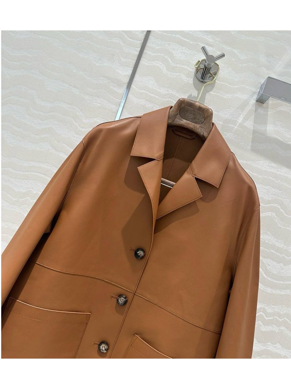 Куртка Toteme сделана из натуральной кожи. Данная модель в рыжем и черном цвете. Куртка застегивается на пуговицы и имеет большие карманы.Купив кожаную куртку Toteme вы дополните свой образ.