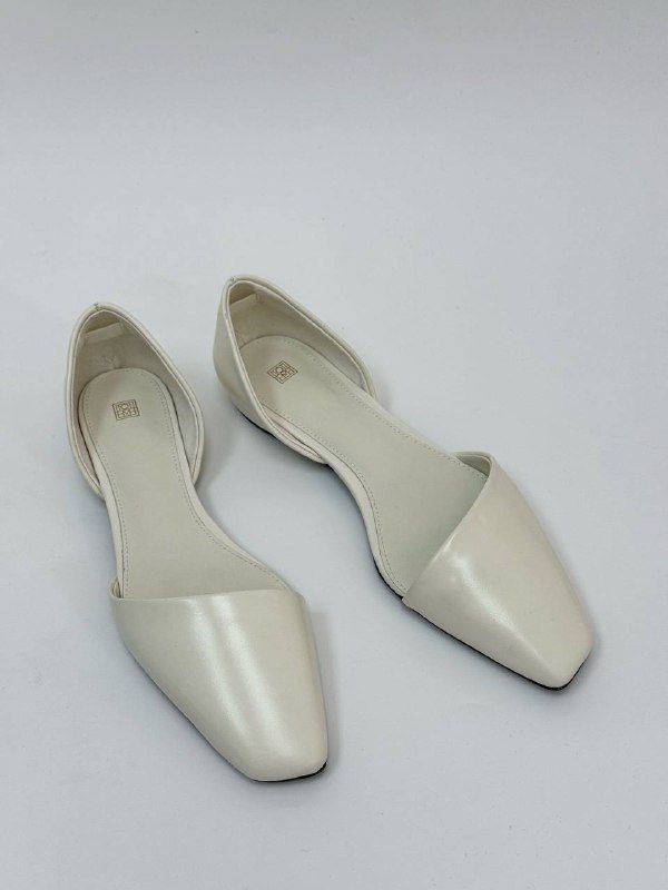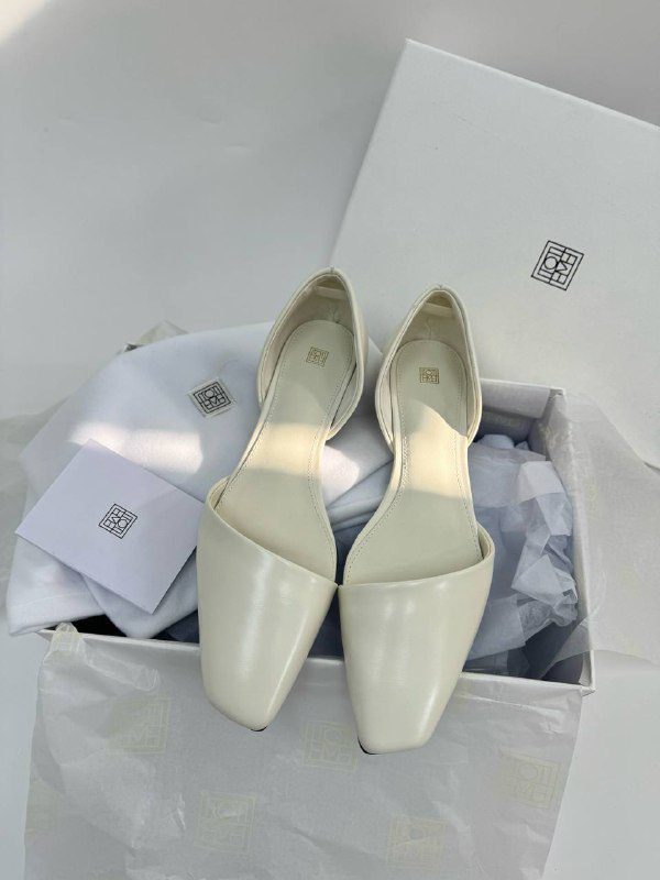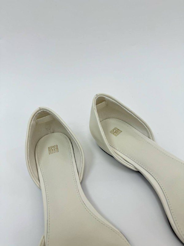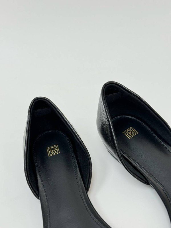 Кожаные балетки Toteme с открытыми боками. Данная модель есть в двух цветах: черный, молочный. Купив балетки вы дополните свой вечерний и повседневный образ.Эксперты рекомендуют к данному товару .