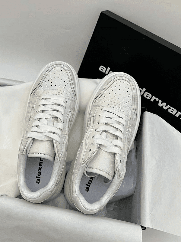 Кеды Alexander Wang сделаны из натуральной кожи. Данная модель в белом цвете на шнурках и низкой подошве. Украшены кеды логотипом бренда. Купив кеды Alexander Wang вы дополните свой образ.