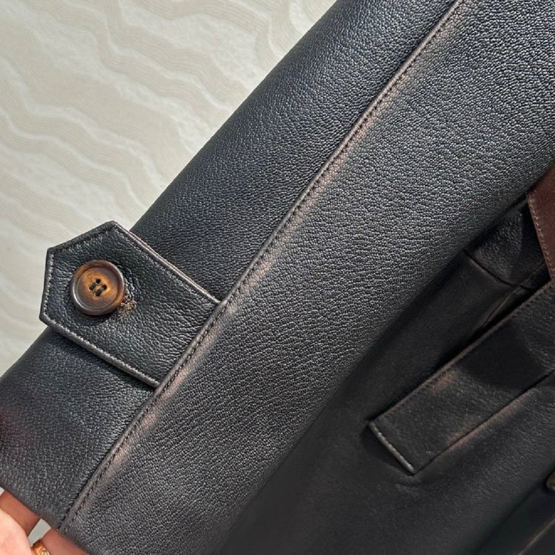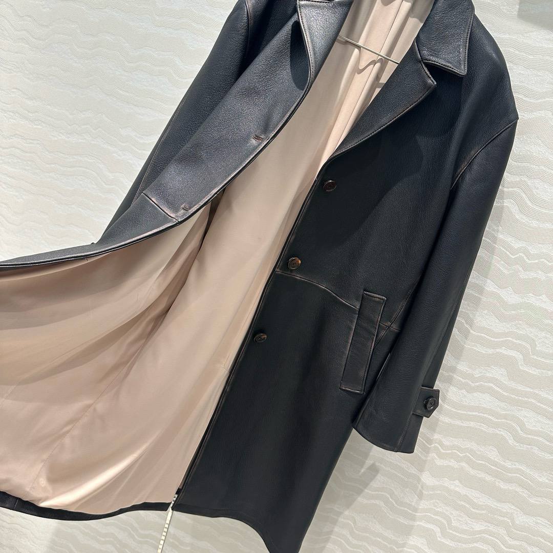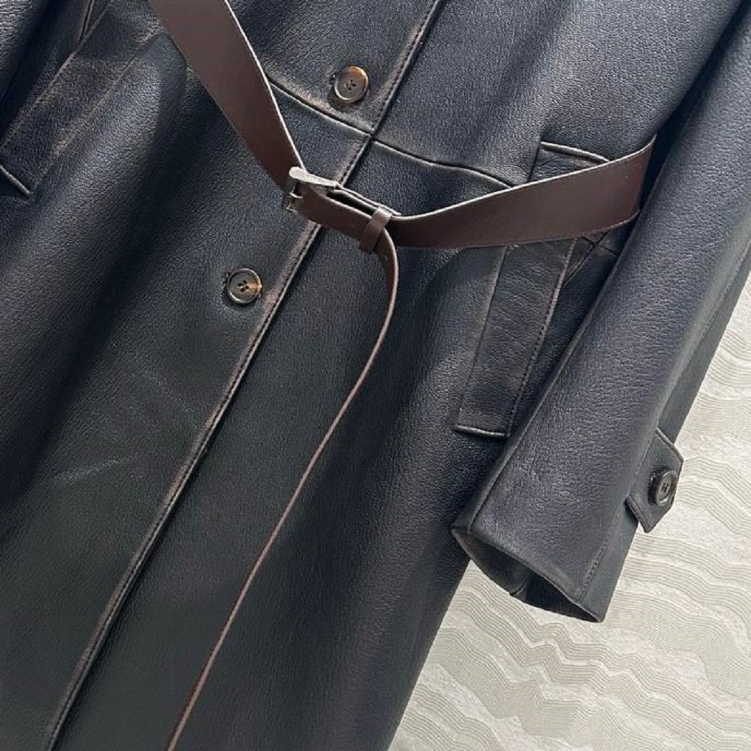 Тренч Prada с потертостями выполнен из натуральной кожи. Даная модель имеет классический воротник, длинные рукава, два прорезных кармана по бокам и съемный пояс. Купив тренч Prada вы дополните свой образ этого сезона.