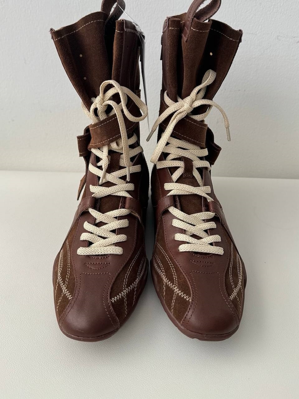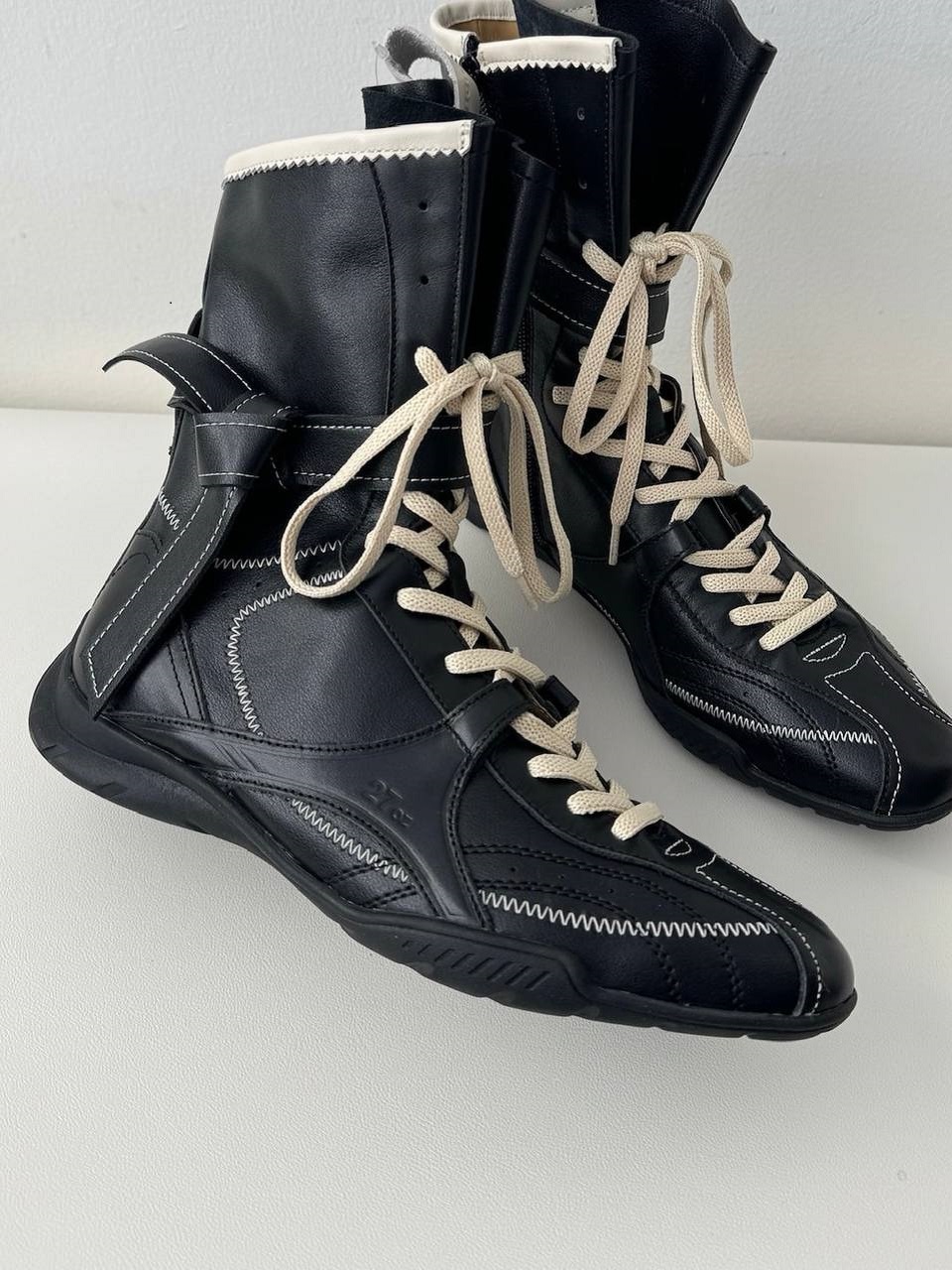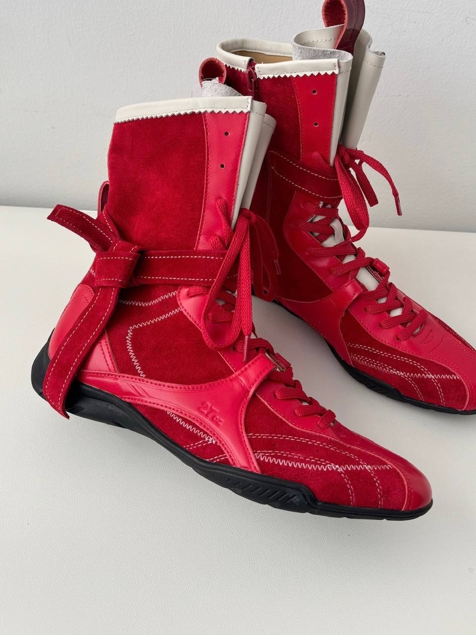 Кроссовки на шнуровке 27QUAI в крутом силуэте с высоким верхом для нового сезона — если вы поклонник низких стилей, посмотрите нашу подборку, чтобы найти подходящую вам цветовую гамму. Сделанные из натуральной кожи, они украшены вставками из замши.