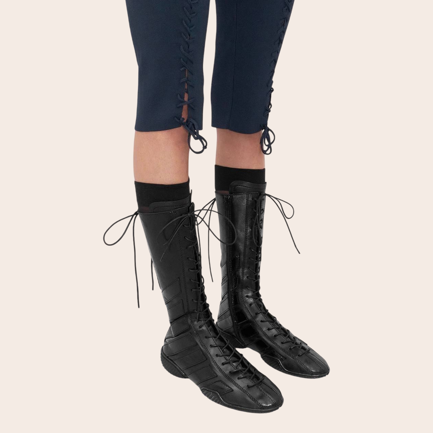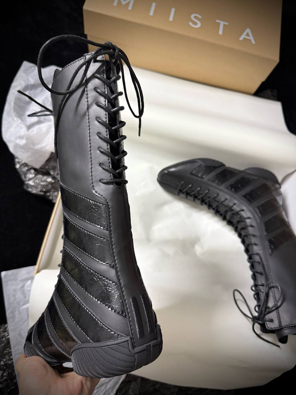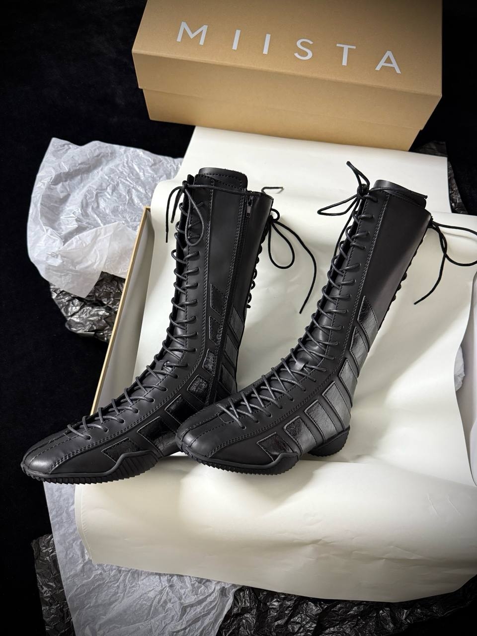 Контрастные элементы дизайна объединяются в этих уникальных кроссовках от Miista, выполненных из кожи, с заостренным носком и шнуровкой до самого верха. Сочетает женственные элементы со спортивным силуэтом, создавая идеальную дерзкую пару.