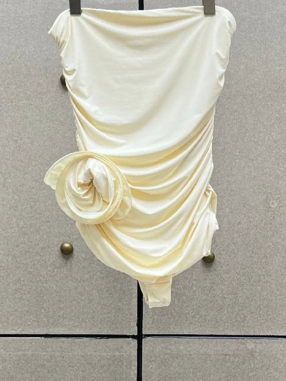 Этот роскошный купальник от Magda Butrym — истинное воплощение искусства моды, превращающее каждый выход на пляж или у бассейна в подиум. Изготовленный из нежного, шелковистого джерси, он обнимает тело, словно созданный для вашего удобства и элегантности.Драпировка чуть ниже талии плавно переходит в фиксированный цветок с бутоном розы, добавляя элемент иронии и драматизма в образ.