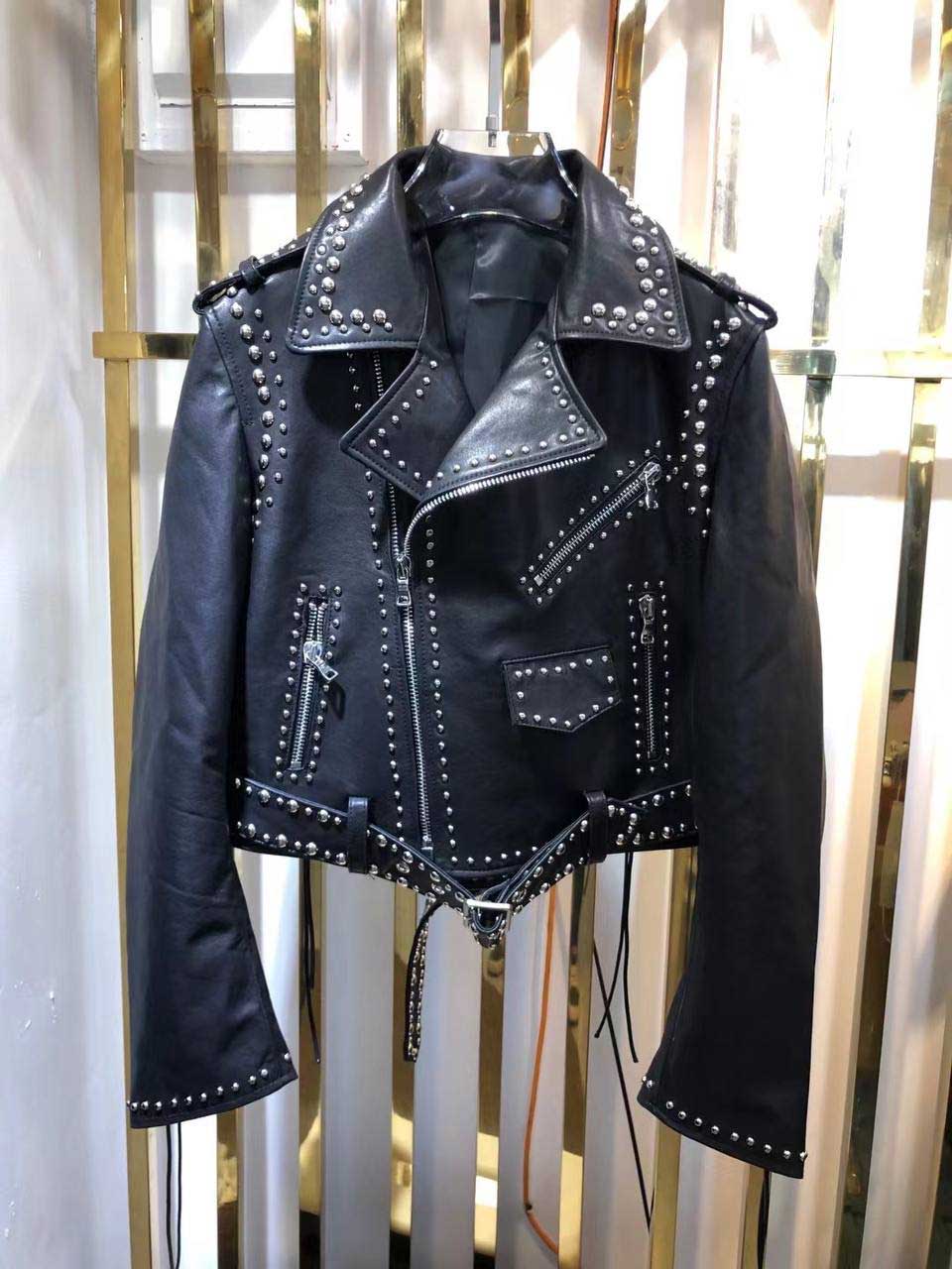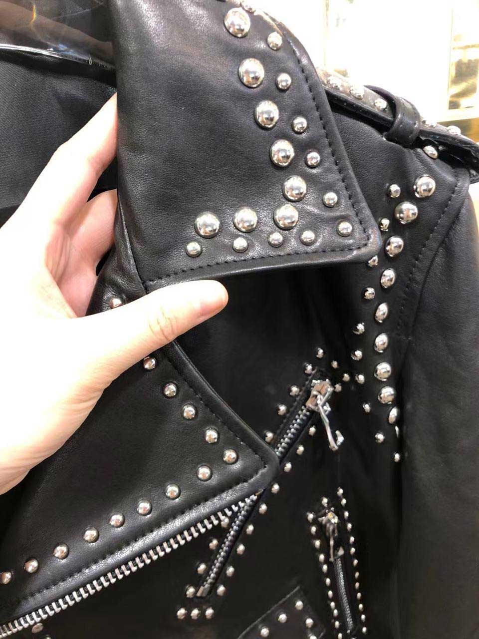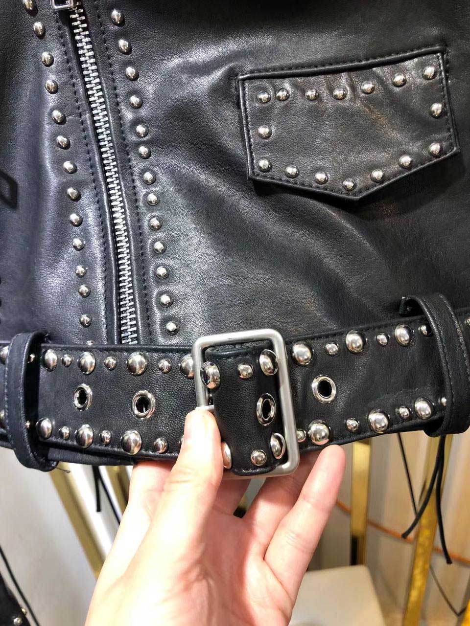 Куртка Maison Bohemique в байкерском стиле с заклепками и шнуровкой на спинке и рукавах. Плечевые срезы украшены погонами. Нижний край фиксирован широким ремнем, который фиксирован шлевками и стальной пряжкой с клепками, стойка воротник. Куртка Bohemique будет сочетаться с казаками Isabel Marant.