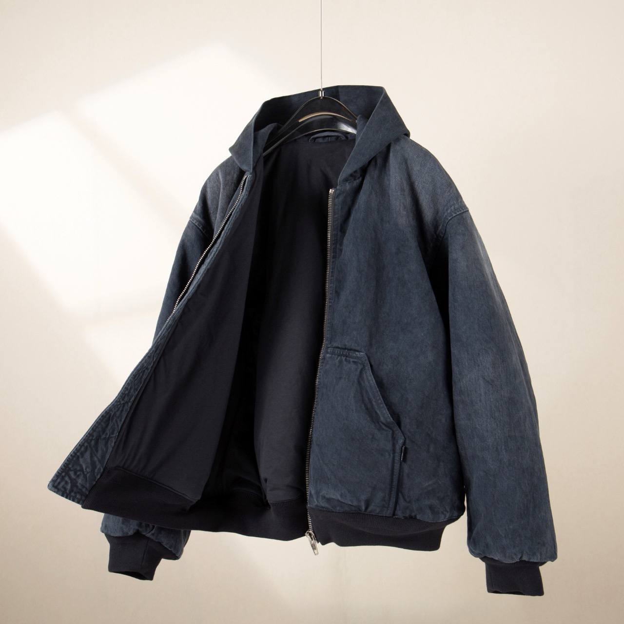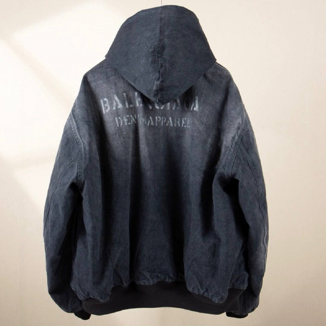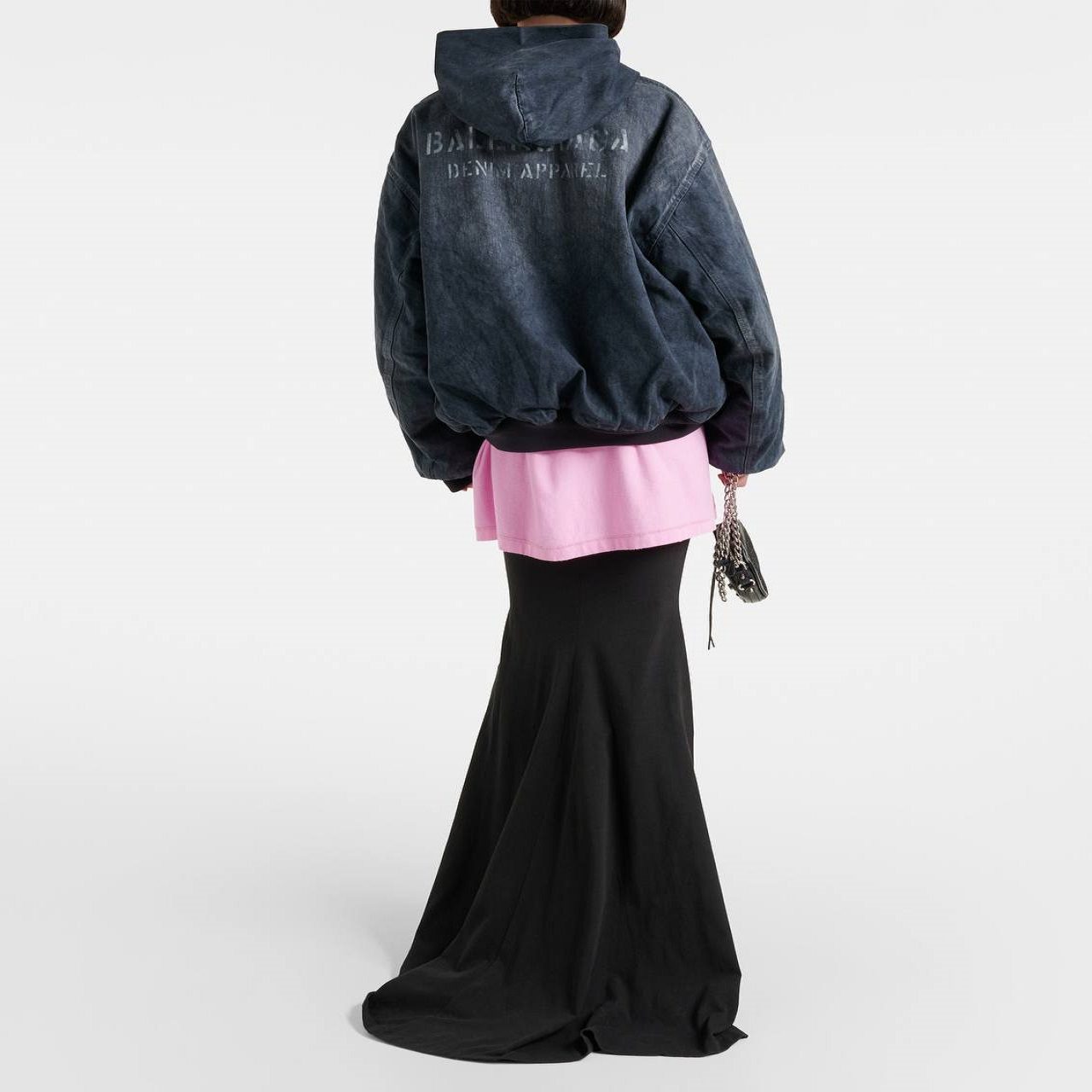 Куртка джинсовая Balenciaga сделана из натурального хлопка. Данная модель с капюшоном и карманами в черном цвете, на рукавах и талии широкая резинка. Купив куртку вы дополните свой образ.