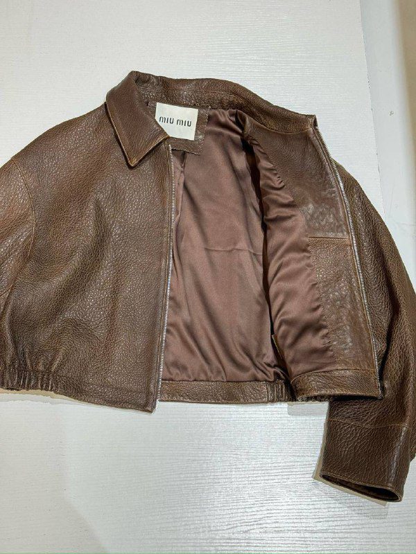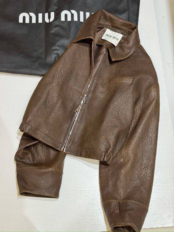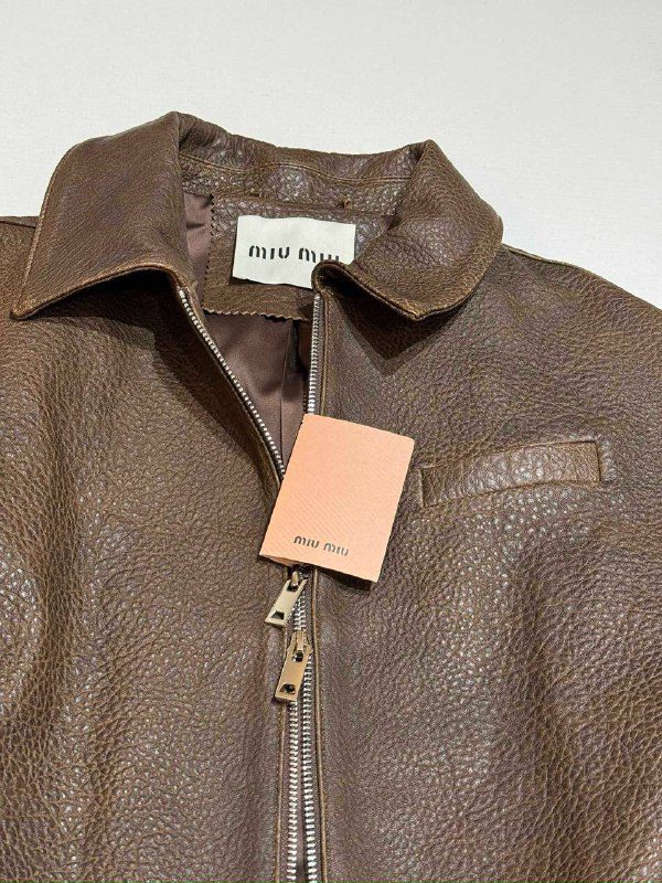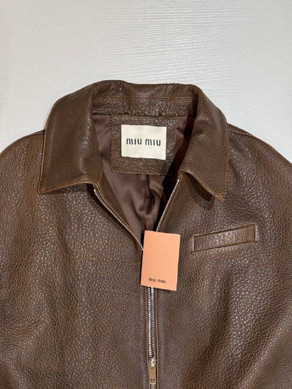 Kуртка Miu Miu сделана из натуральной кожи. Данная модель с воротником и длинными рукавами, застегивается на молнию и украшена карманом на груди. Купив такую куртку вы дополните свой образ.