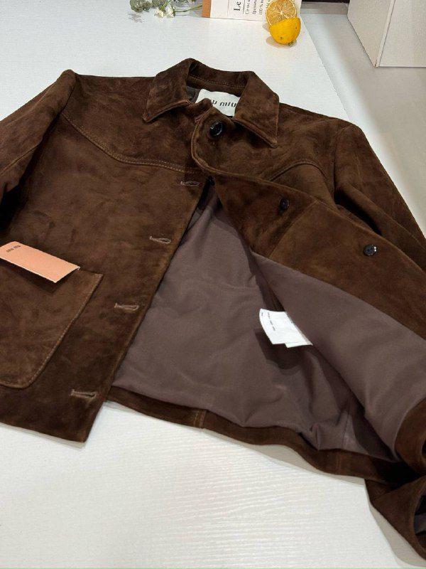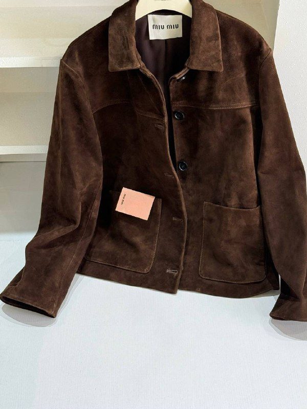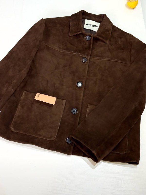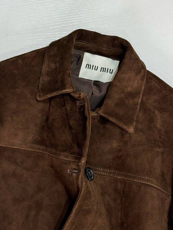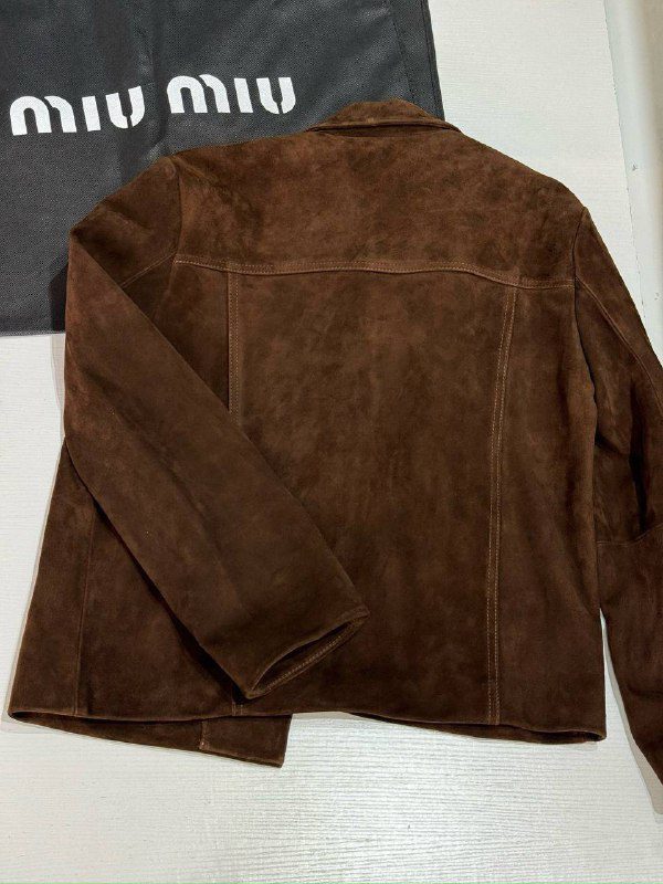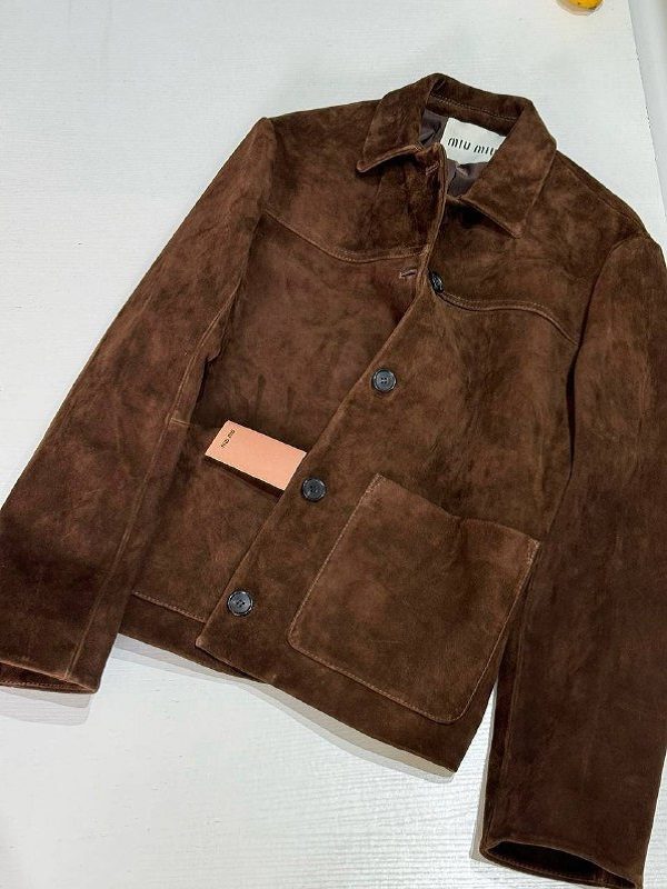 Замшевая куртка Miu Miu сделана из натуральной кожи в коричневом цвете. Данная модель украшена карманами и логотипом бренда. Купив куртку вы дополните свой образ.