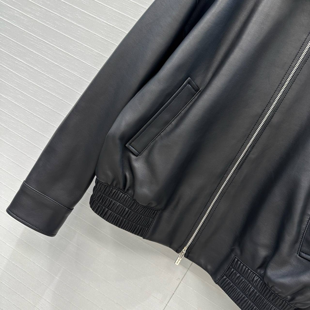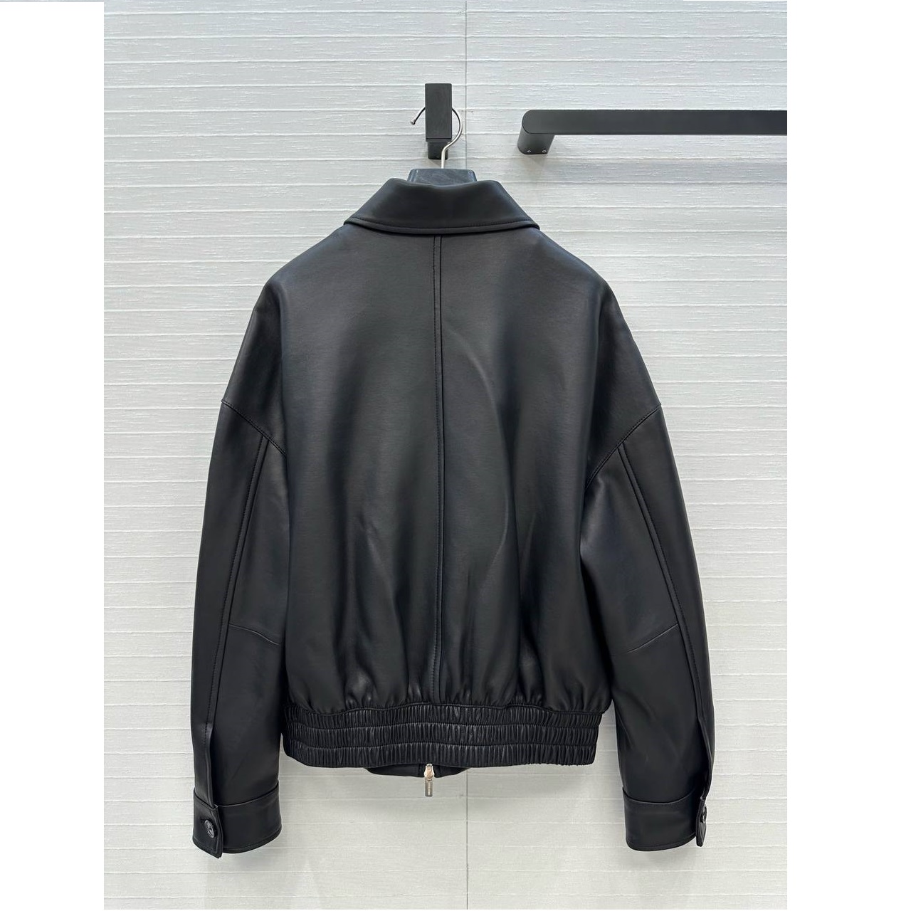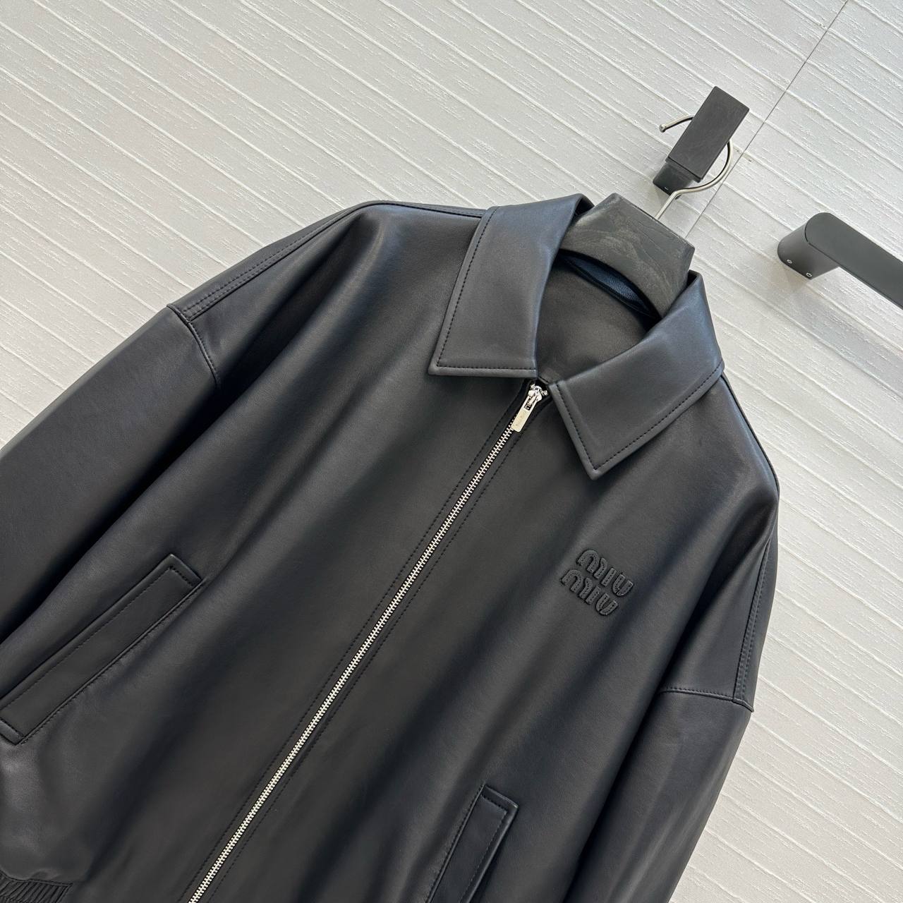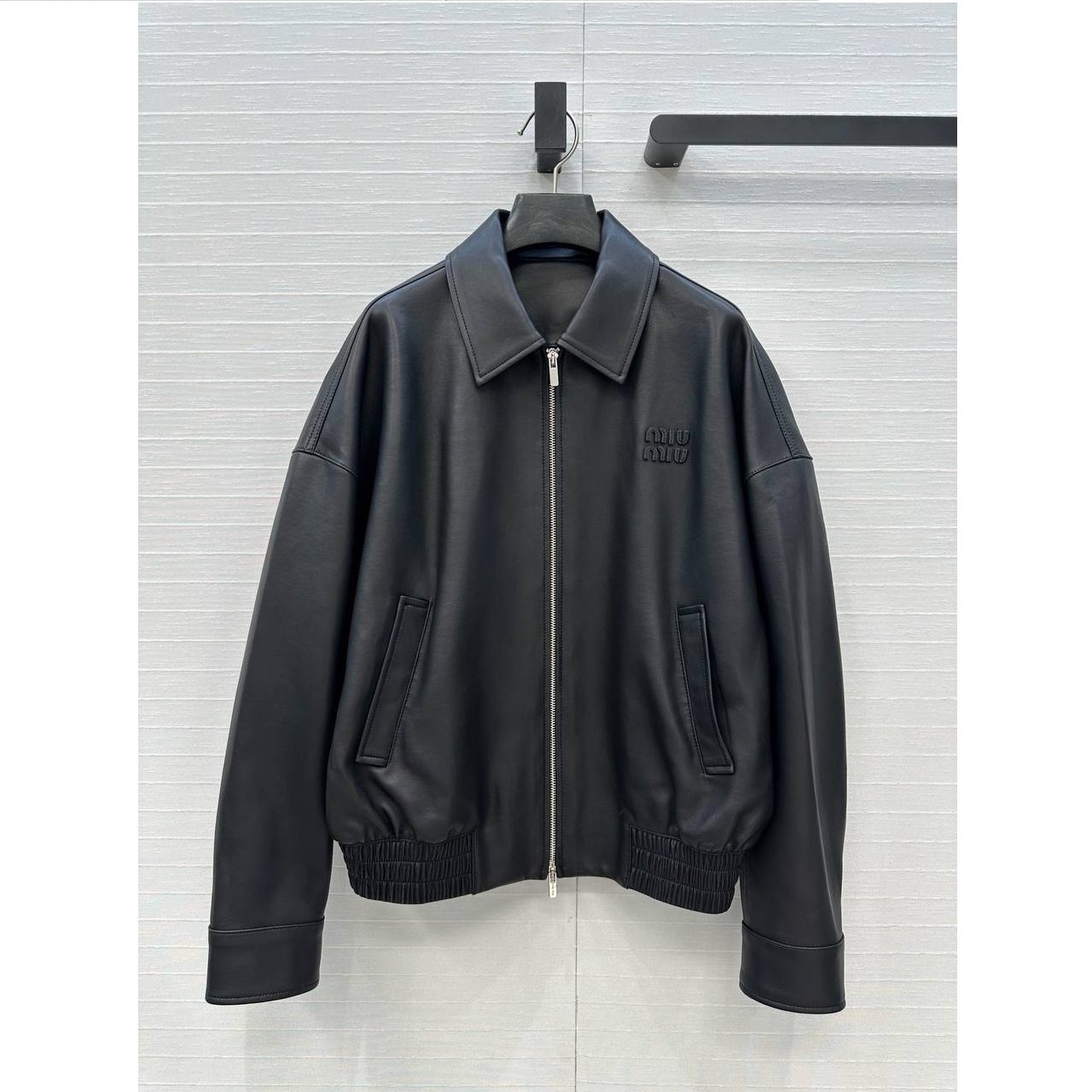 Мягкая кожа наппа в сочетании с культовым трикотажем Miu Miu создают изысканное изделие, которое выражает беззаботное бунтарское очарование, символизируемое необработанными краями и непринуждённым кроем.