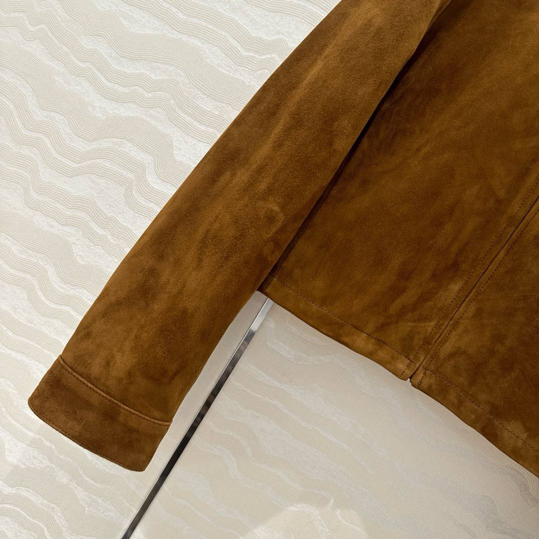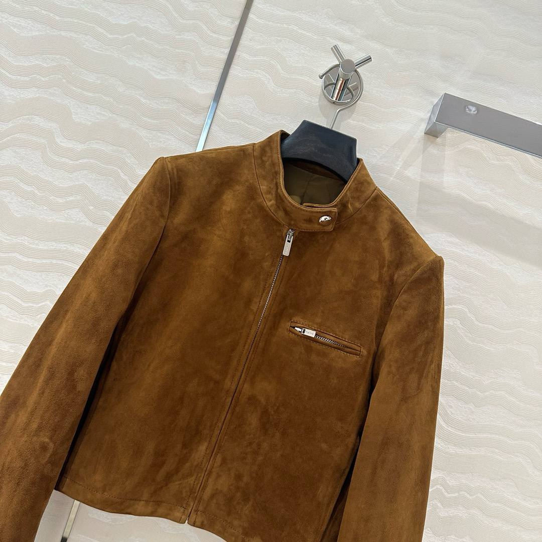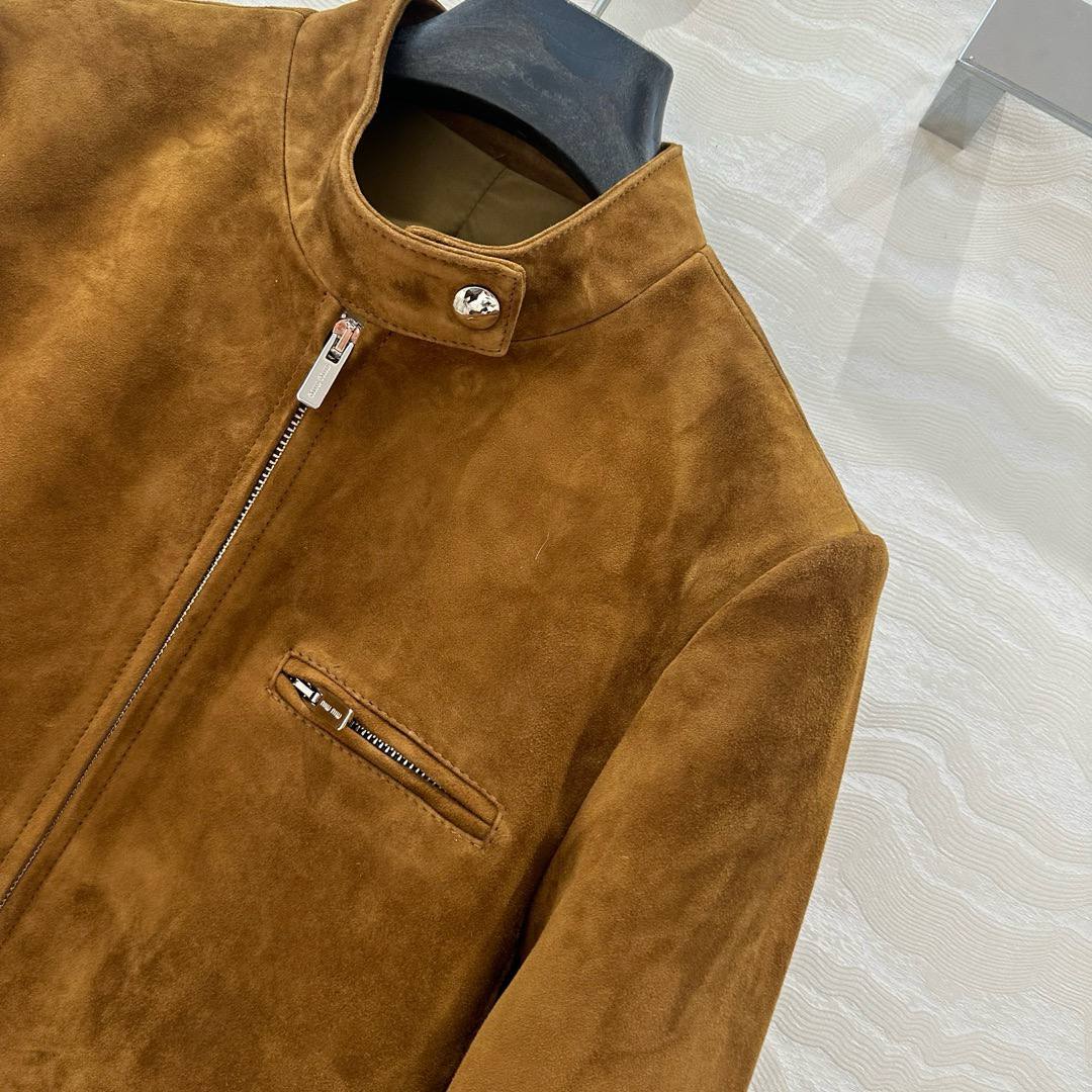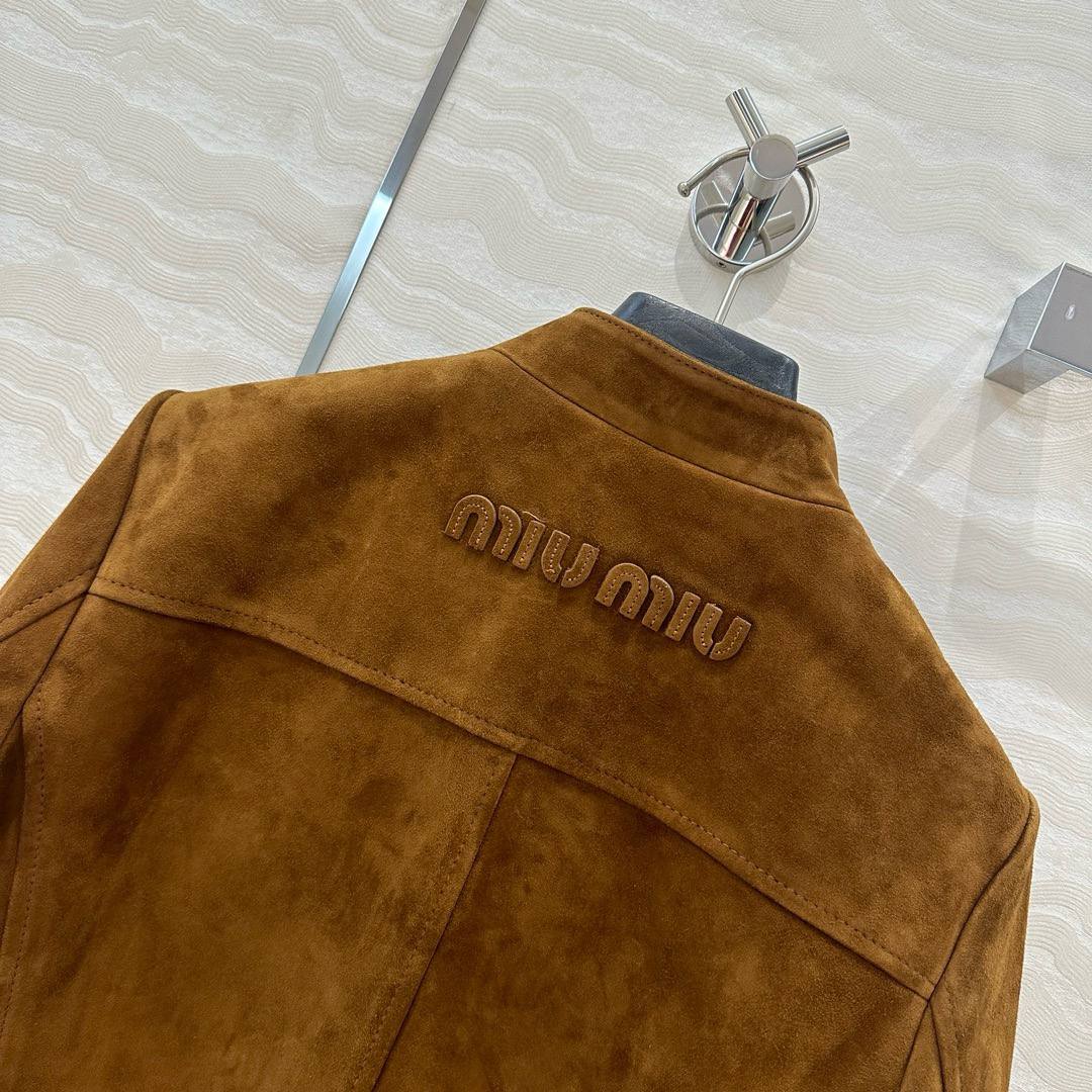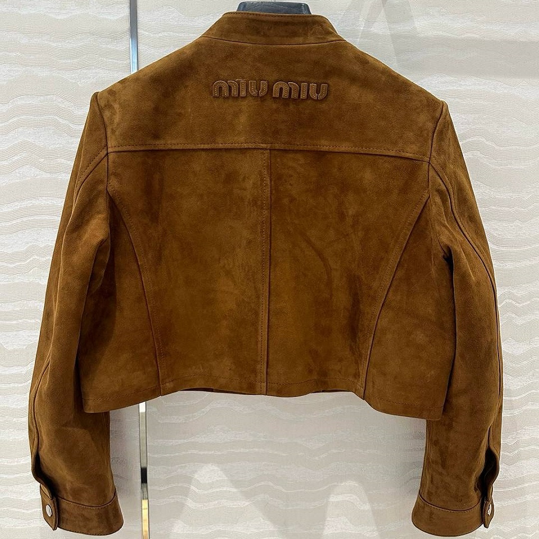 Куртка Miu Miu Suede выполнена в минималистичном стиле с двумя большими карманами и одним на груди. Благодаря обтекаемому крою безупречная замша идеально подчеркивается.