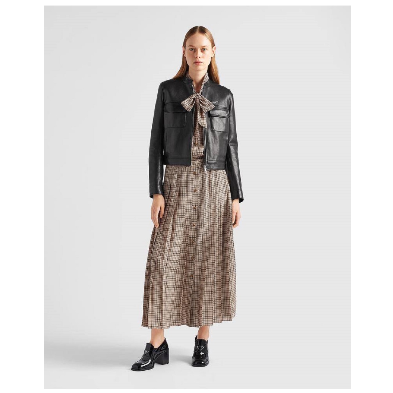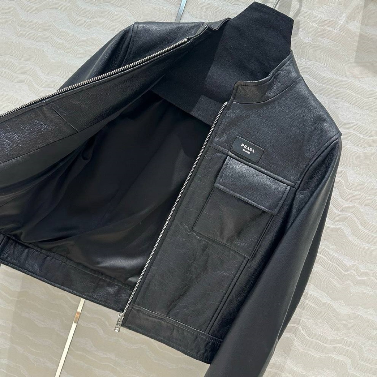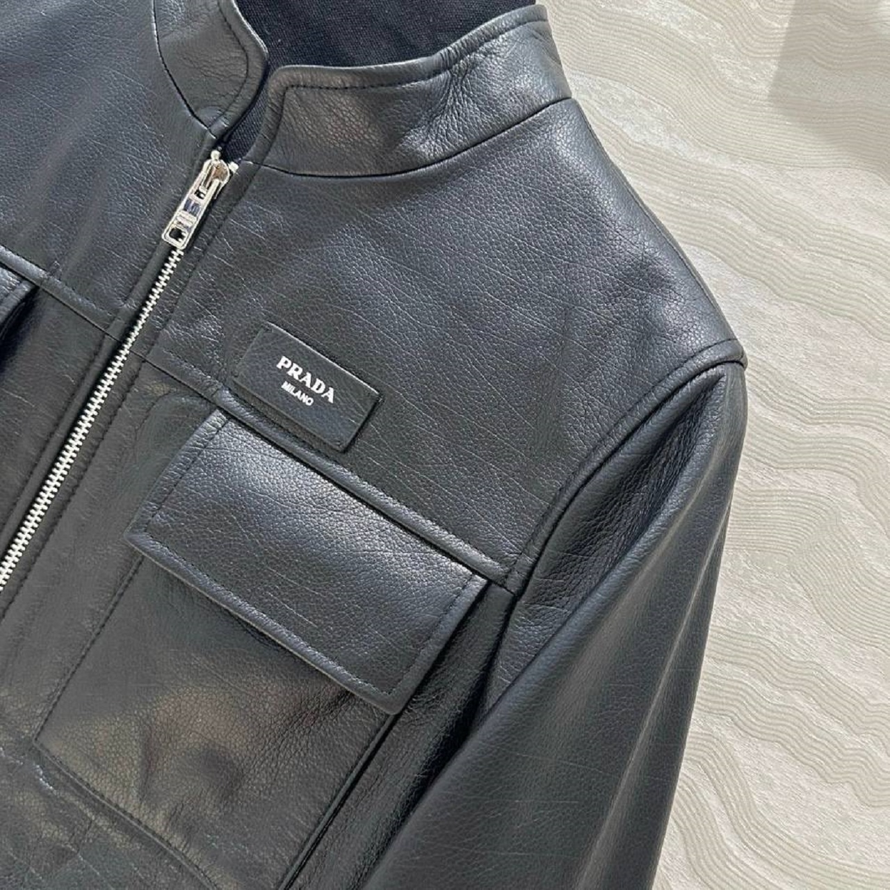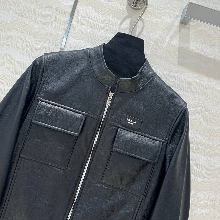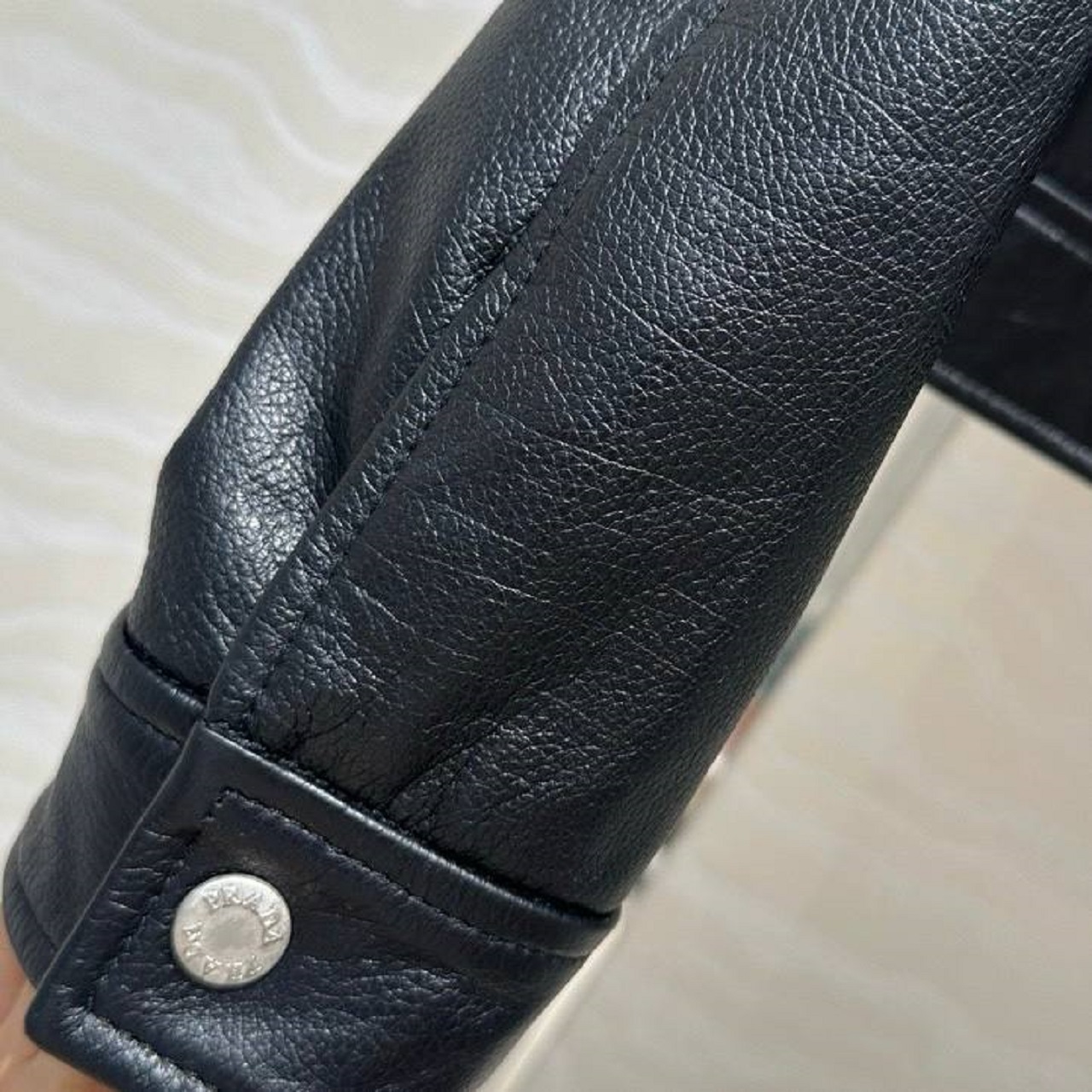 Изделия из кожи Prada известны, и эта куртка иллюстрирует, почему. Она сшита из мягкой кожи с воротником-стойкой, просторными накладными карманами,украшена серебристой фурнитурой и имеет пояс. Носите ее как часть полностью черного наряда.