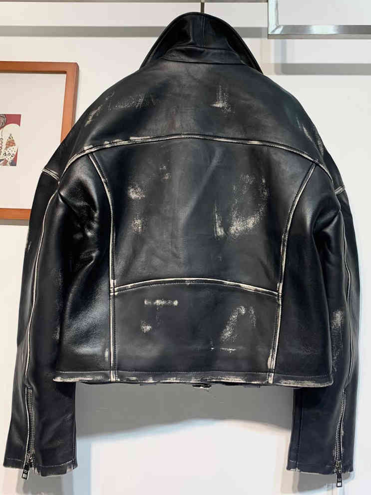 Куртка с потертостями из 100% натуральной кожи. Кожаная куртка с прямым кроем и приспущенной линией плеч. Мягкая кожа, куртка застёгивается на молнию, имеет один накладной карман спереди, два боковых на молнии и имитацию кармана на молнии в области груди. Отложной ворот с лацканами, ассимитричная молния, характерные потертости на куртке, создающие эффект состаривания, дополнительный ремень в области пояса. Вы можете купить куртку с потертостями и создать с ней уникальный повседневный или вечерный образ в новом сезоне 2023.