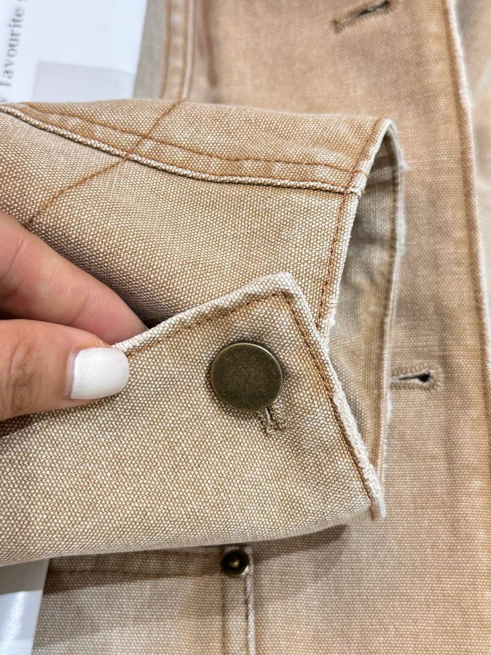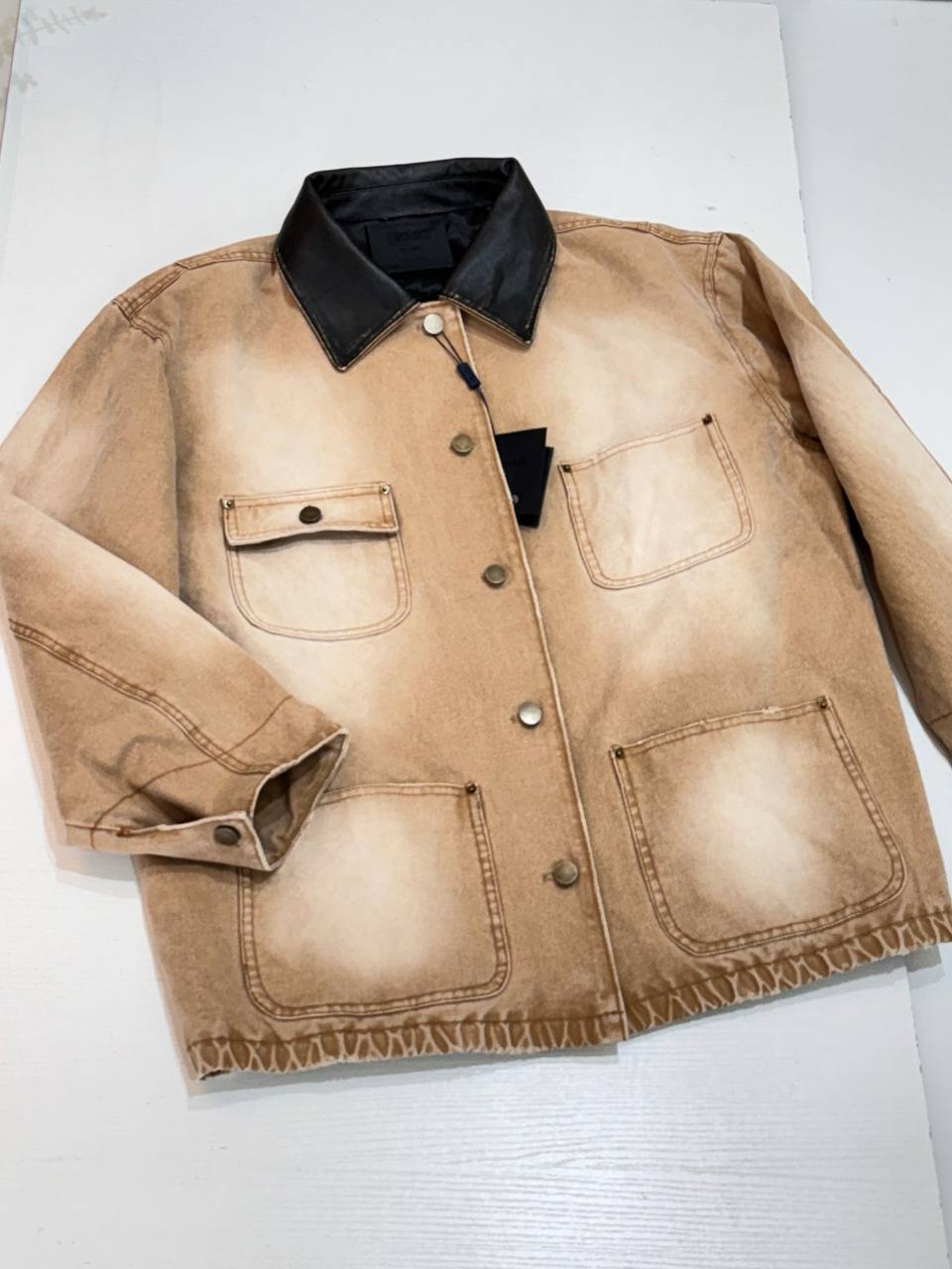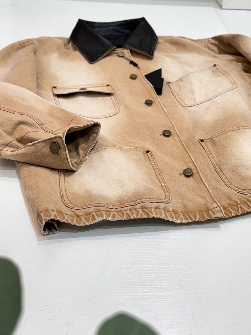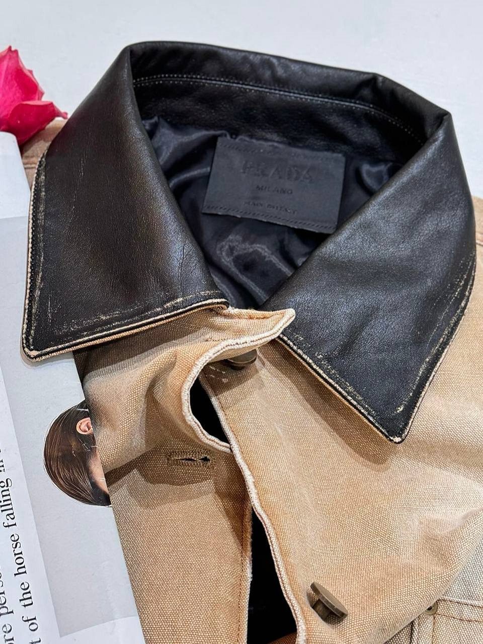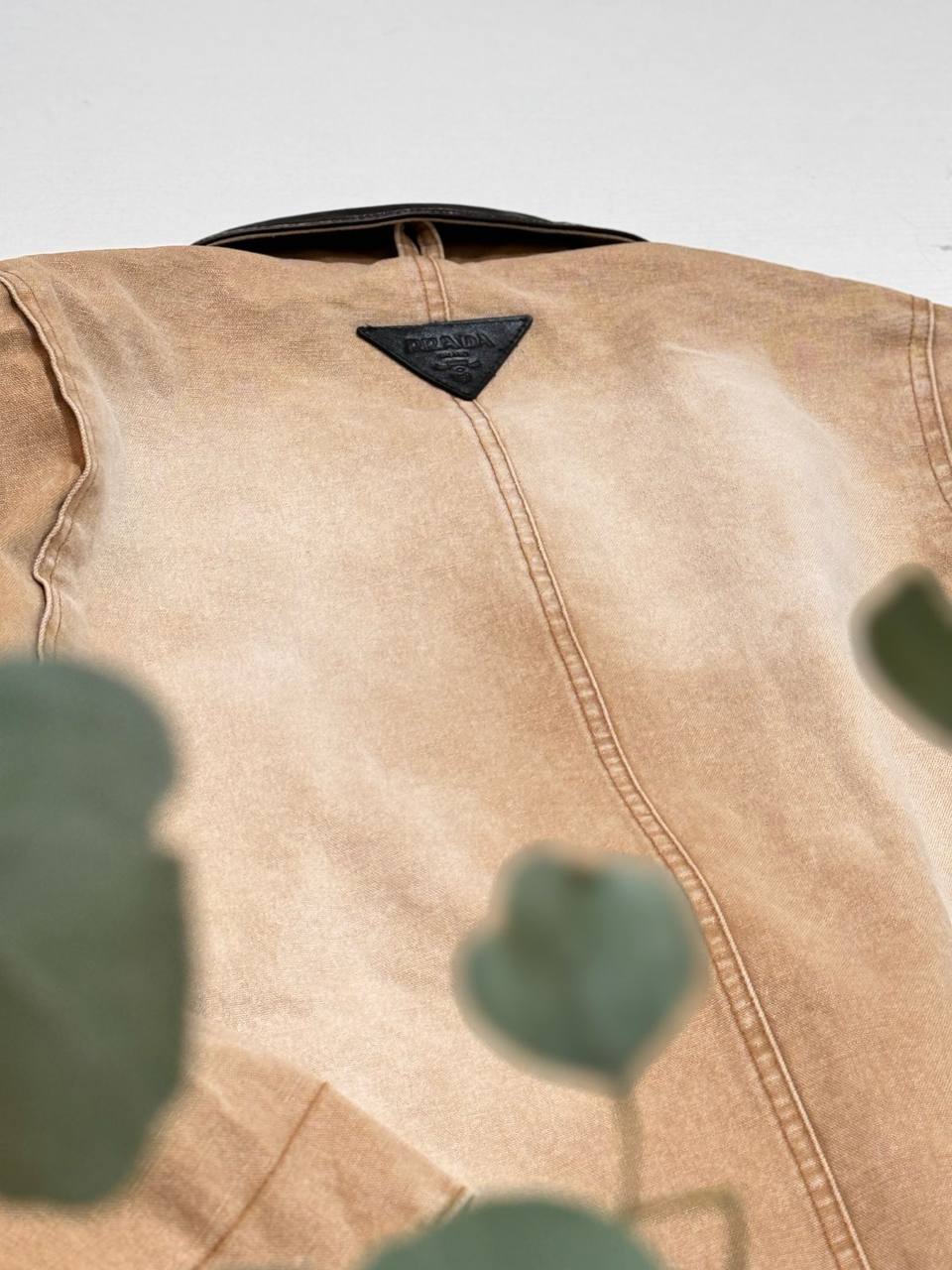 Куртка рабочего Prada из коллекции SS2024 . Выполнена из 100% хлопка, вставки из натуральной кожи.